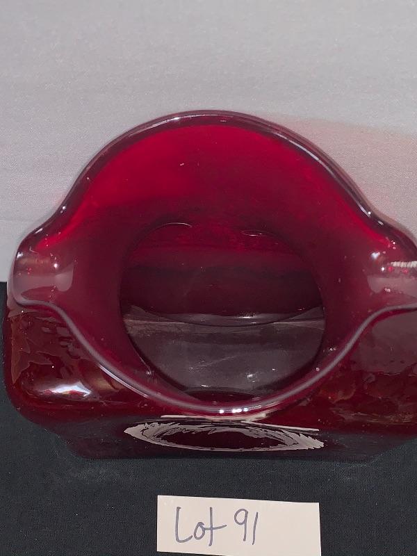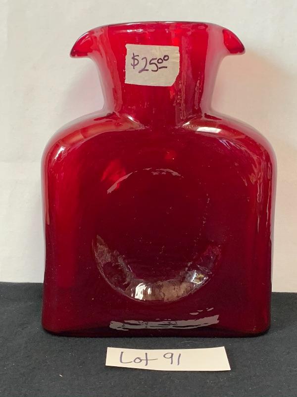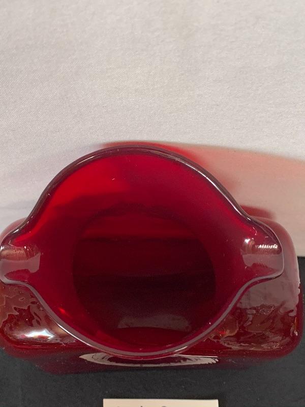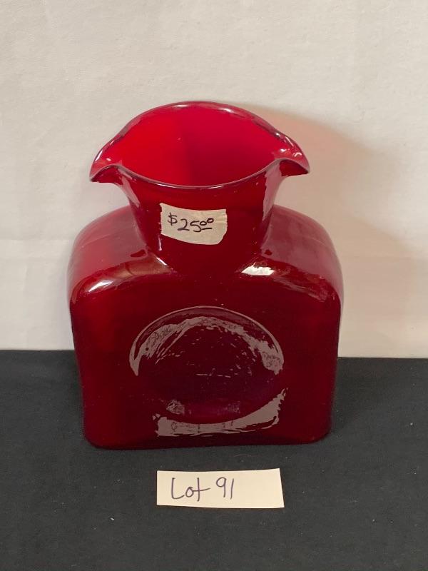 lot 91 RARE Blenko RUBY RED  Double Spouted Glass Pitcher heavy can use as vase