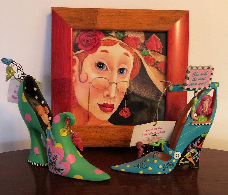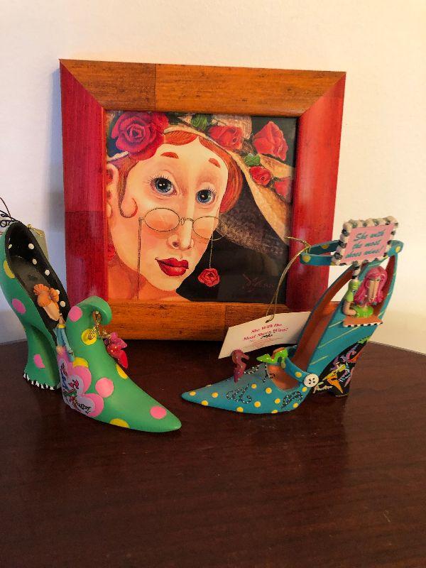 Lot #91 Shoe Decorations and Lady w/ Rose Framed