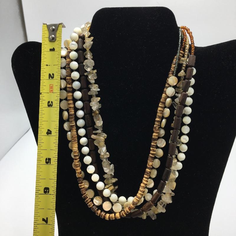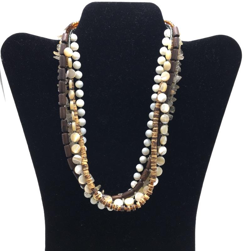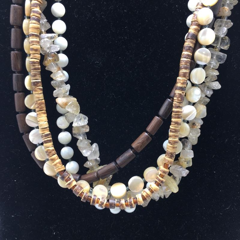 Silpada necklaces includes Act Natural necklace in Howlite, smokey quartz and sterling silver that measures 18”-20” and a necklace in wood, rutilated quartzsil, mother of pearl and tiger coconut interspersed with silver beads on a necklace with a lobster clasp that measures 17” with a 2” extender