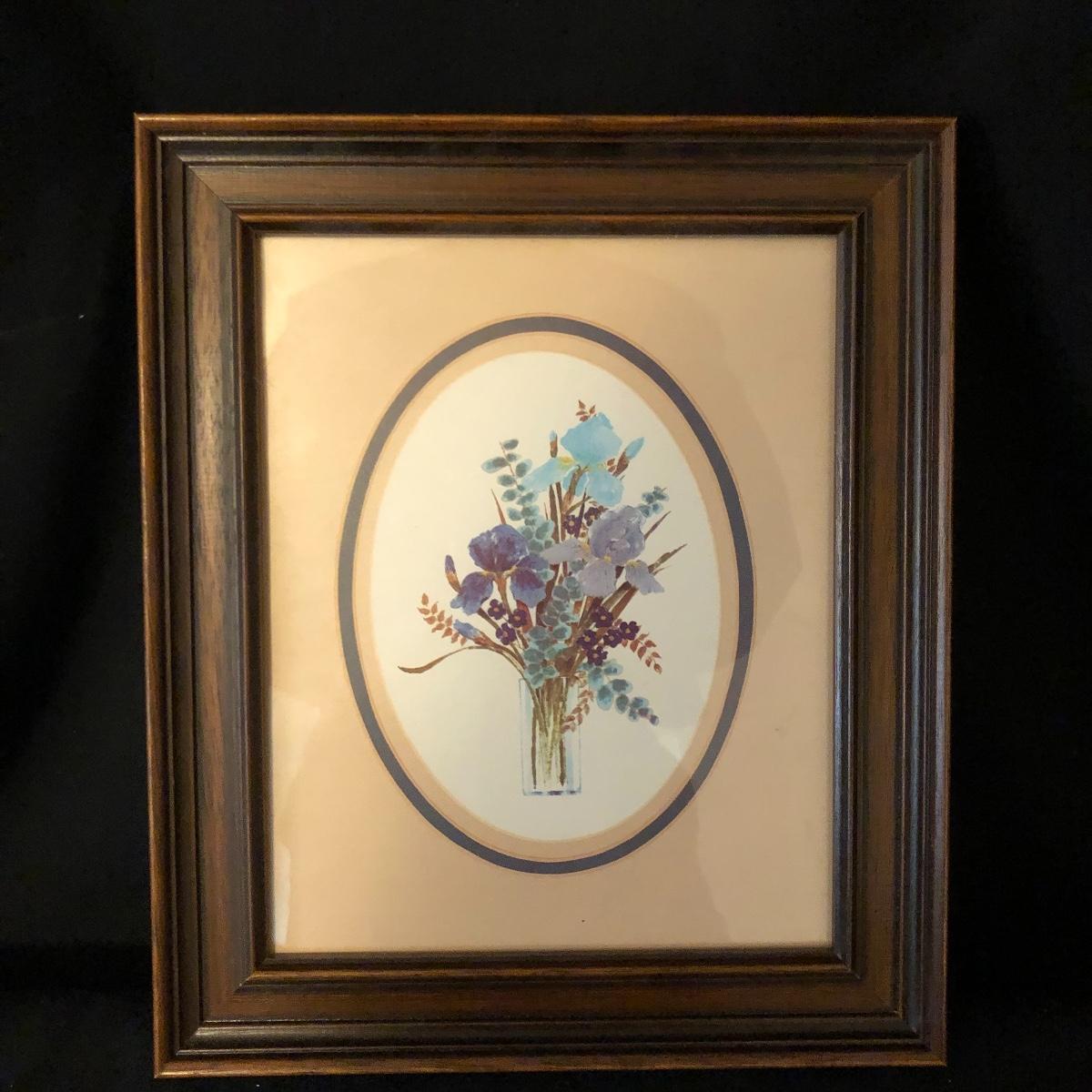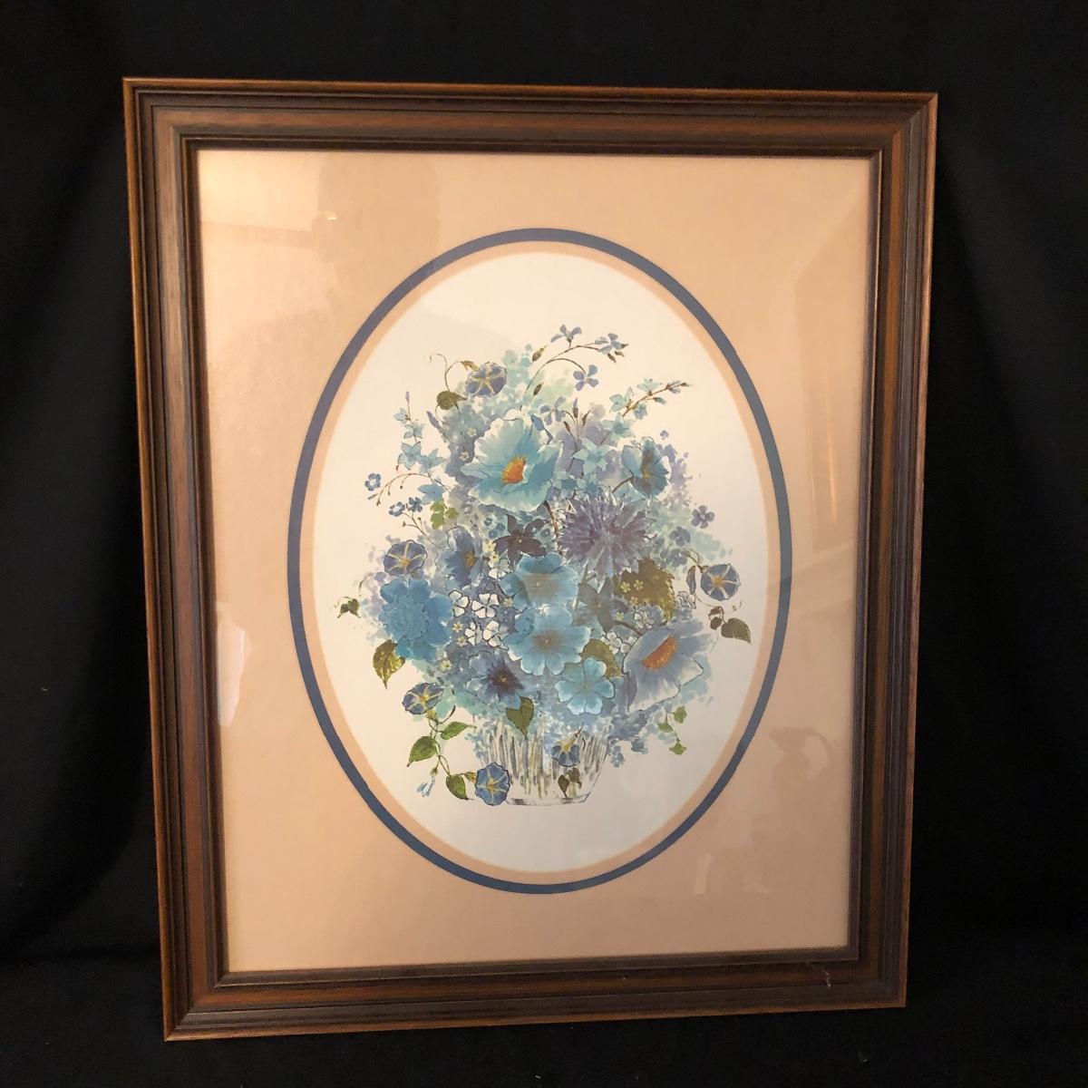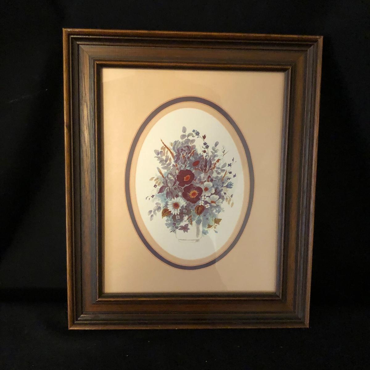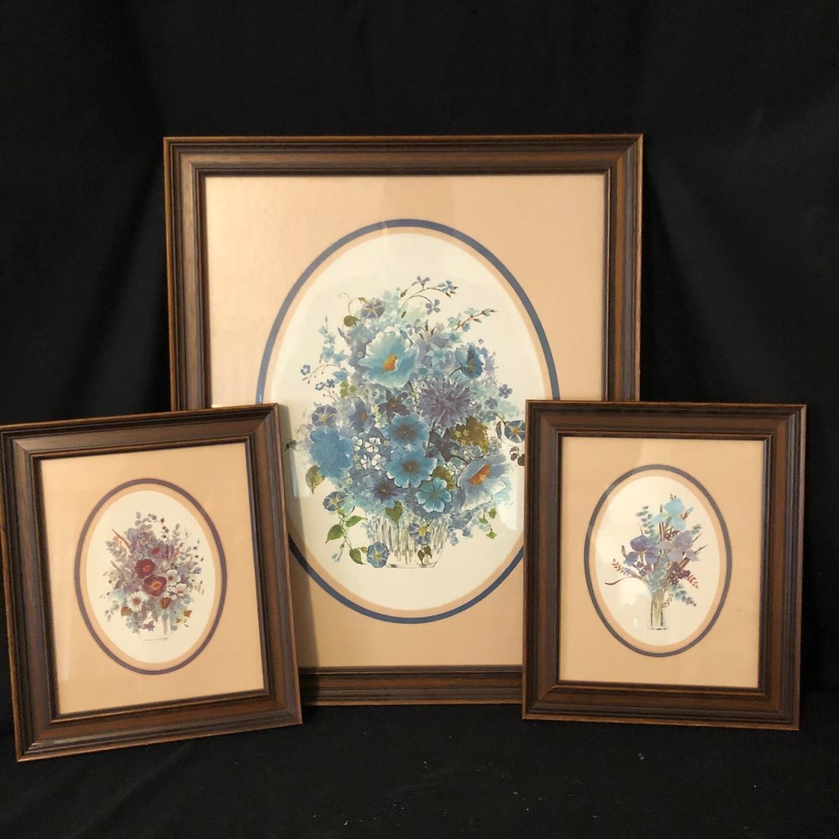 Add some color to your walls with this trio of framed floral art. Lot includes three wooden framed prints of floral art in matching frames. Largest frame measures 18” x 22”.