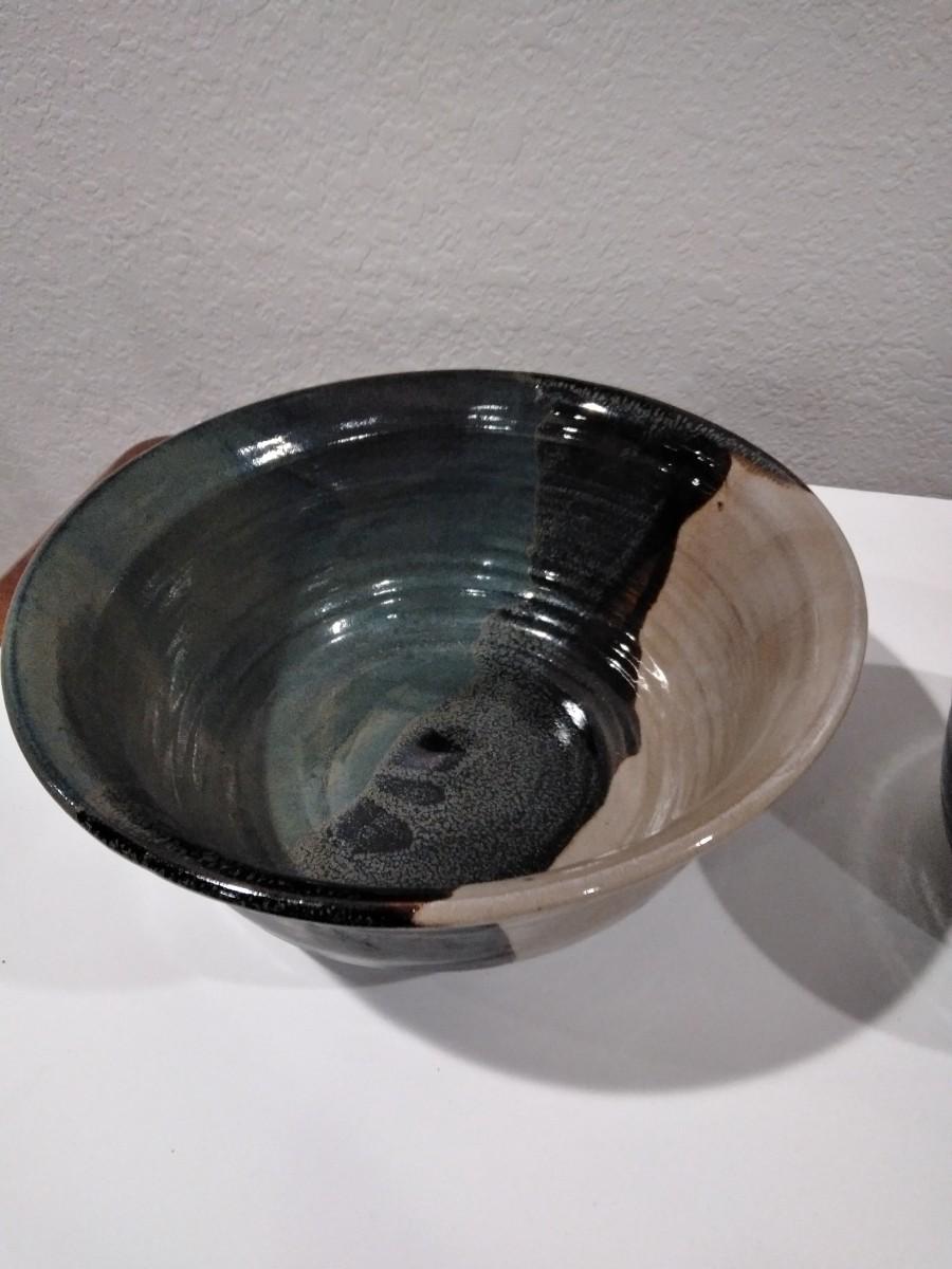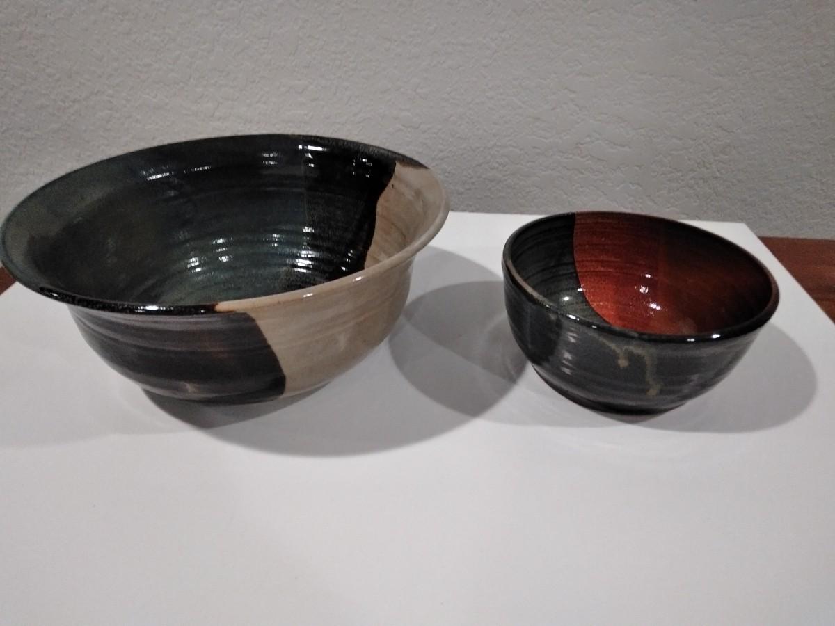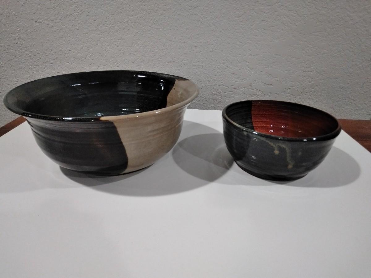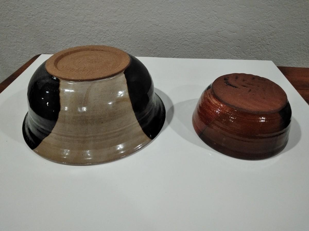TWO CLAY POTTERY BOWLS SIGNED ON BASE BY MAKER