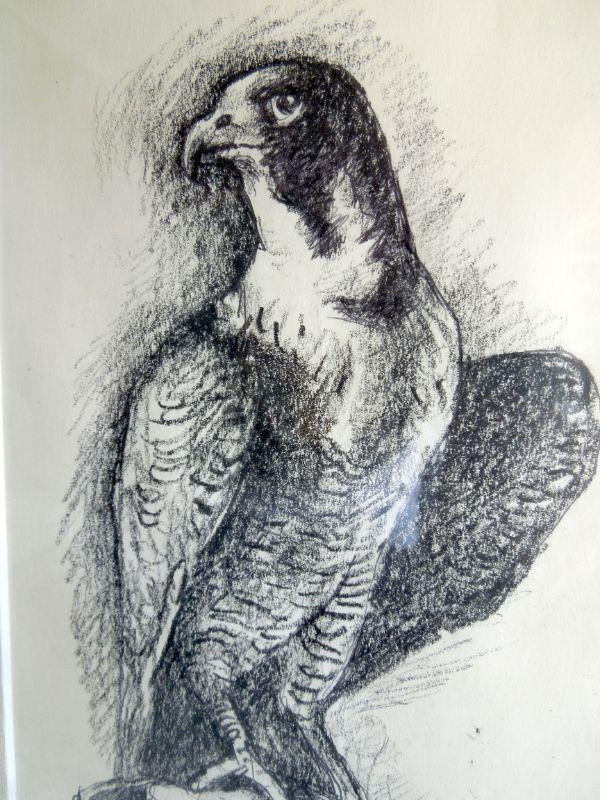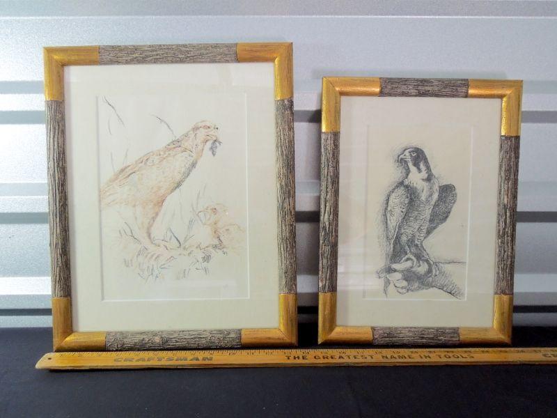 Lot 91: Two Framed Charcoal Sketches of Falcons