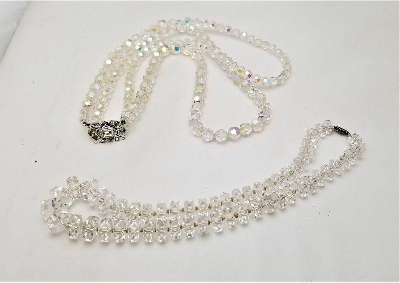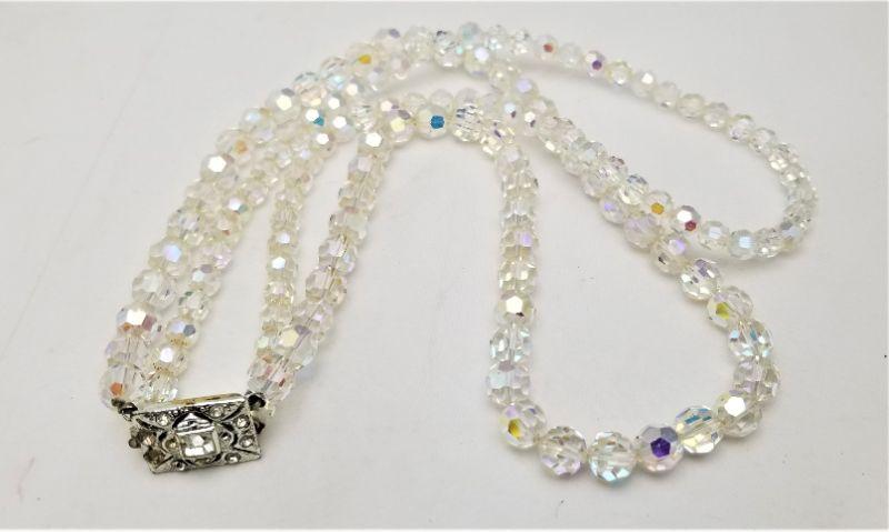 Lot #91  Two vintage Aurora Borealis necklaces - double strand and unusual shape