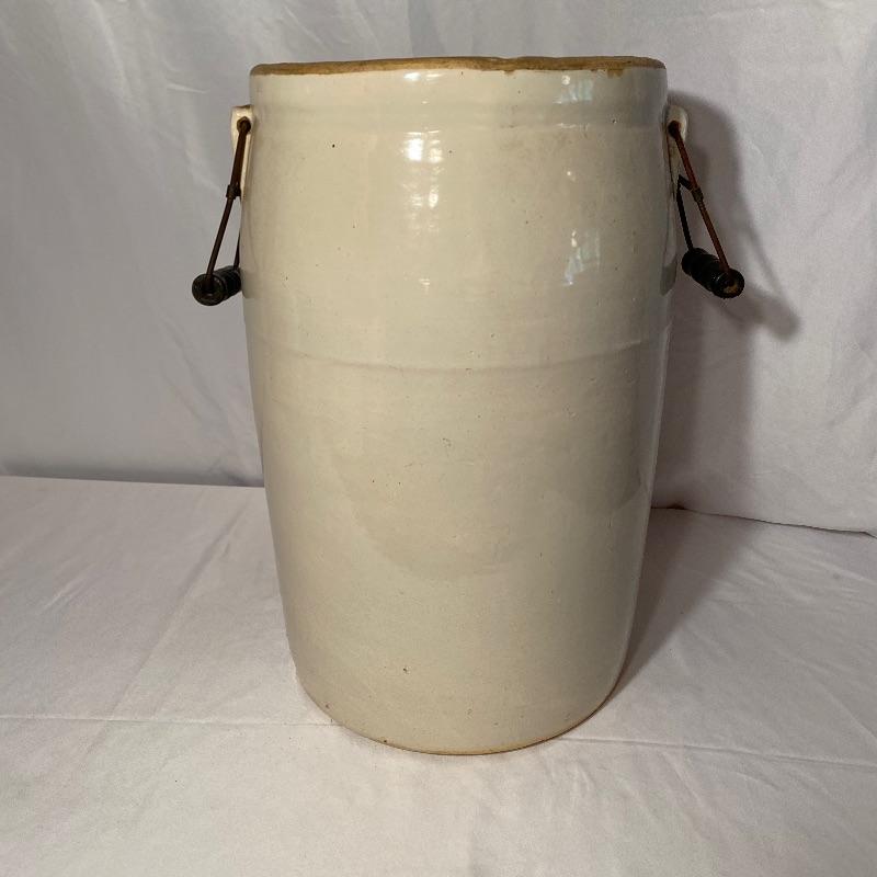 Lovely 5 gallon stoneware crock by UHL Pottery Co out of Indiana. This has its original handles and does not have any cracks. Has a few small chips in interior of top. Unsure if it is missing a top or if it never had one! Measures 12” diameter by 17” tall. No shipping.