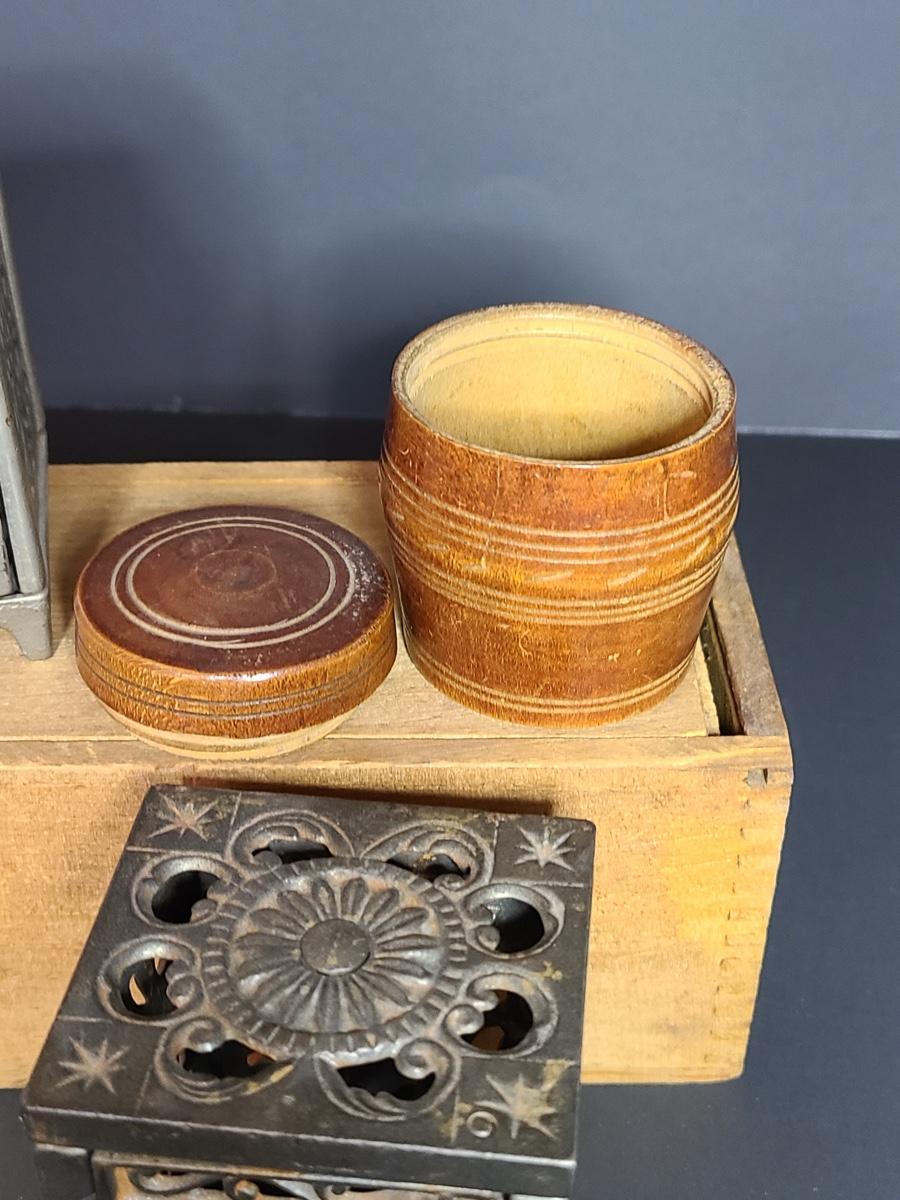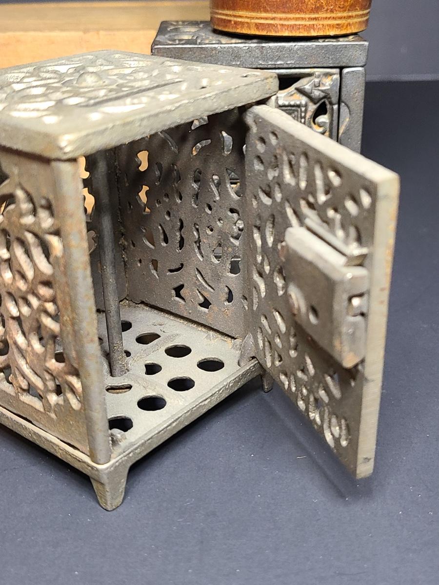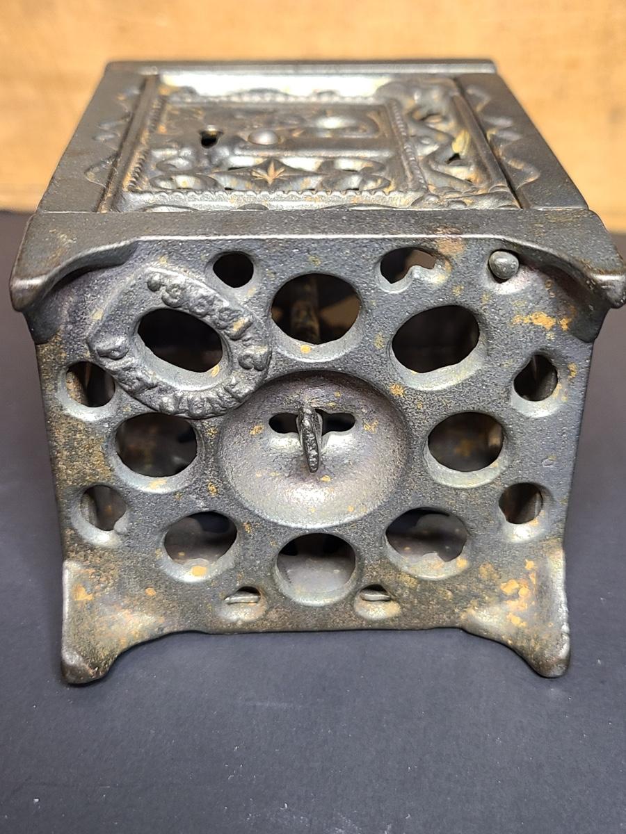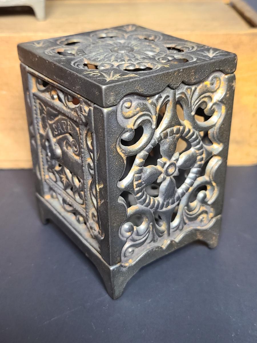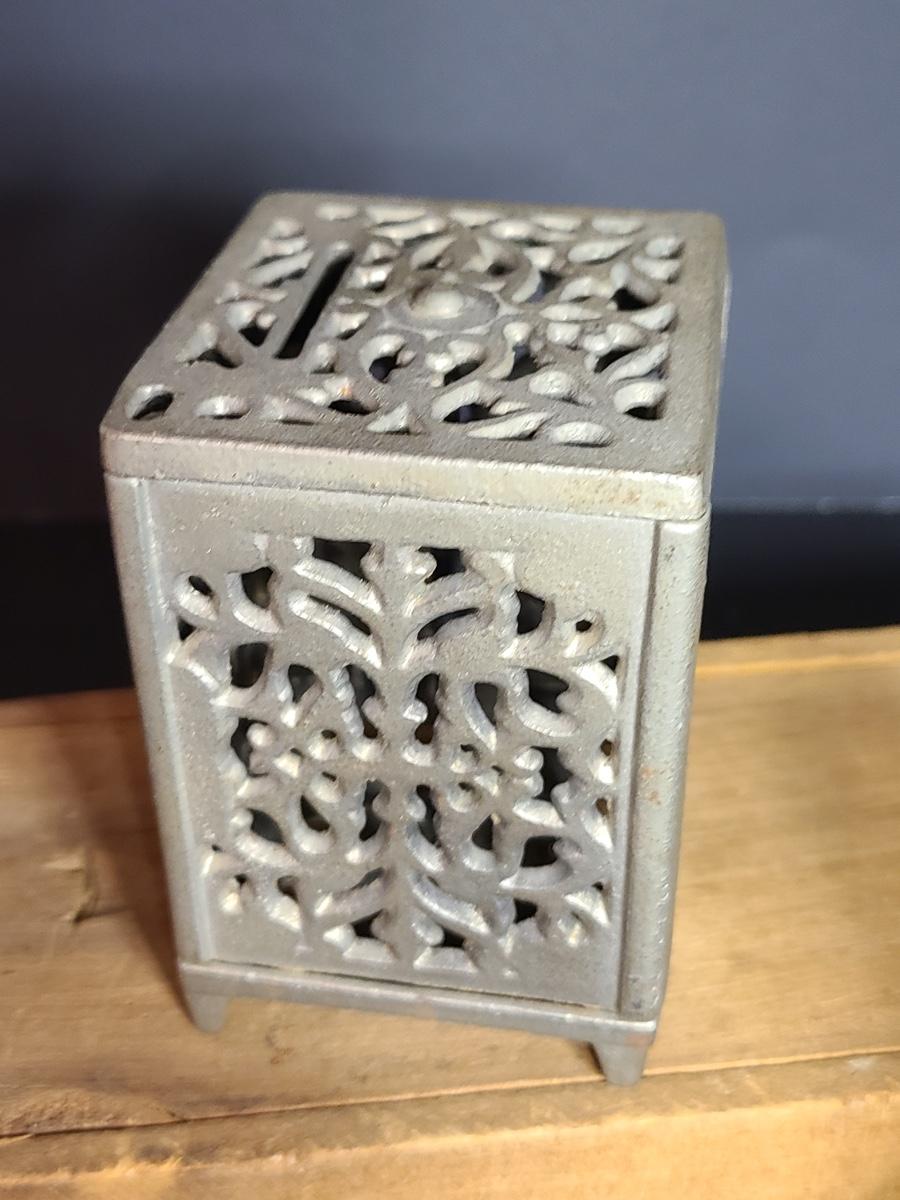 Vintage metal banks, no keys. Small glass blown bottles with a small history of Clevenger Glass, and wood carved primitive storage container. Please see all pictures as they are the best representation of the items. The pictures show condition, measurements if taken, and what is included in the lot. Due to the large amount that we photograph and the time frame, we are not always able to take measurements. All items unless noted, are pre-owned and have been used. If you purchased furniture, you must bring help. We do not allow one person to carry large furniture out on their own. Bring help, tools and a truck for the safety of our client’s homes, and your personal safety. Company policy. Thank you.