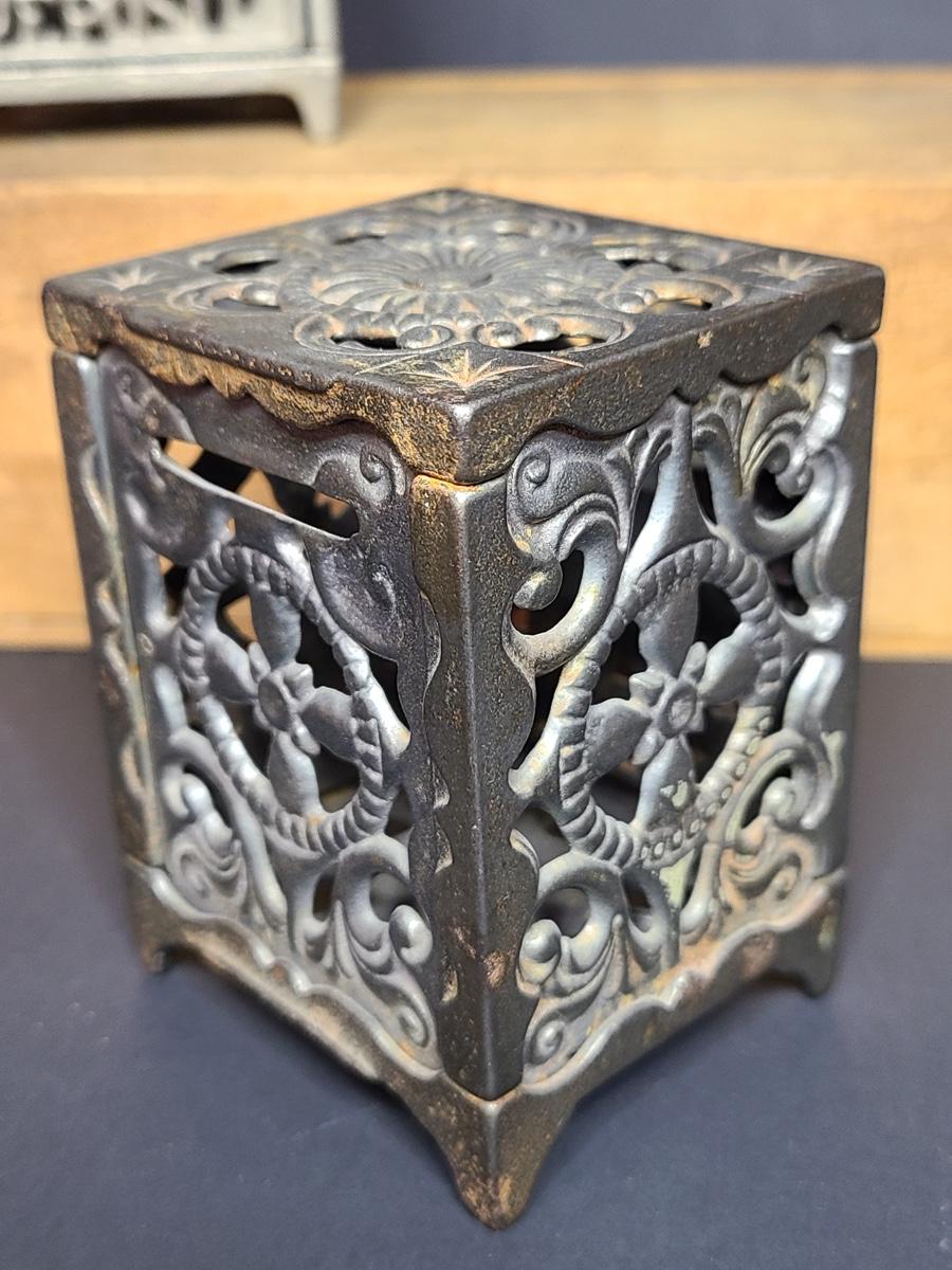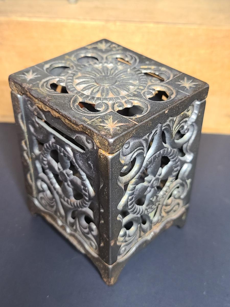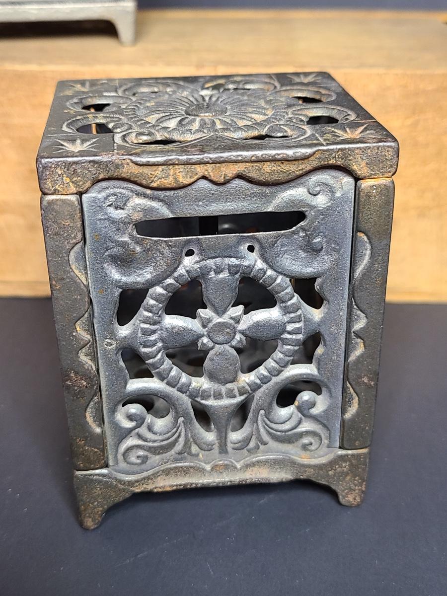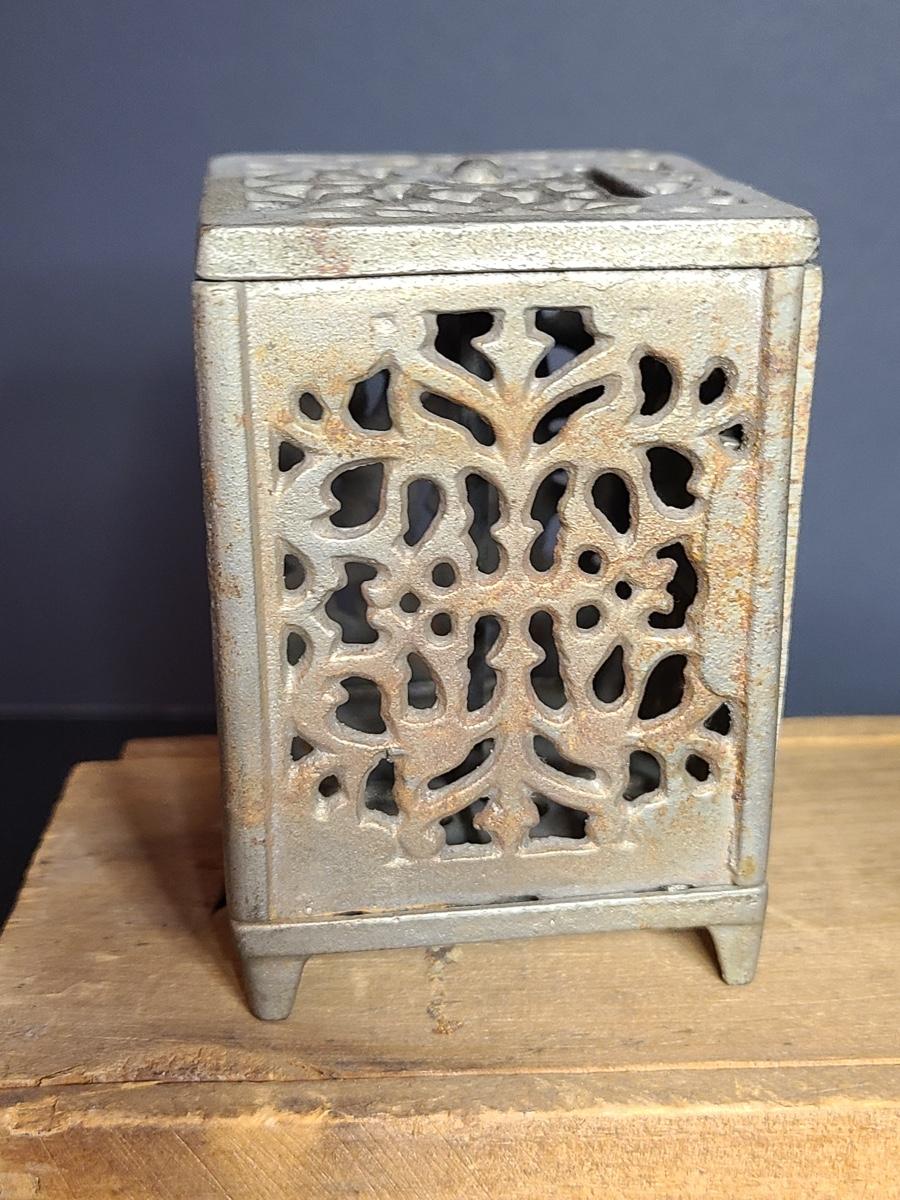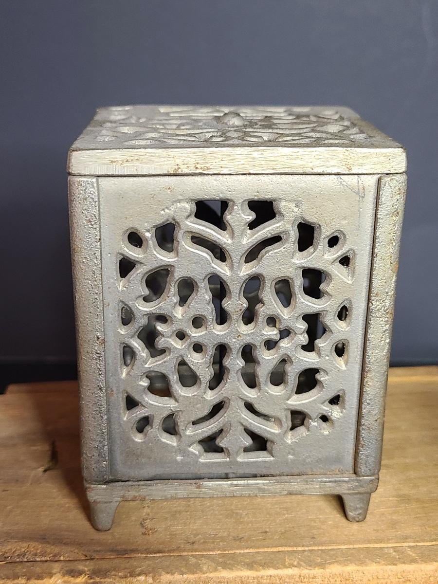 Vintage metal banks, no keys. Small glass blown bottles with a small history of Clevenger Glass, and wood carved primitive storage container. Please see all pictures as they are the best representation of the items. The pictures show condition, measurements if taken, and what is included in the lot. Due to the large amount that we photograph and the time frame, we are not always able to take measurements. All items unless noted, are pre-owned and have been used. If you purchased furniture, you must bring help. We do not allow one person to carry large furniture out on their own. Bring help, tools and a truck for the safety of our client’s homes, and your personal safety. Company policy. Thank you.