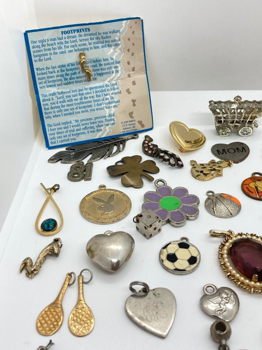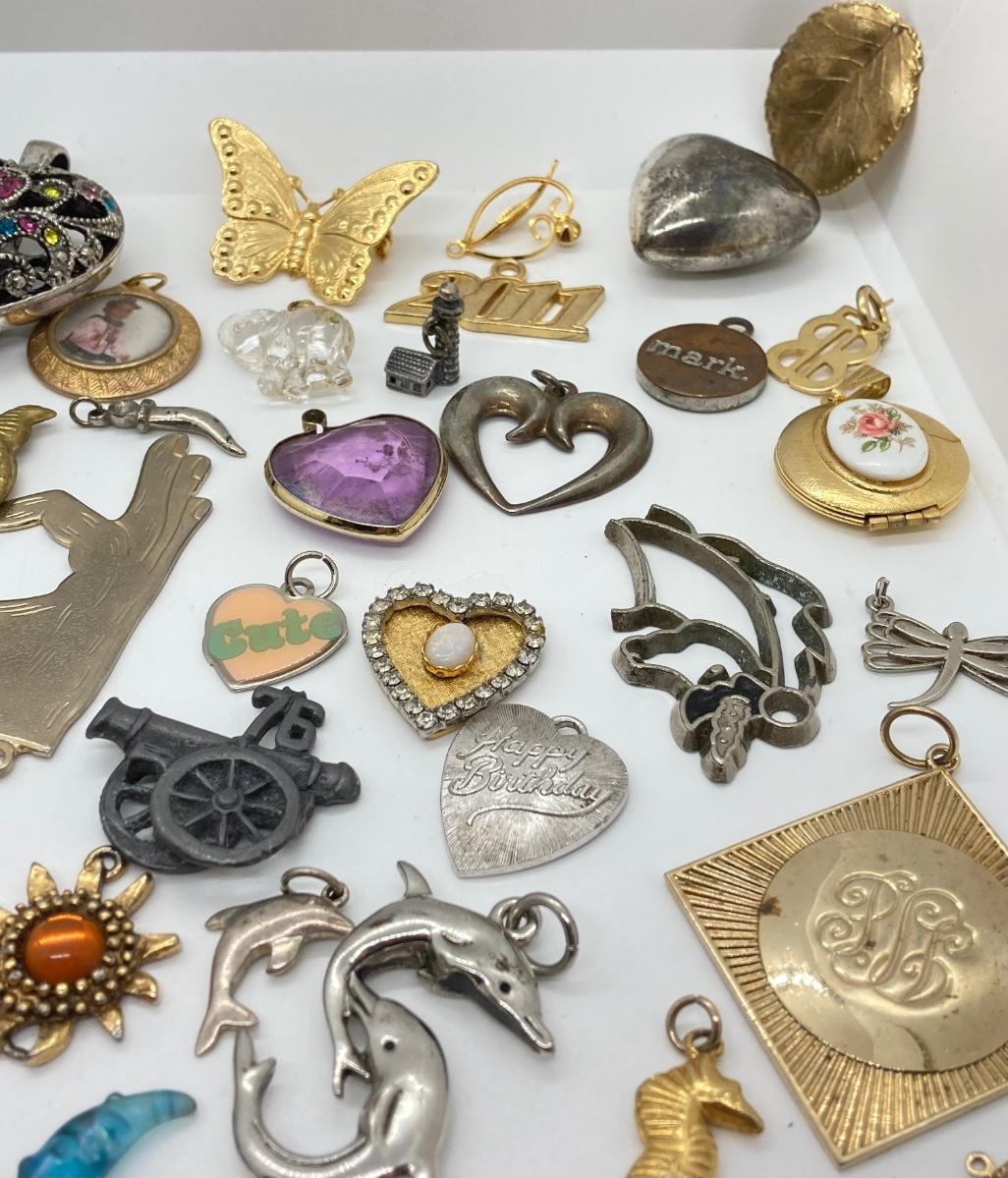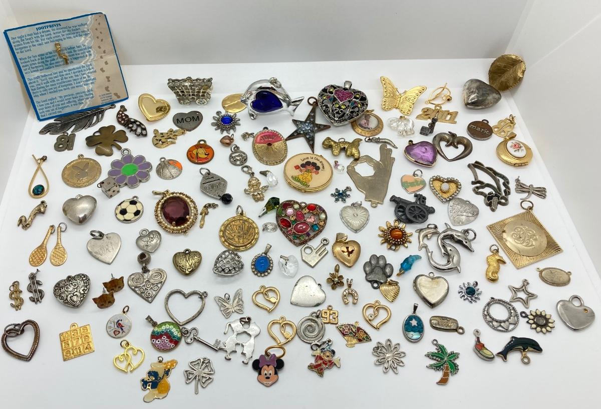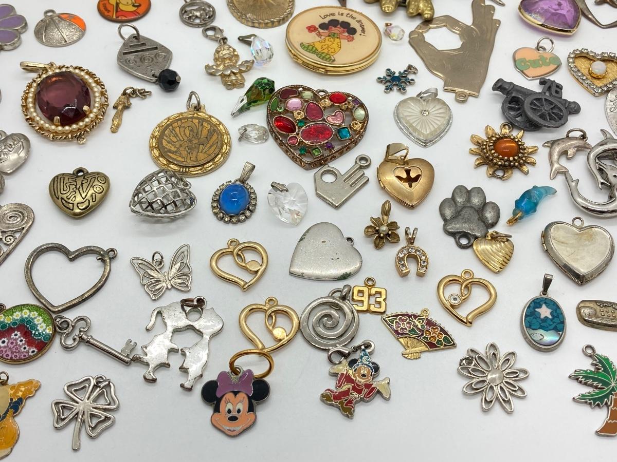 LOT 37: Collection of Pendants and Pins, - Hearts, Disney and More