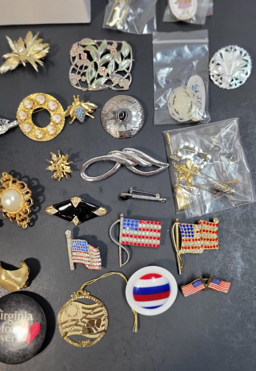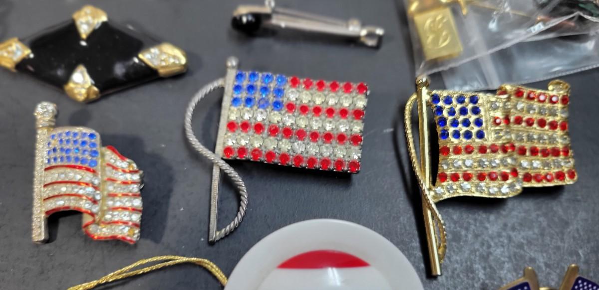 LOT 51: PINS & BROOCHES - RHINESTONE AMERICAN FLAGS