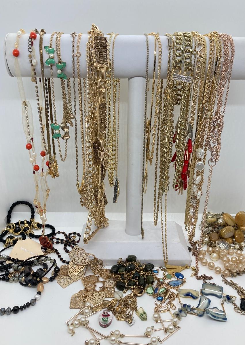 LOT 112: Gold Tone Necklaces and More