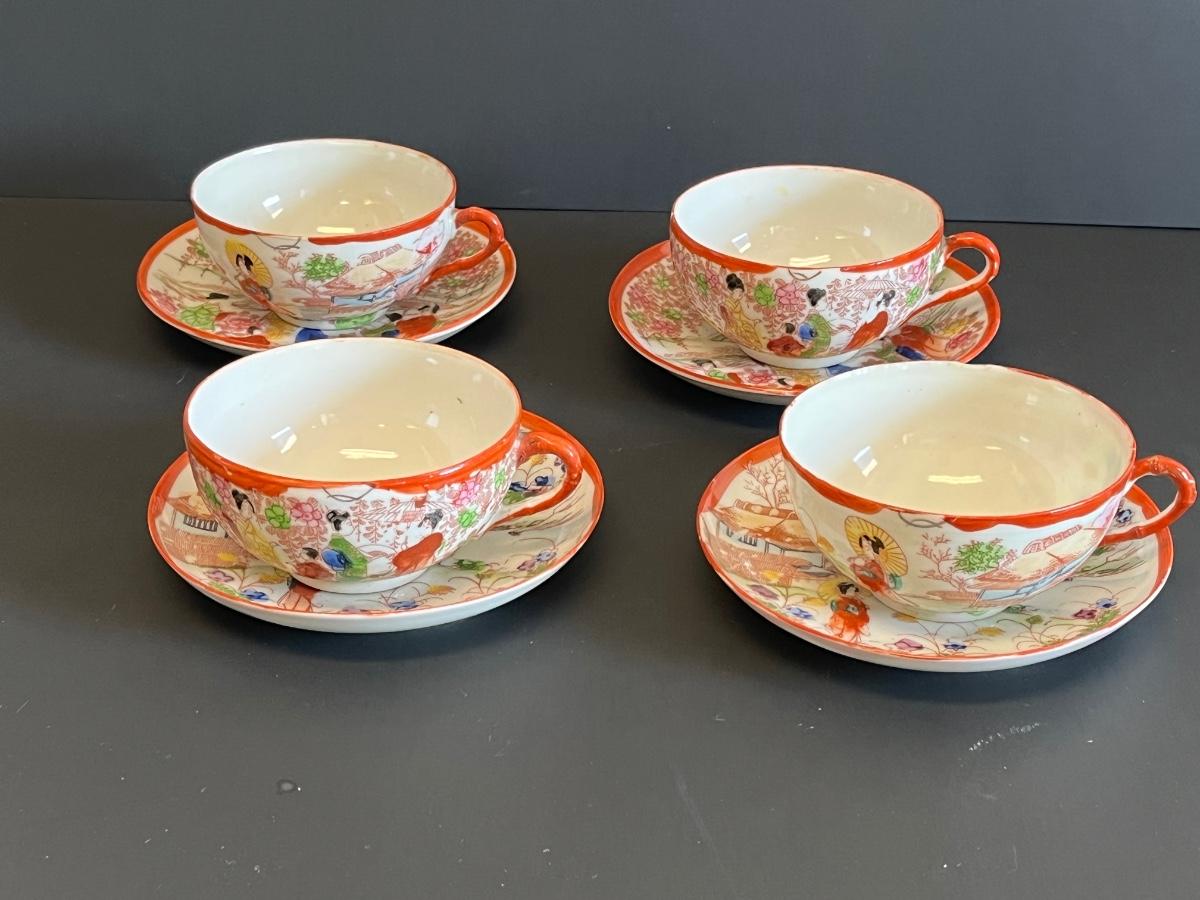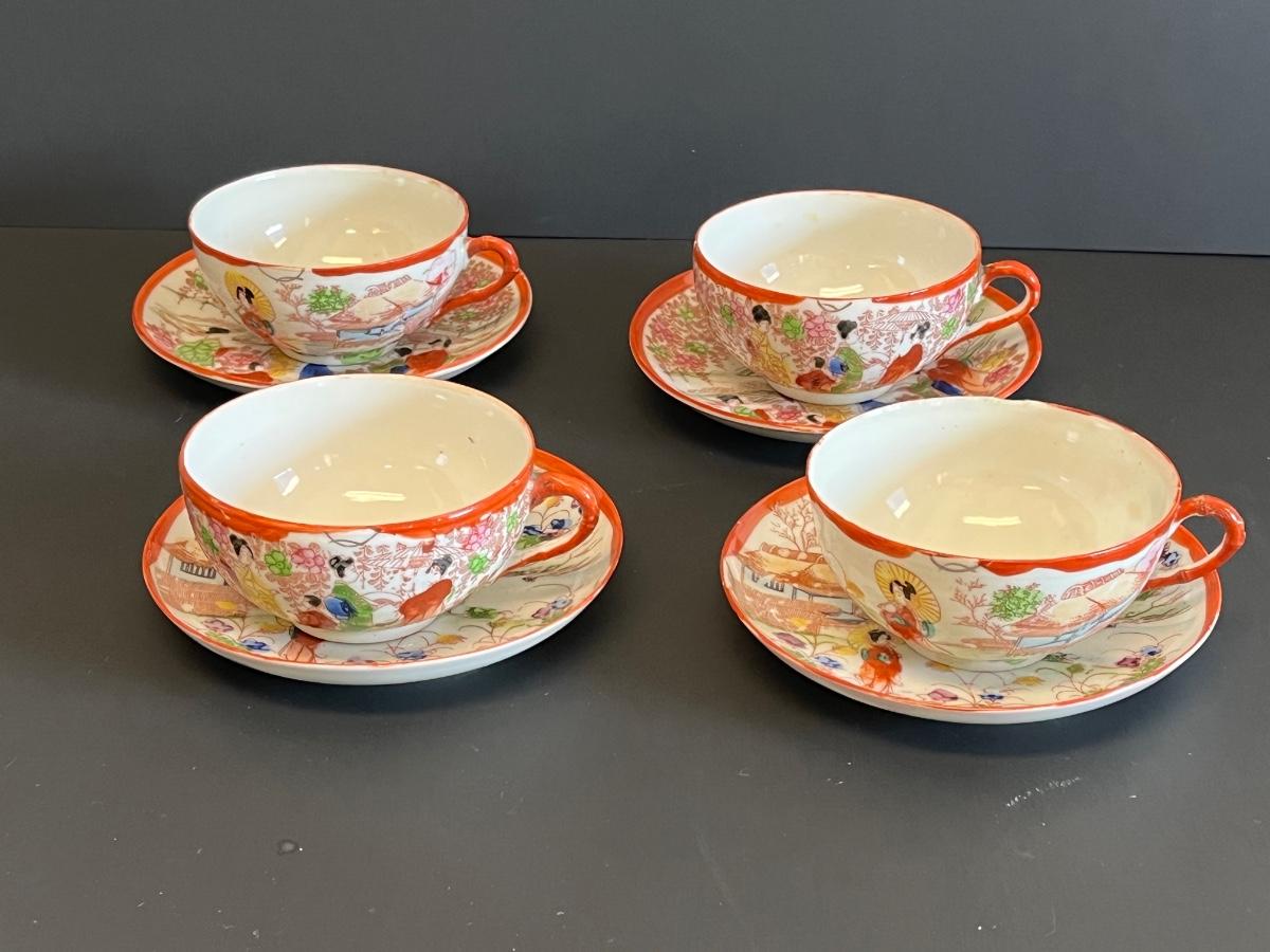 LOT 153: Set of Four Geisha Themed Tea Cups and Saucers