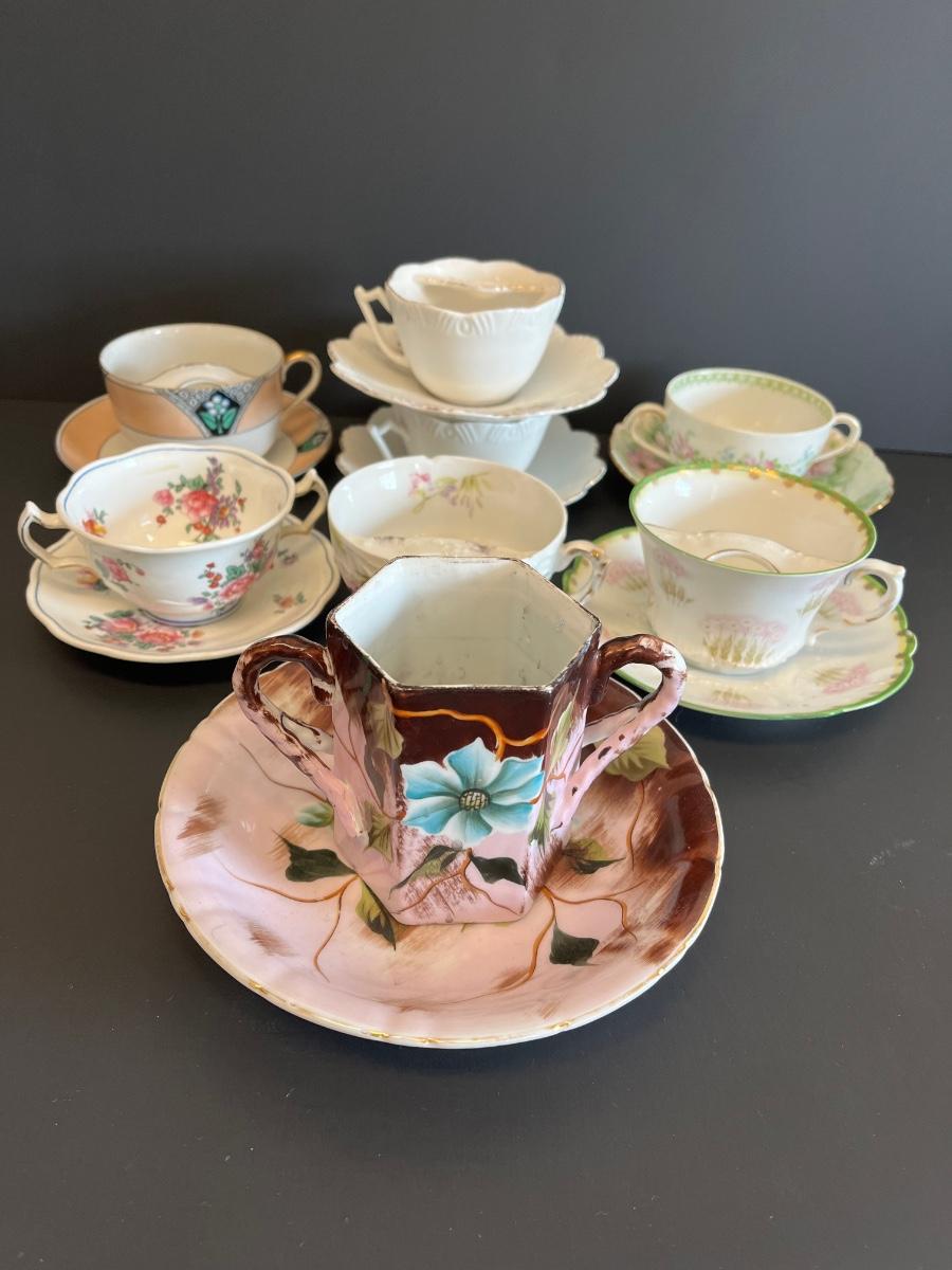 LOT 156: Vintage Moustache Mugs & Double Handle Tea Cups