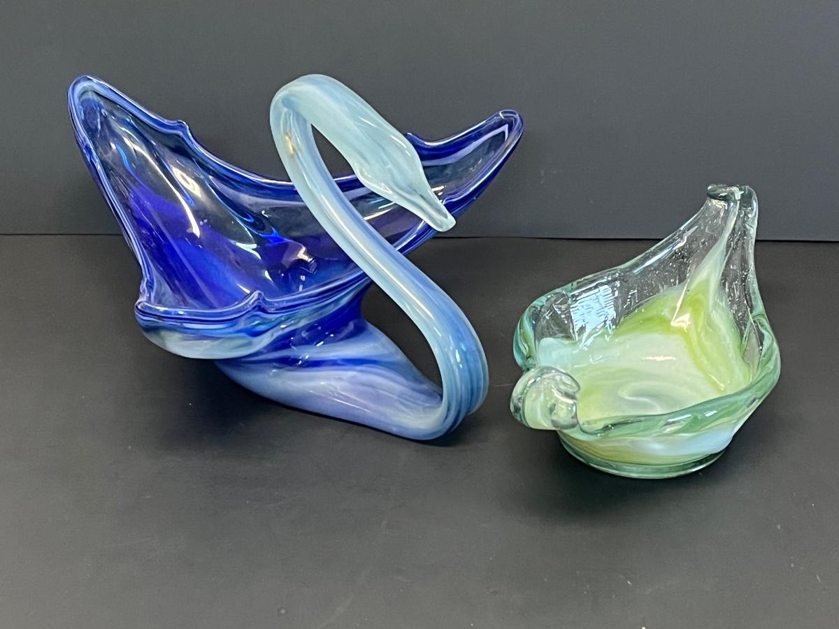 LOT 179: Large Decorative Handblown Glass Bowls