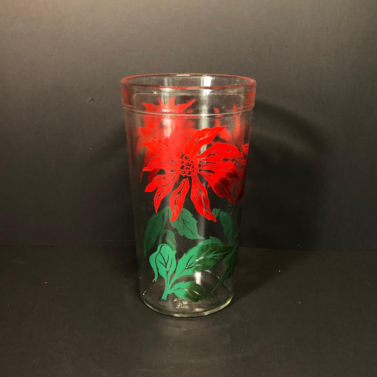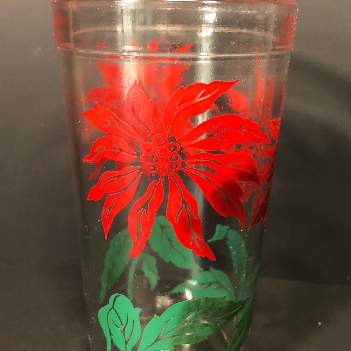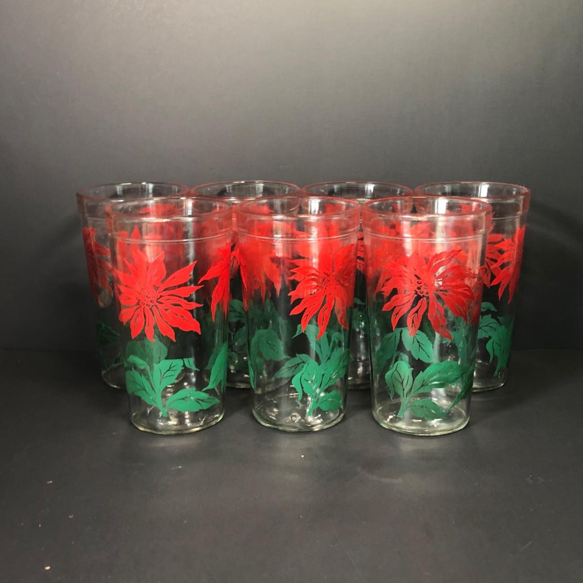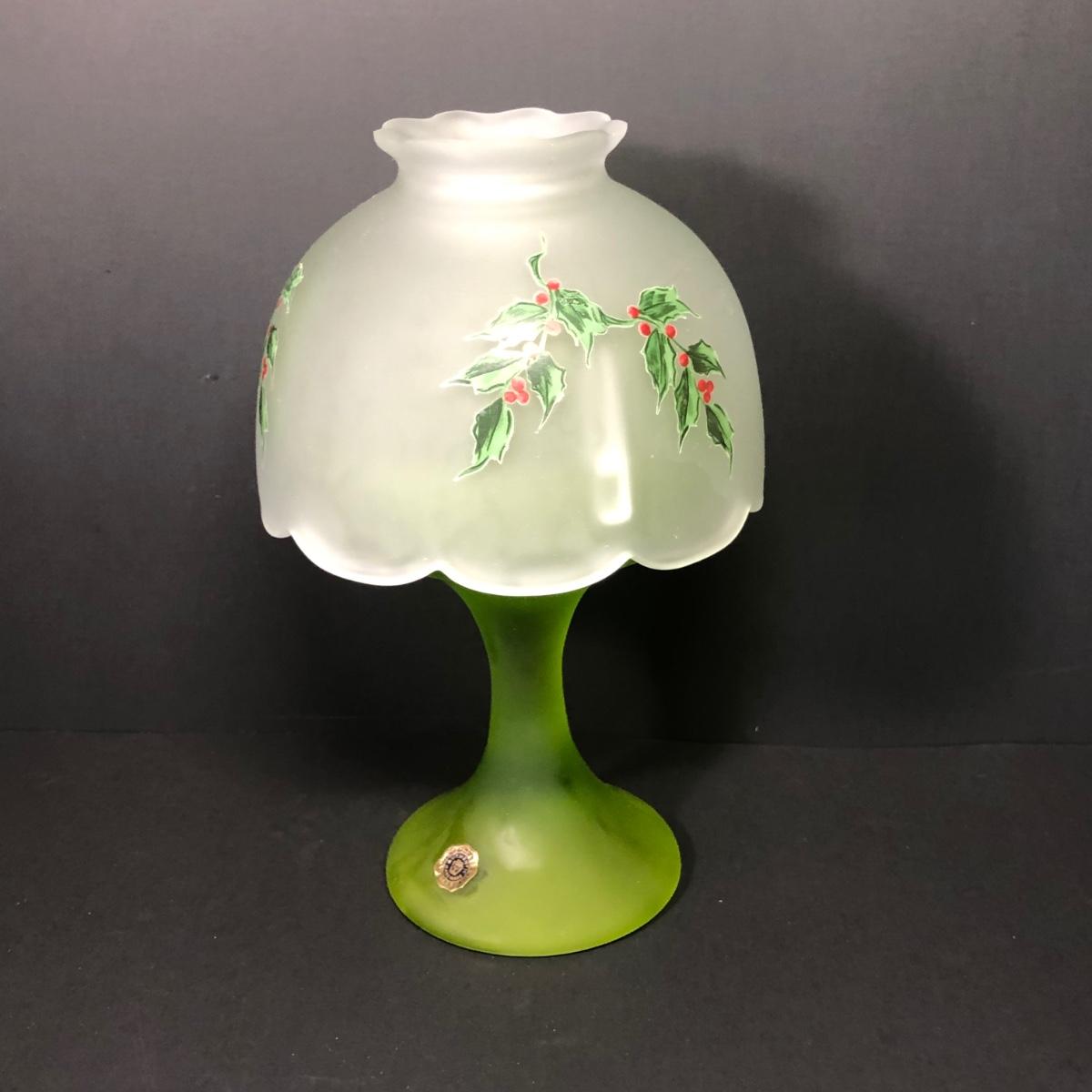 LOT 12M: Westmoreland Glass Holly Lamp, Royal Albert "Yuletide" Plate & 7 Poinsettia Glasses