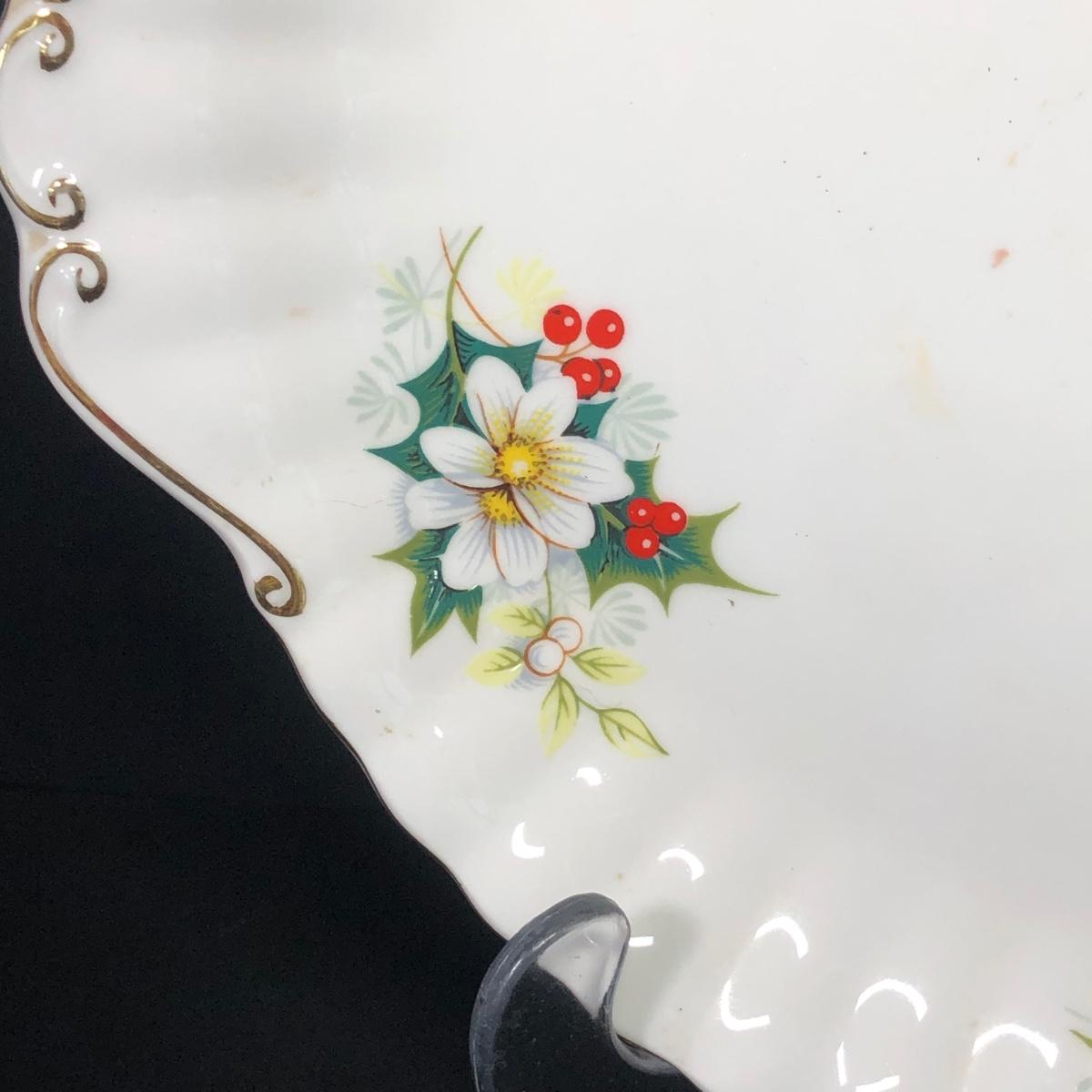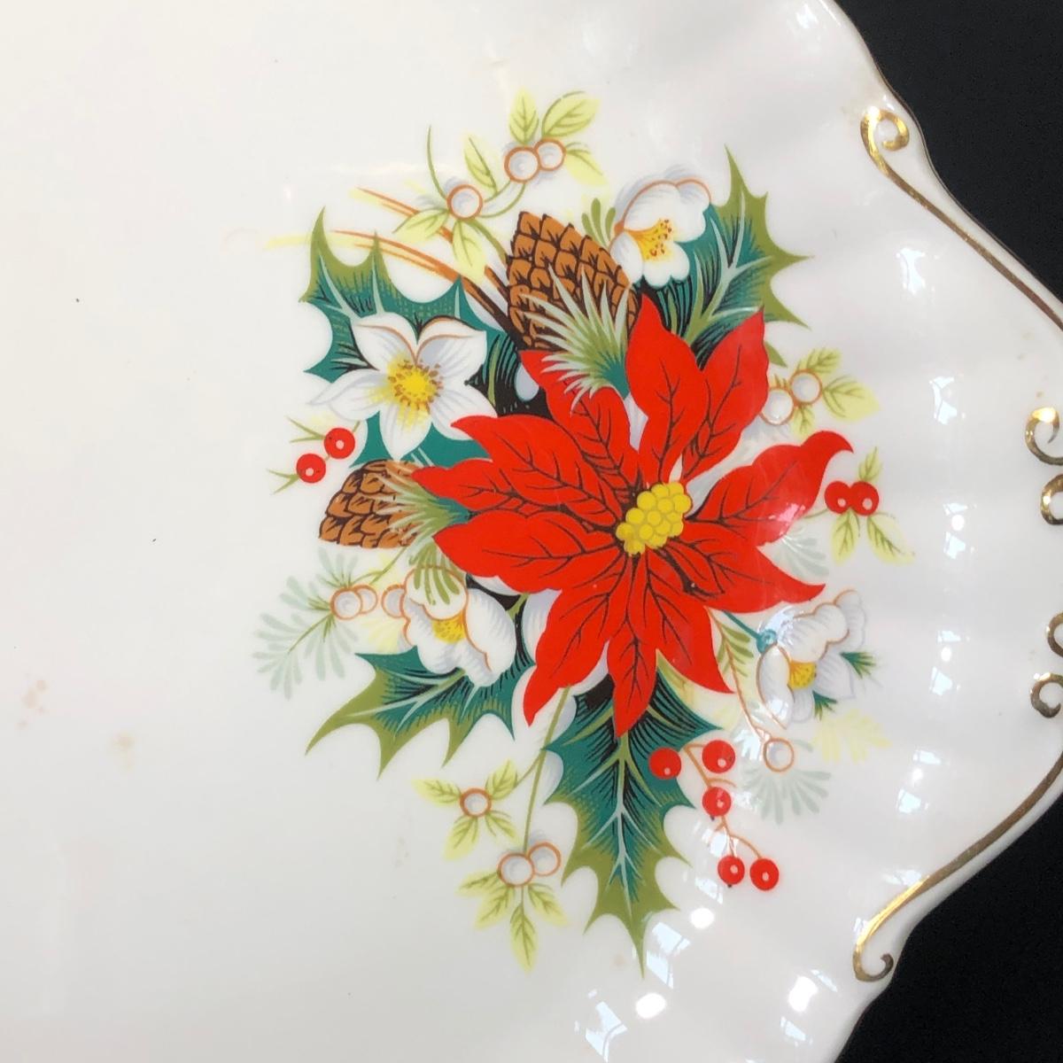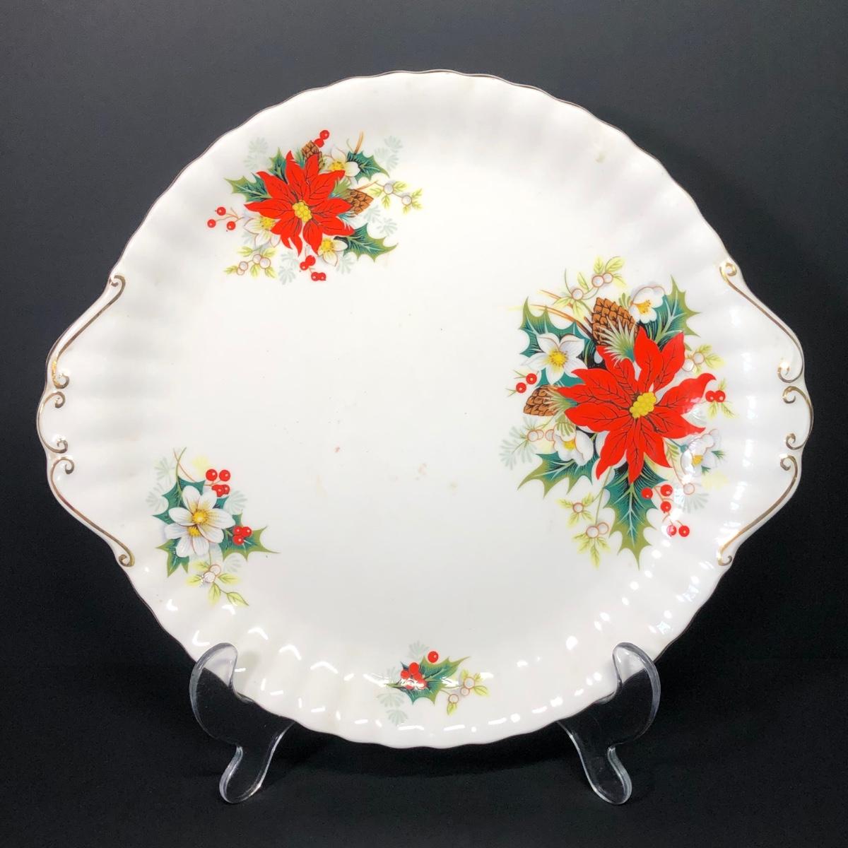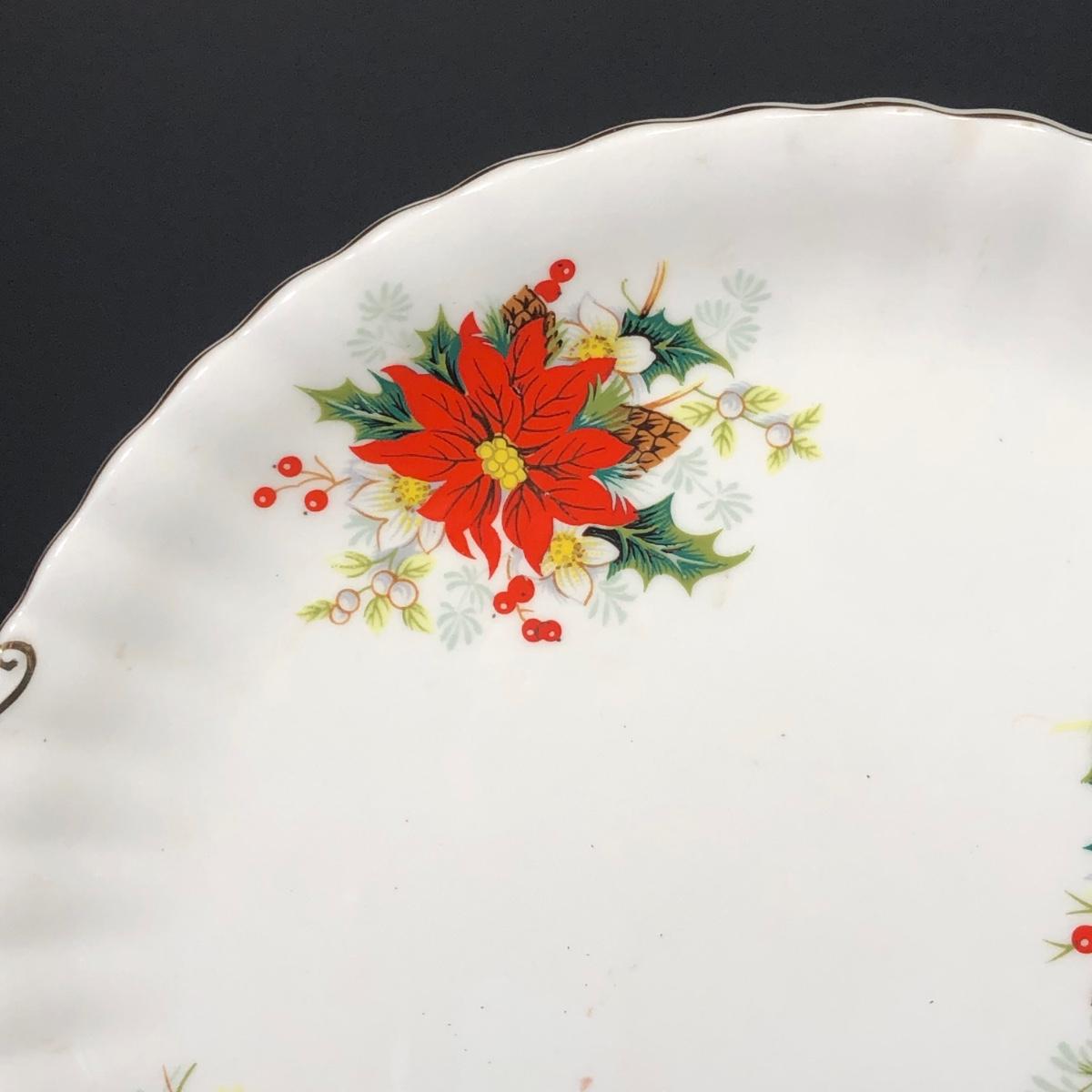 LOT 12M: Westmoreland Glass Holly Lamp, Royal Albert "Yuletide" Plate & 7 Poinsettia Glasses