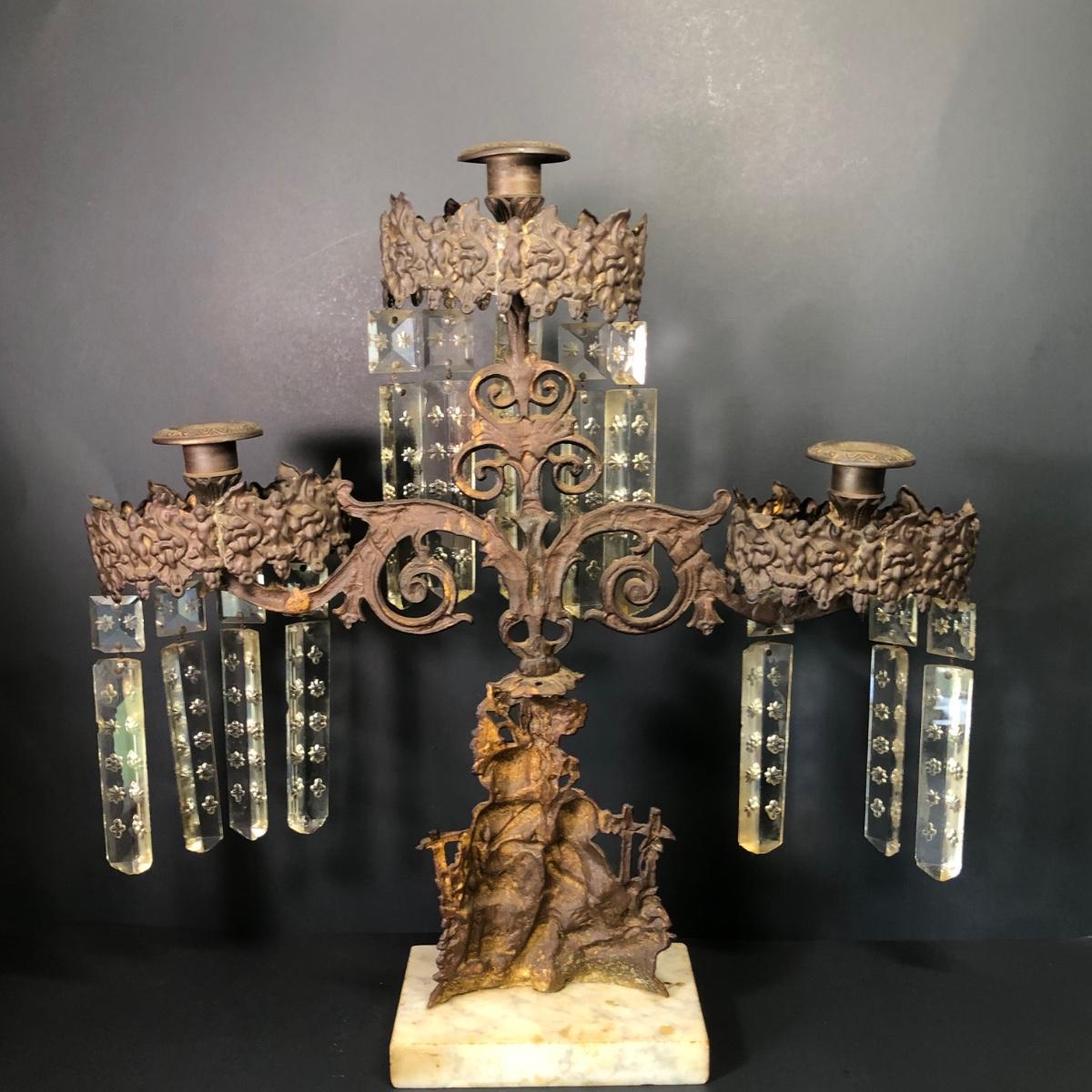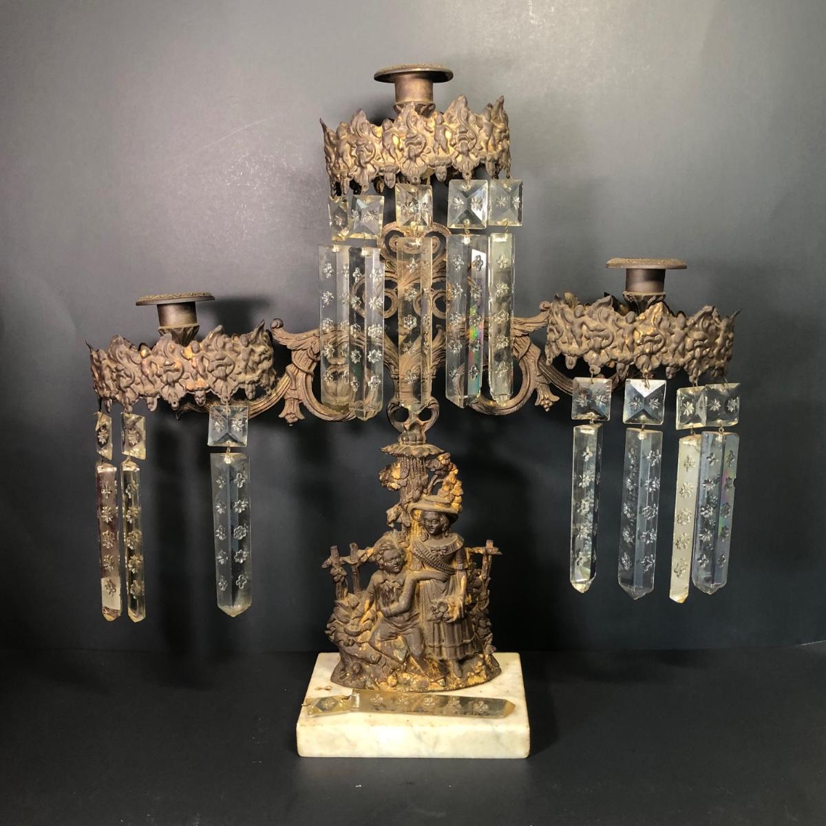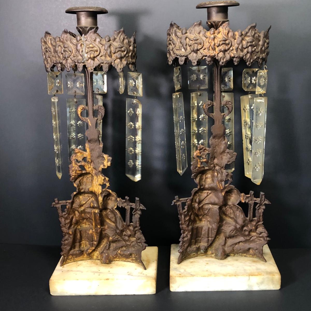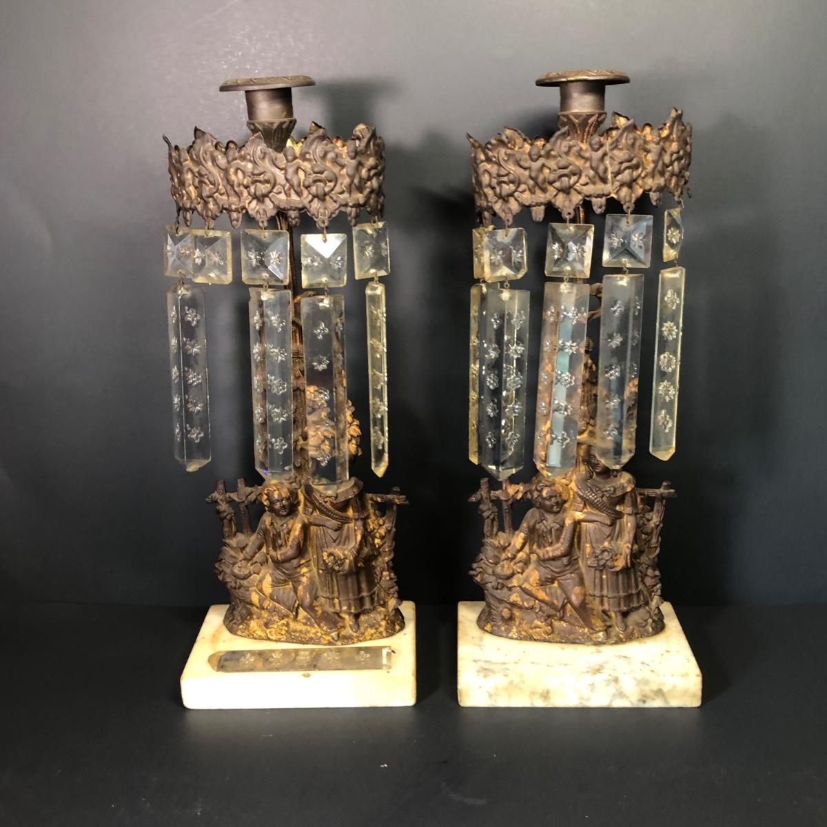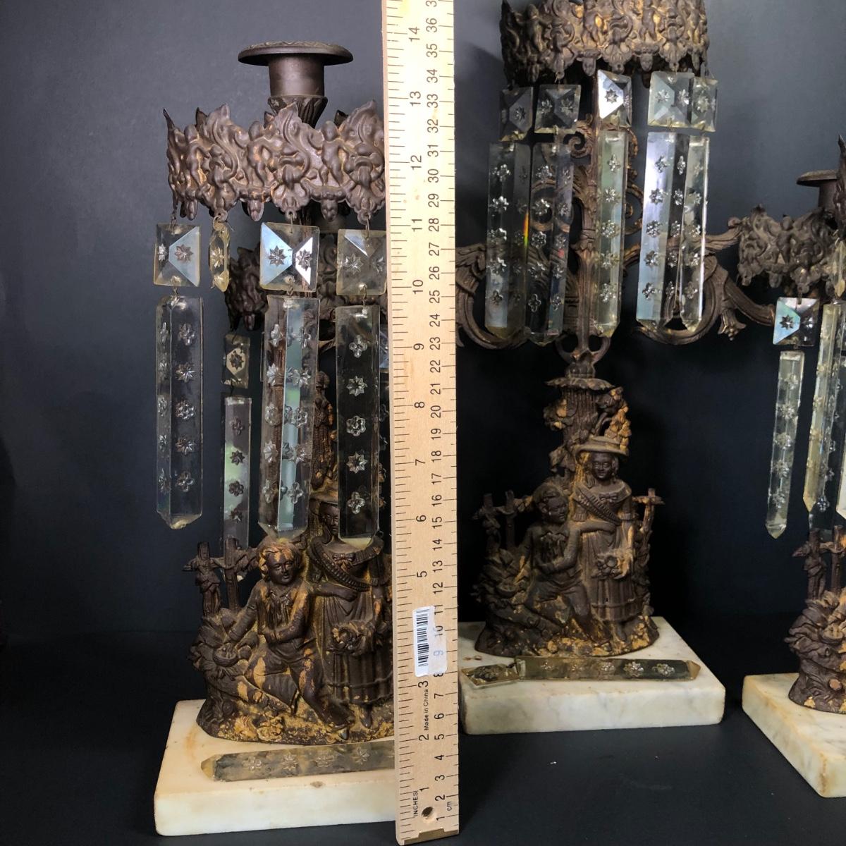 LOT 13M: Antique Candelabras w/ Crystals & Marble Bases