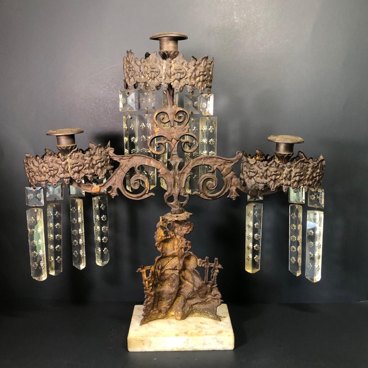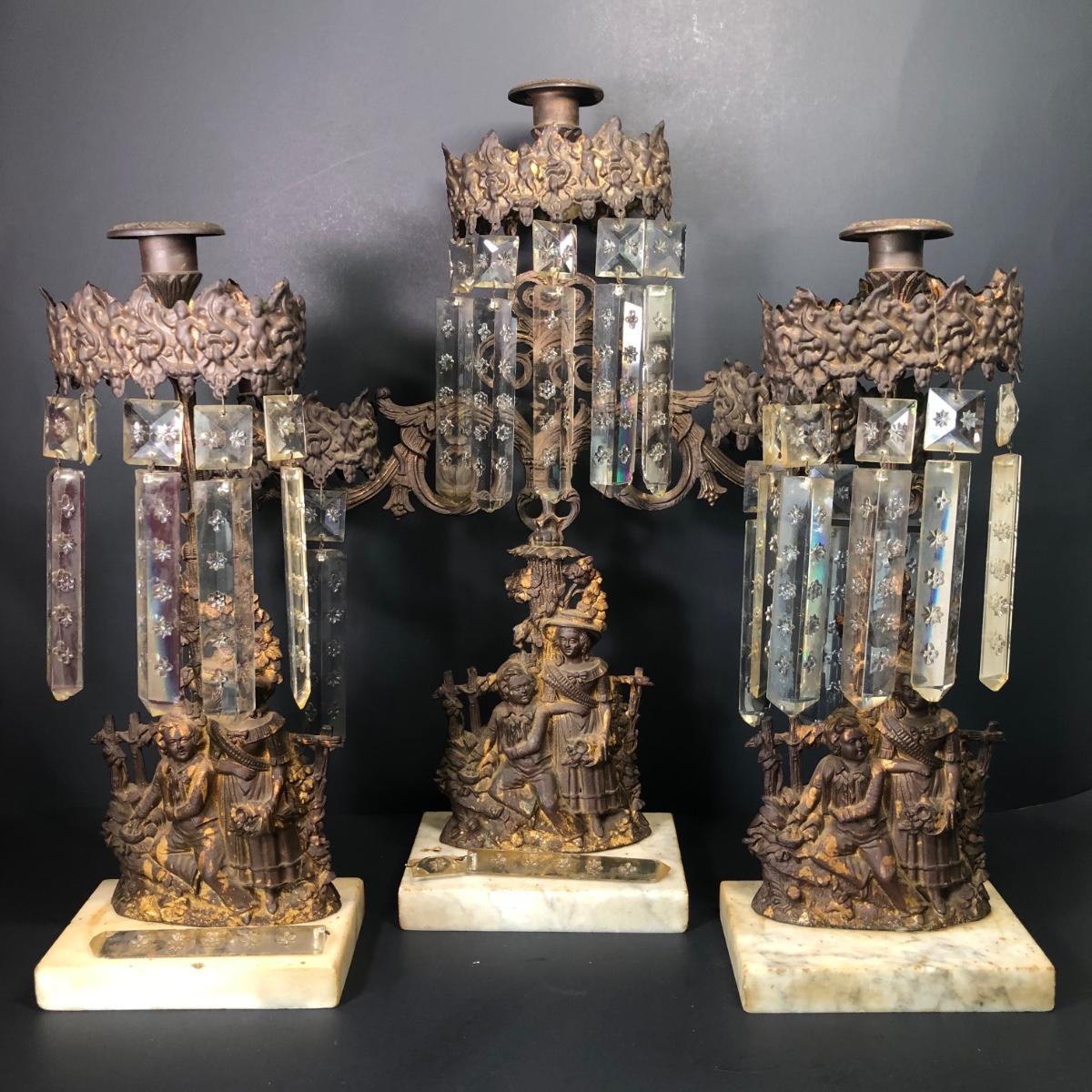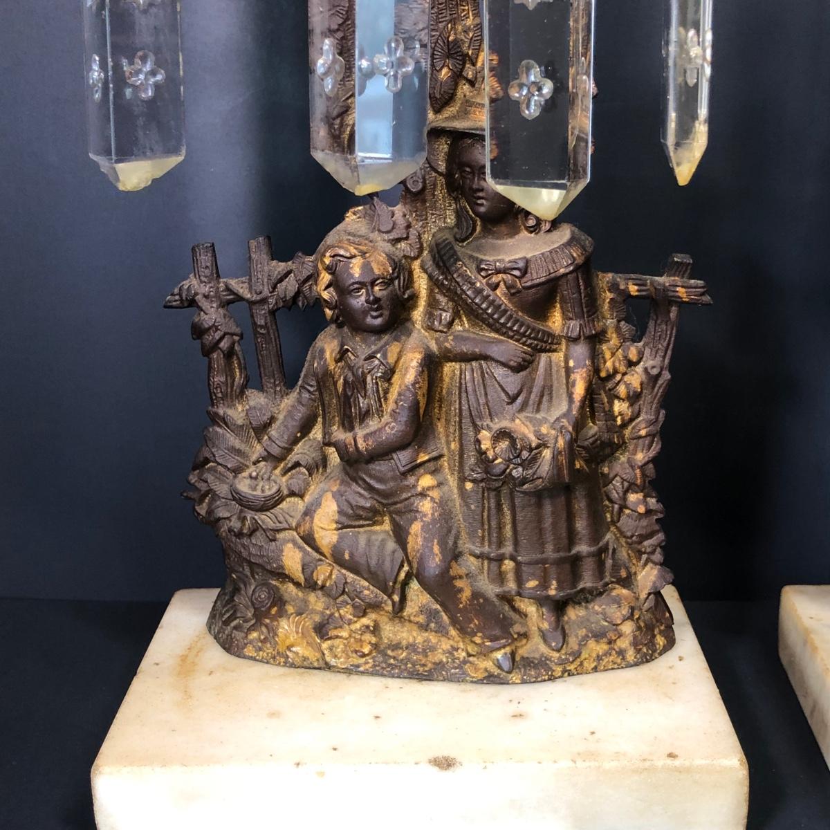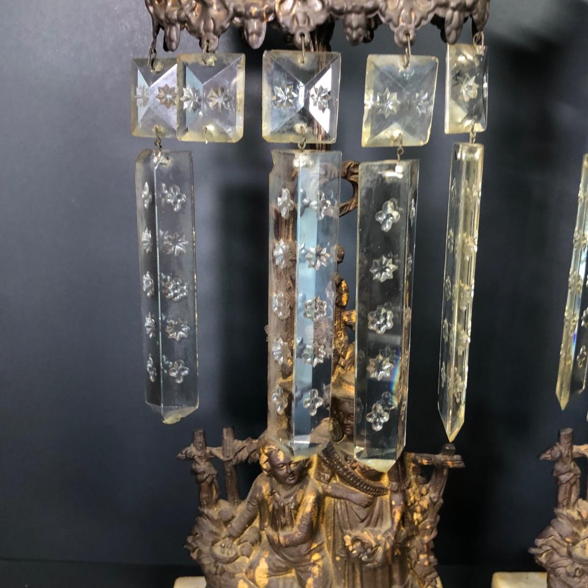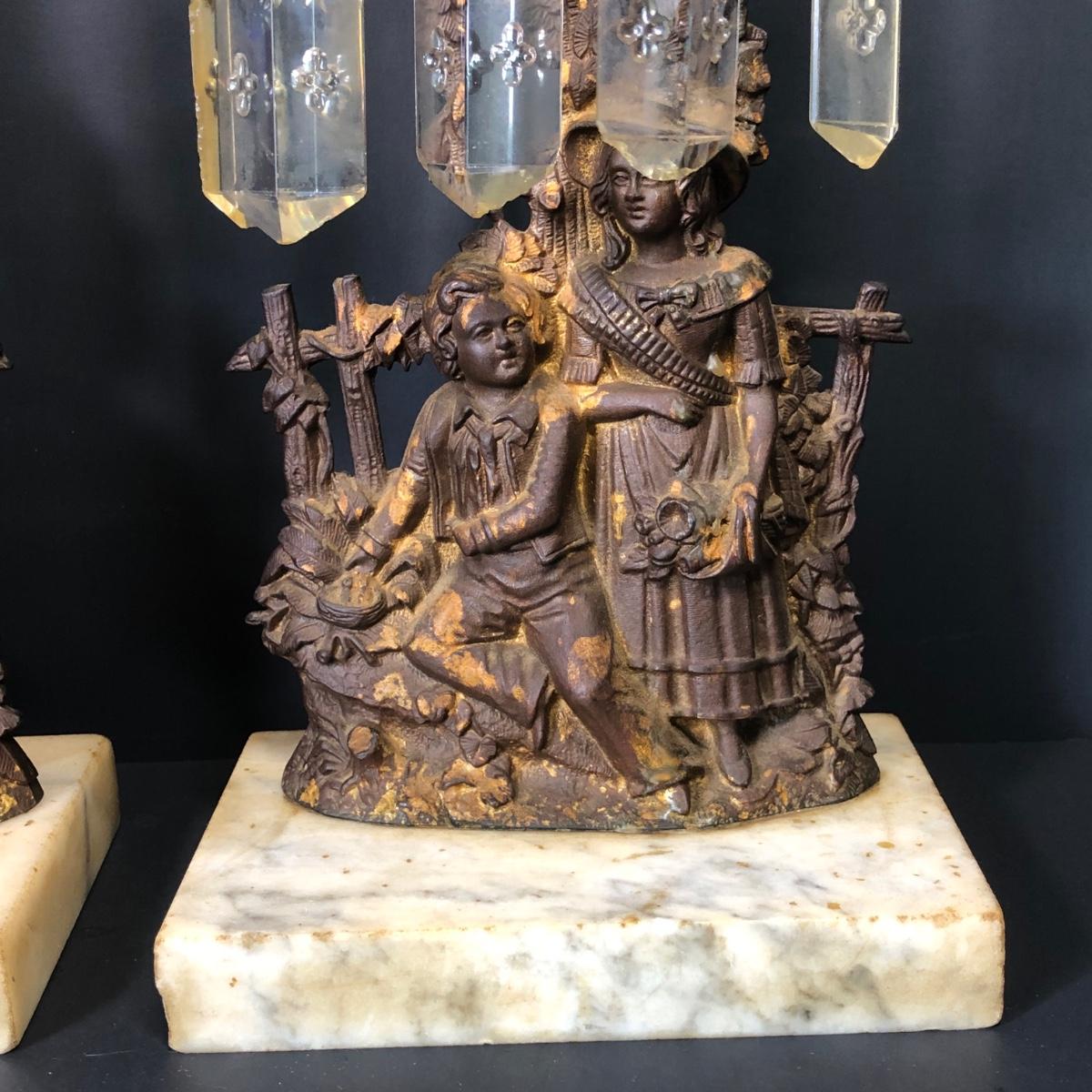 LOT 13M: Antique Candelabras w/ Crystals & Marble Bases