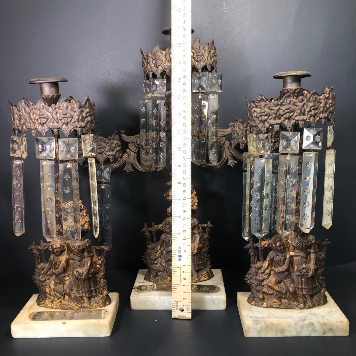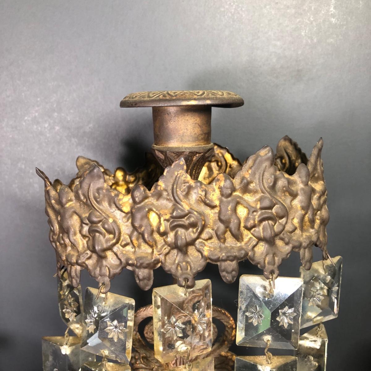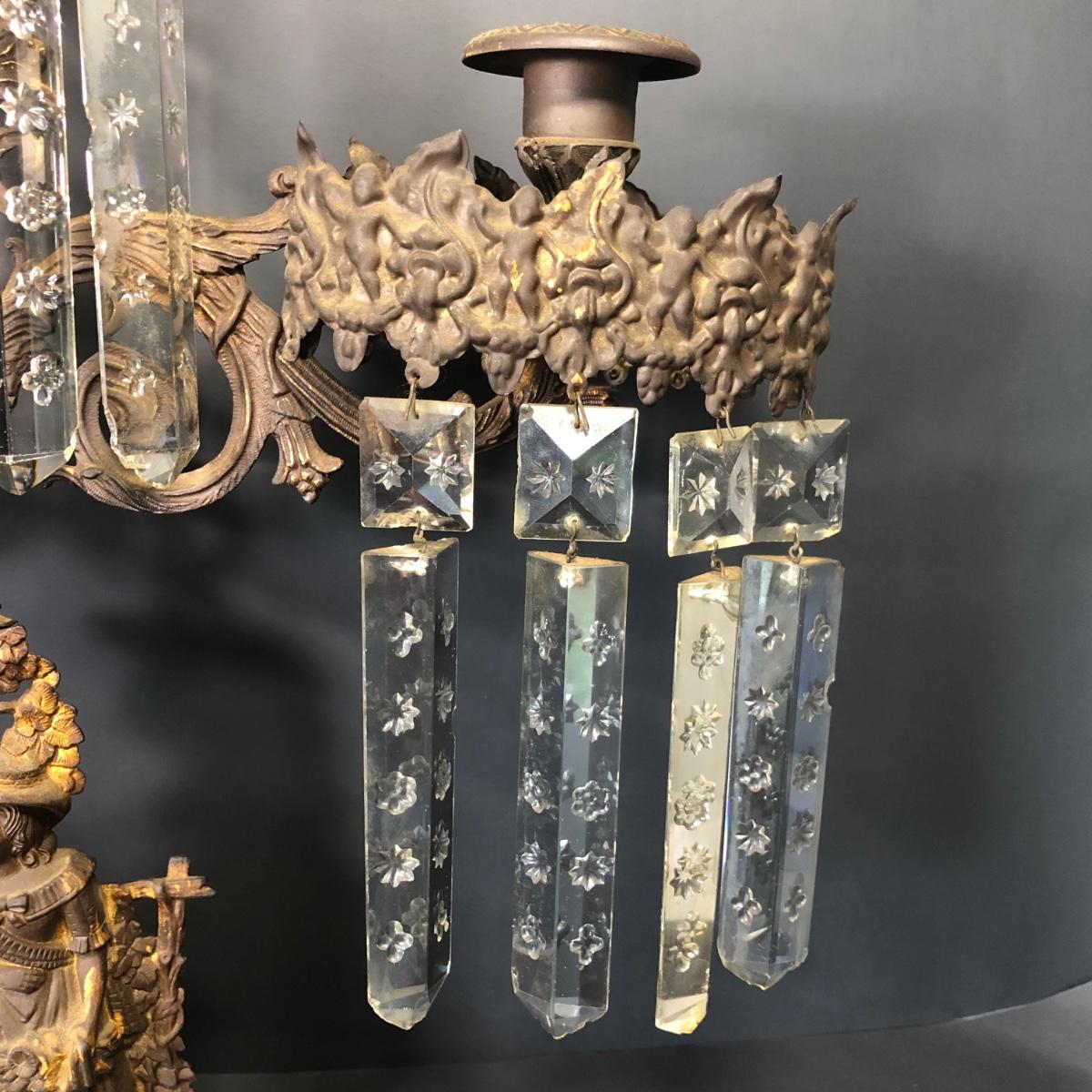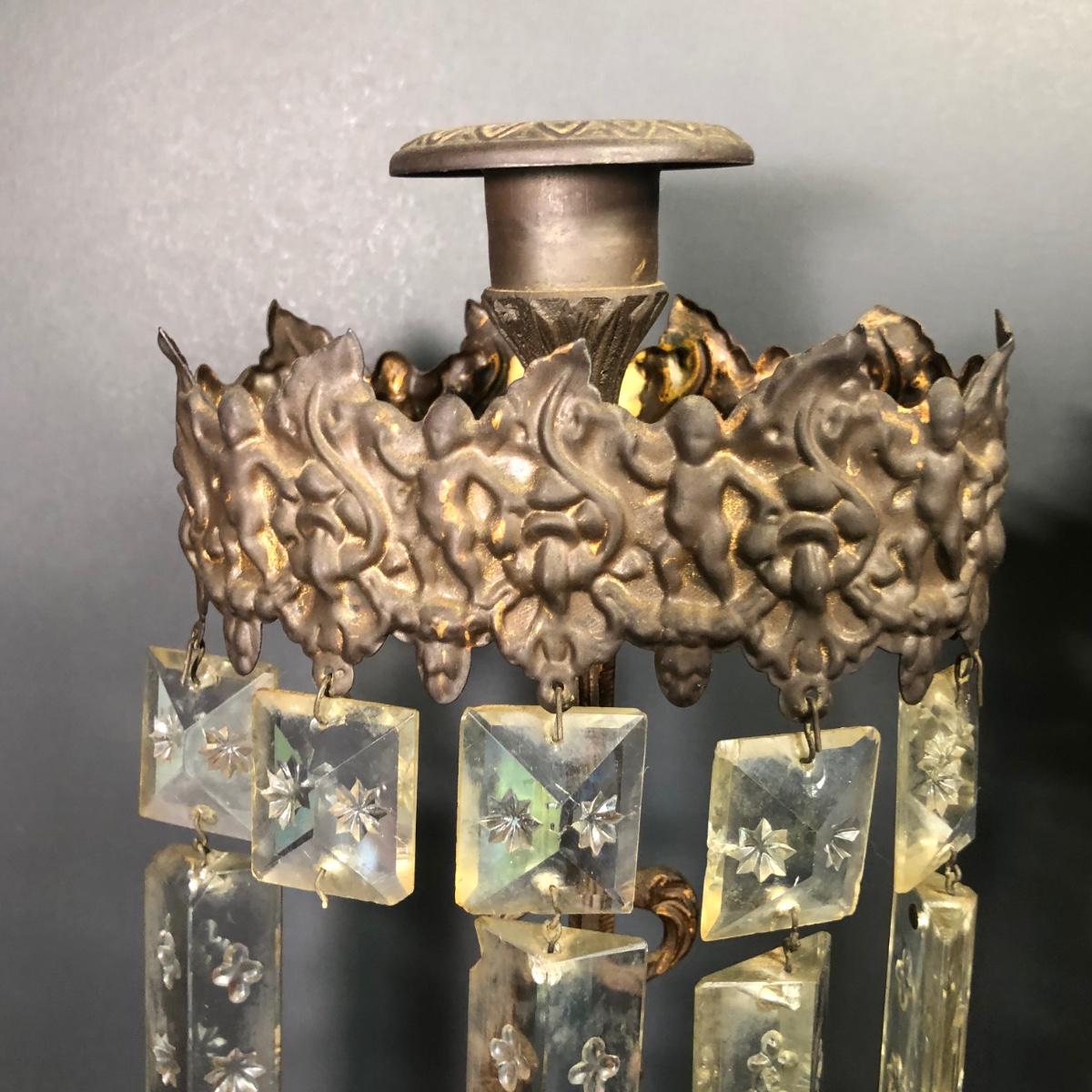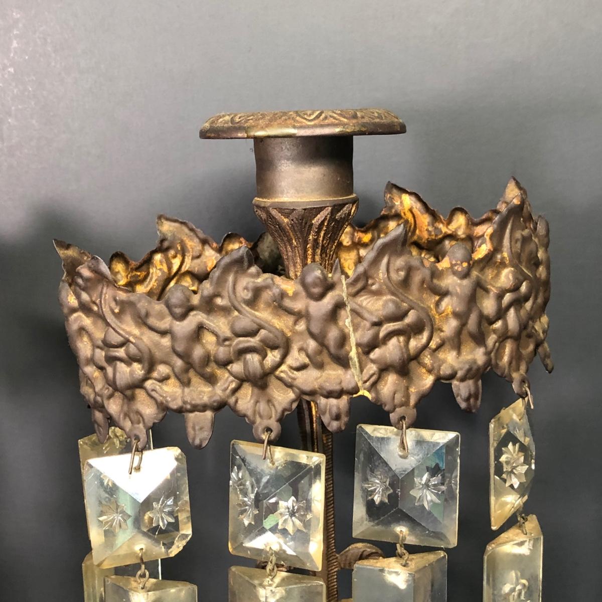 LOT 13M: Antique Candelabras w/ Crystals & Marble Bases