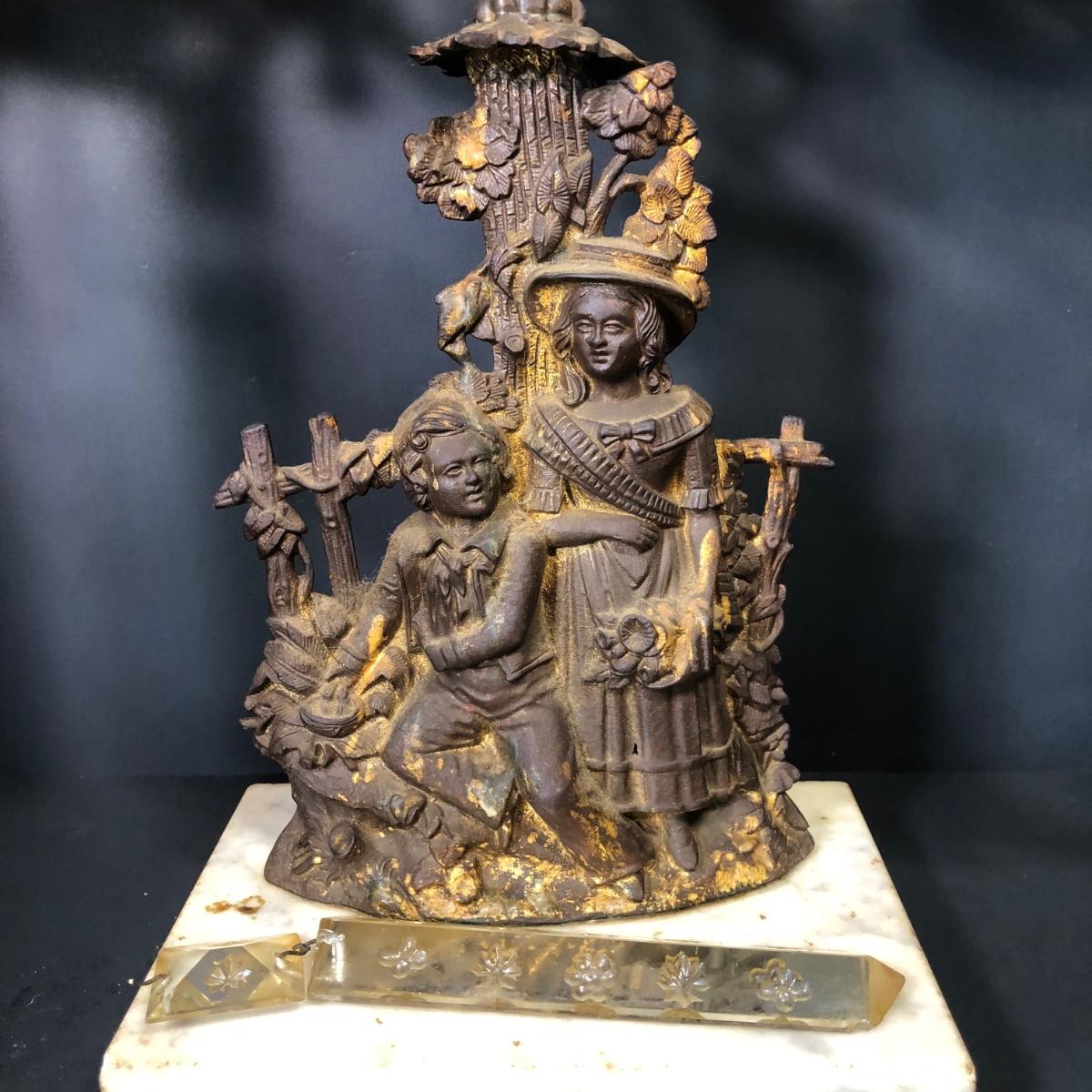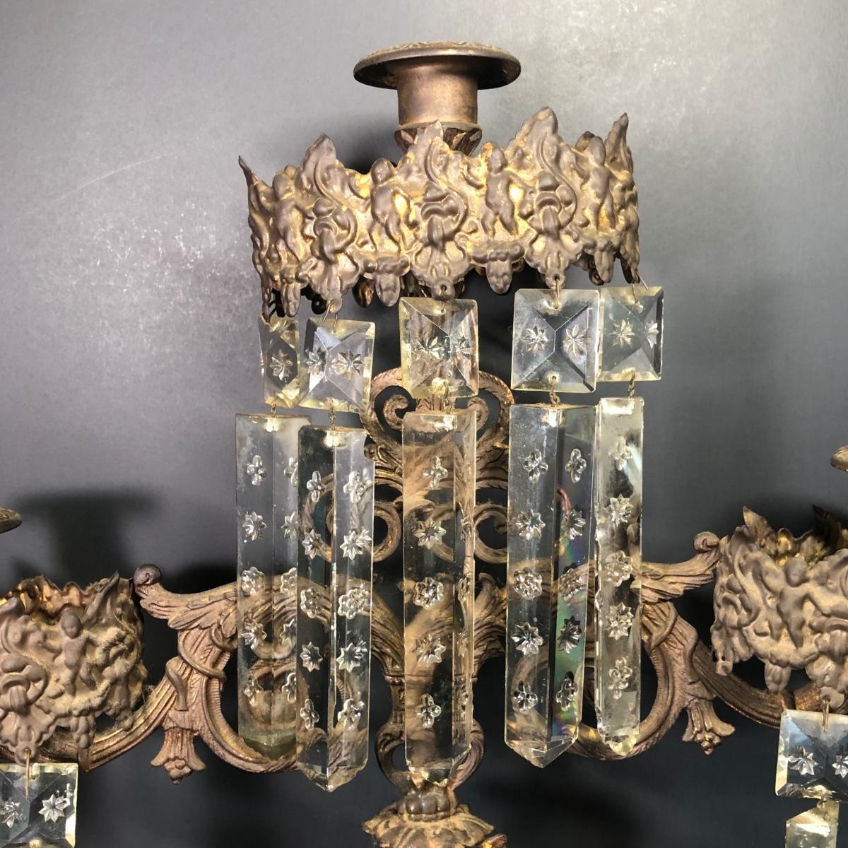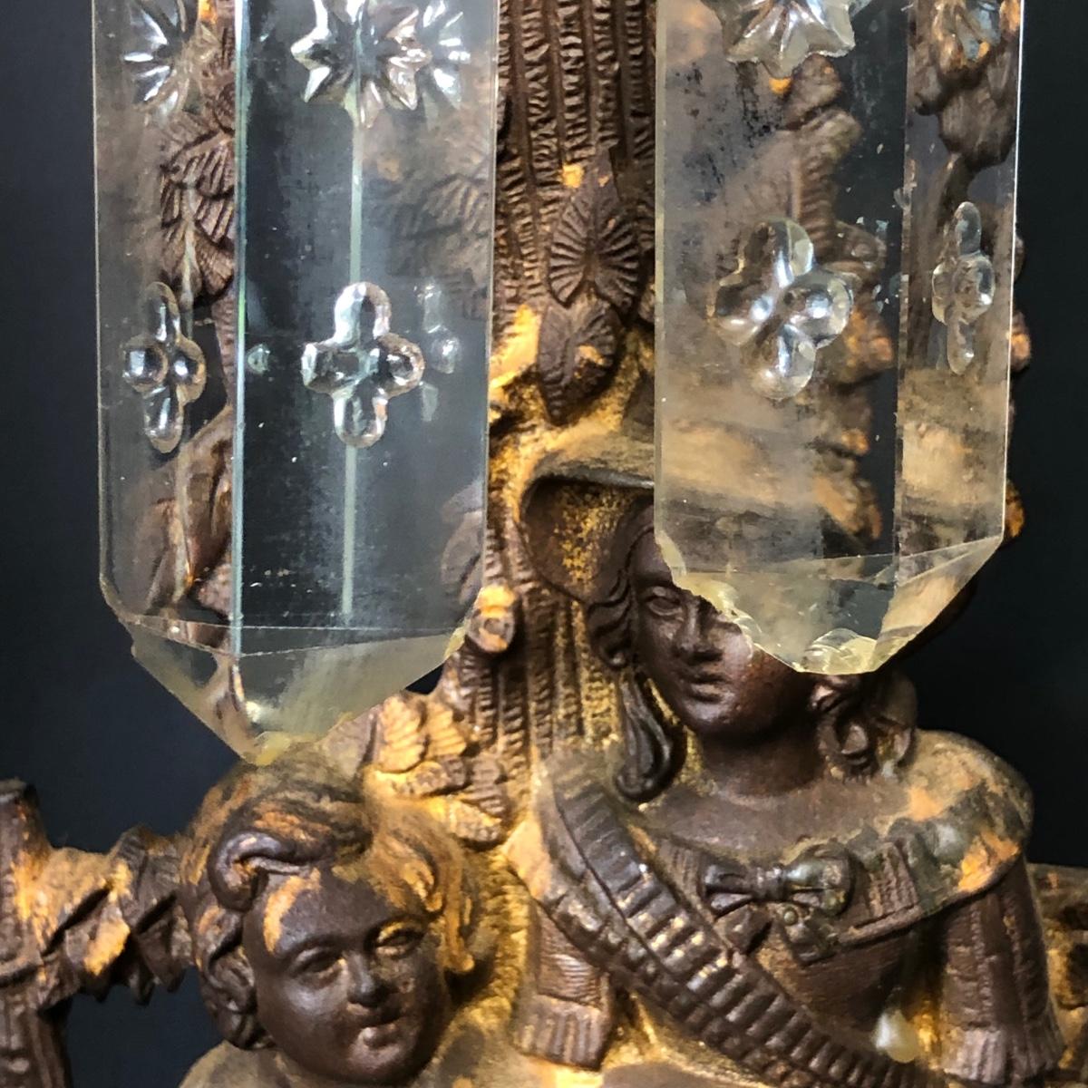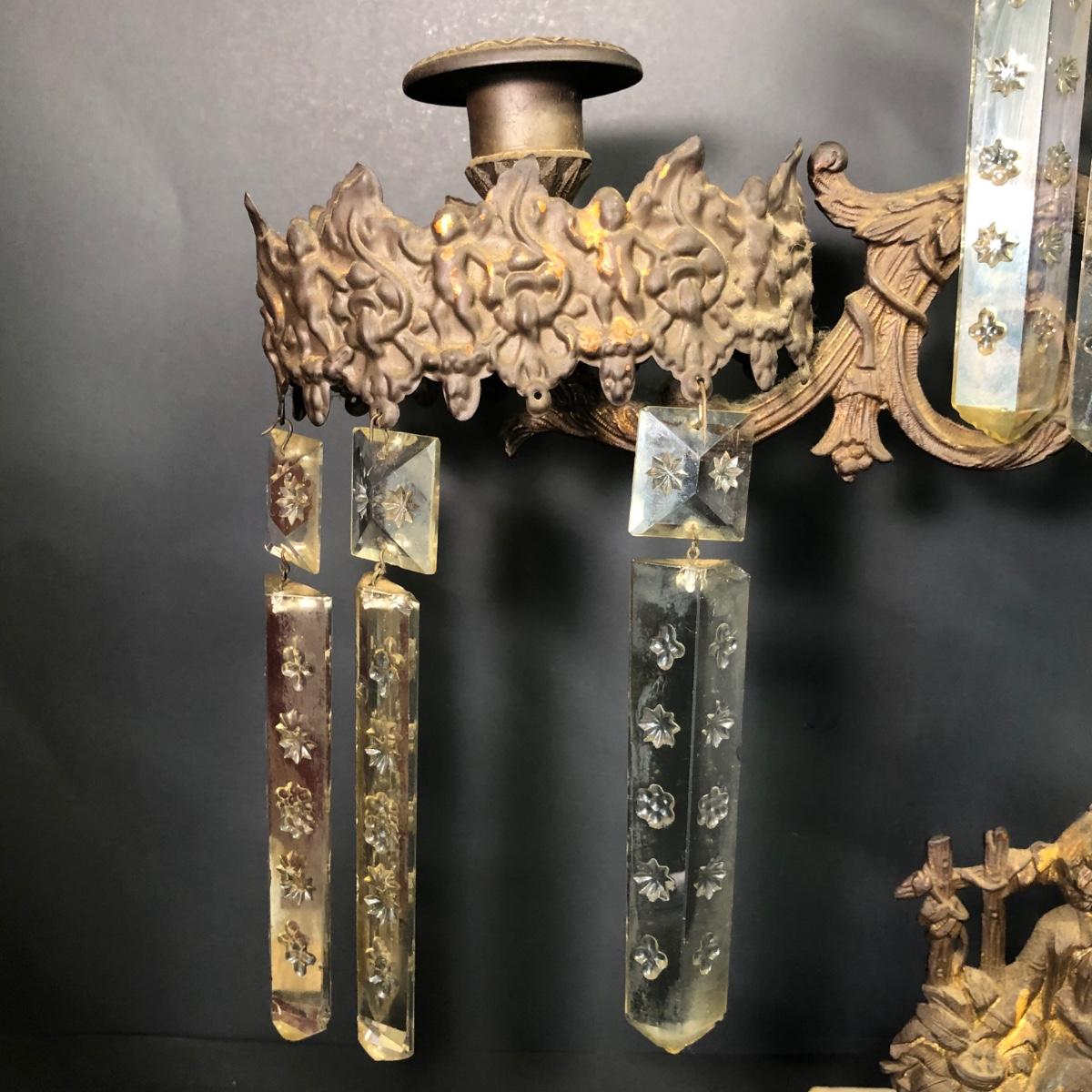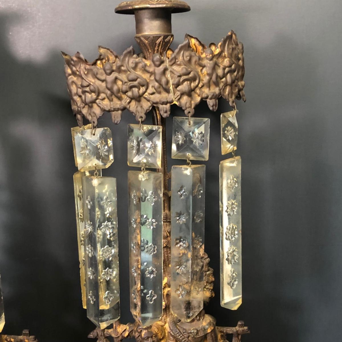 LOT 13M: Antique Candelabras w/ Crystals & Marble Bases