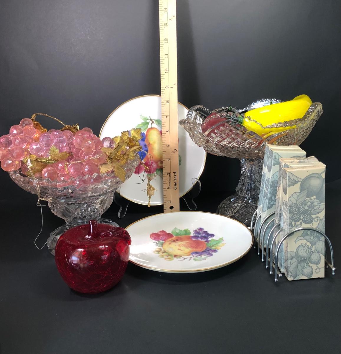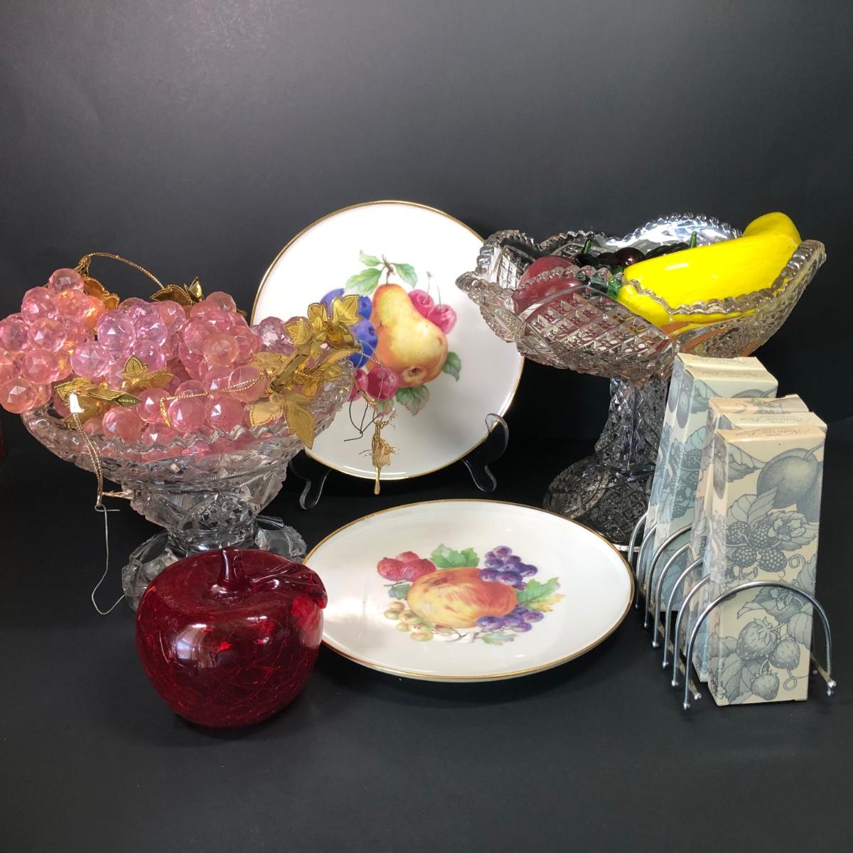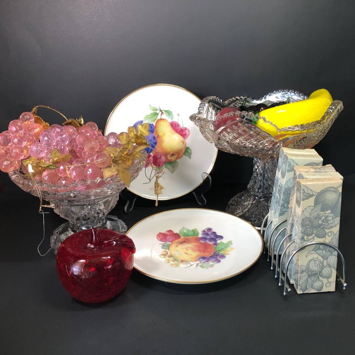 LOT 15M: Western Germany Fruit Plates, Crystal Grapes, Glass Fruit, Avon Fruit Spoons & More