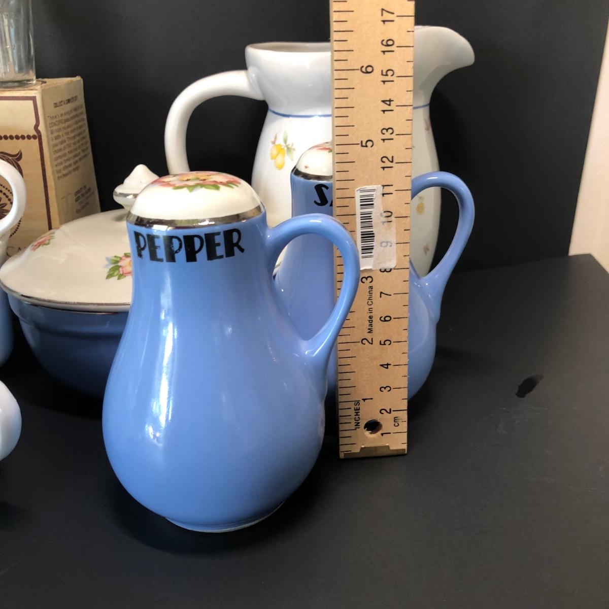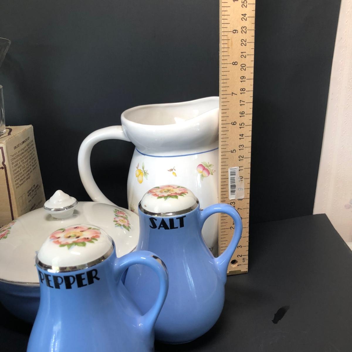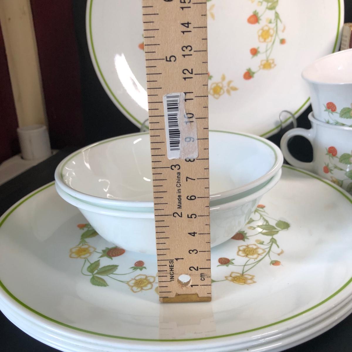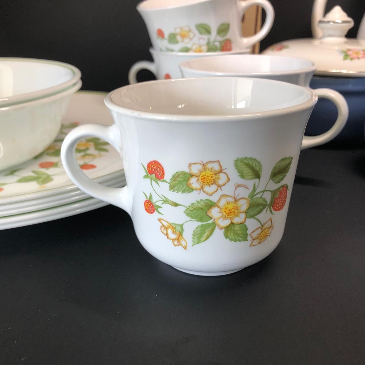 LOT 19M: Corelle Strawberry Sundae Plates, Bowls & Tea Cups, American Concord Tumblr NIB, Hall's Sugar Bowls, S&P & More