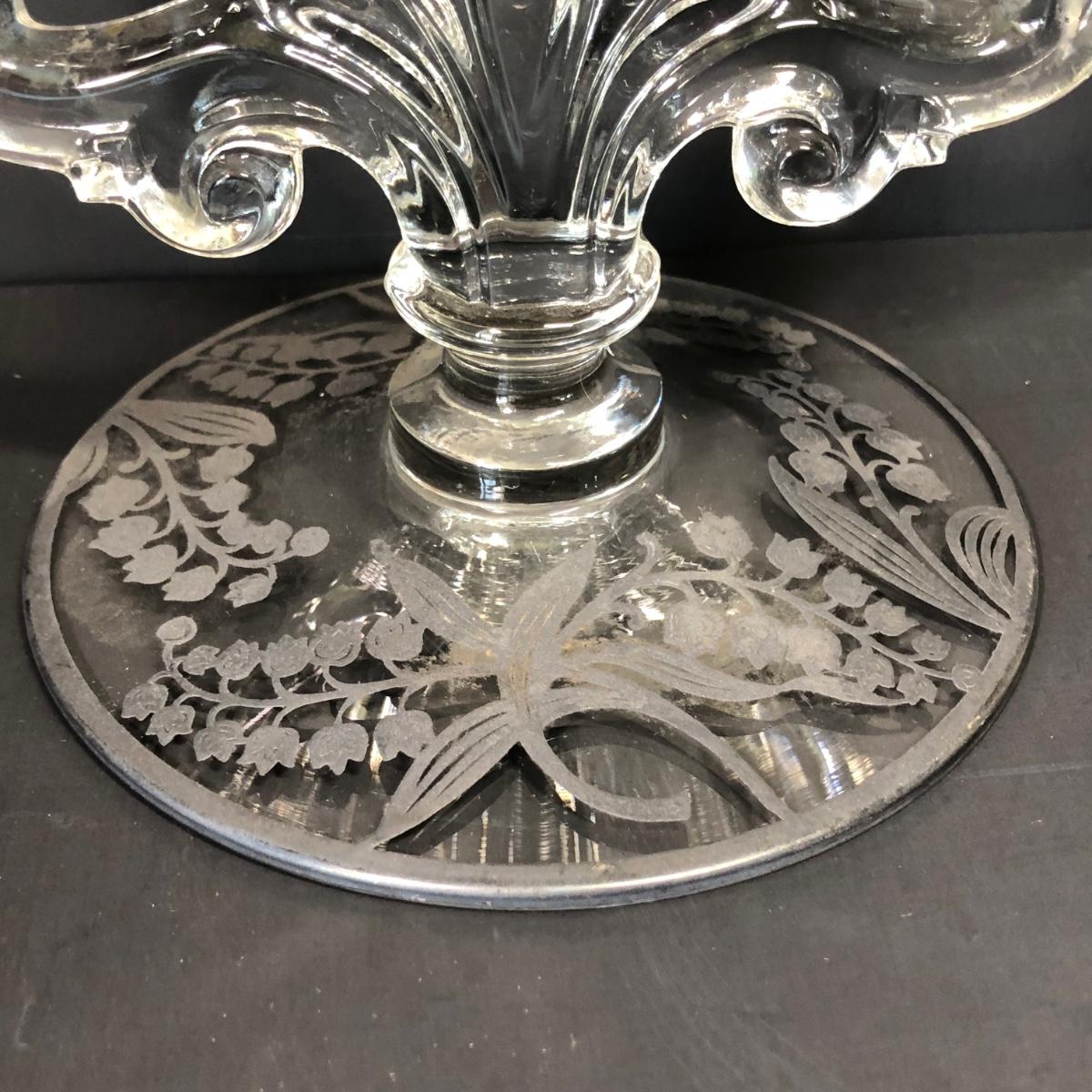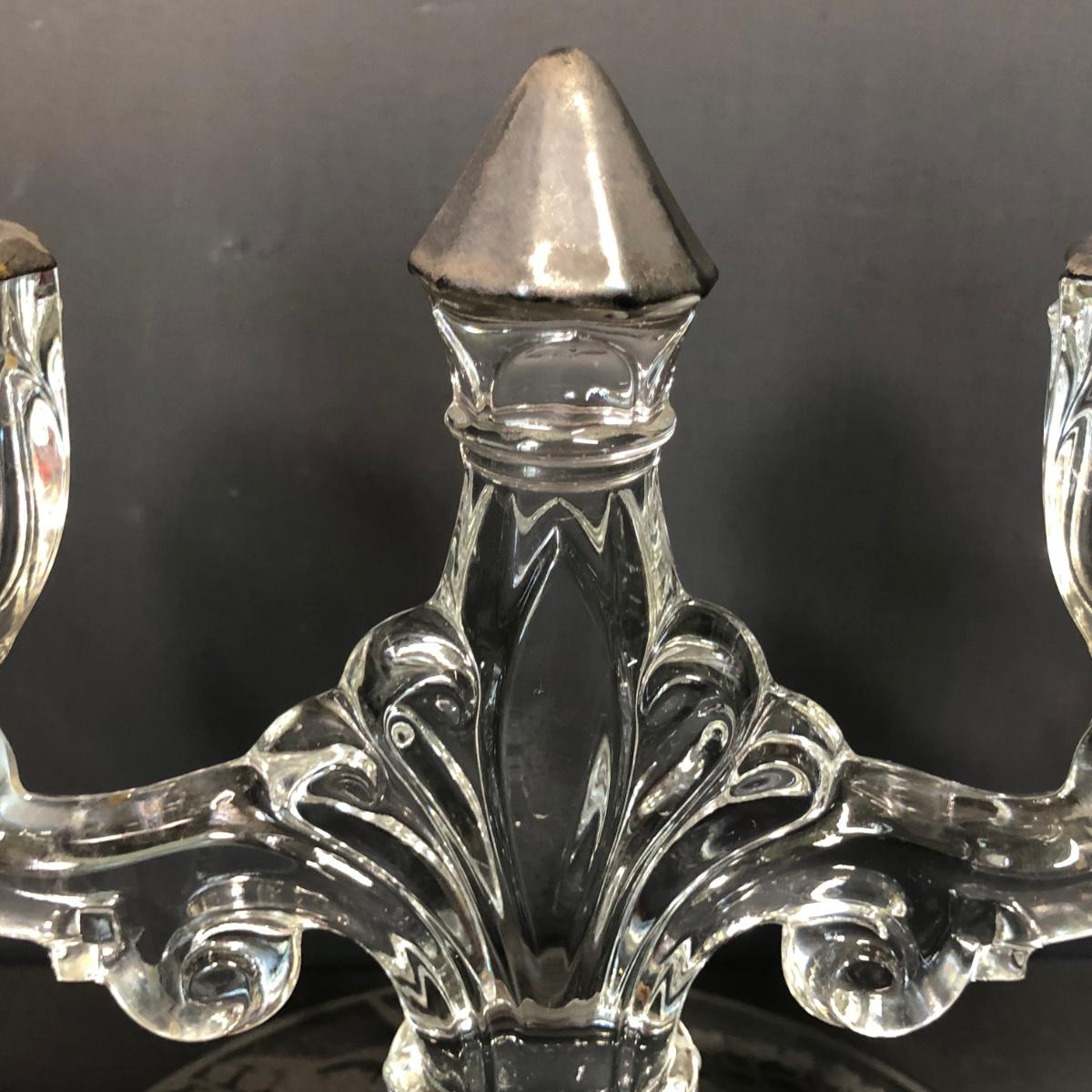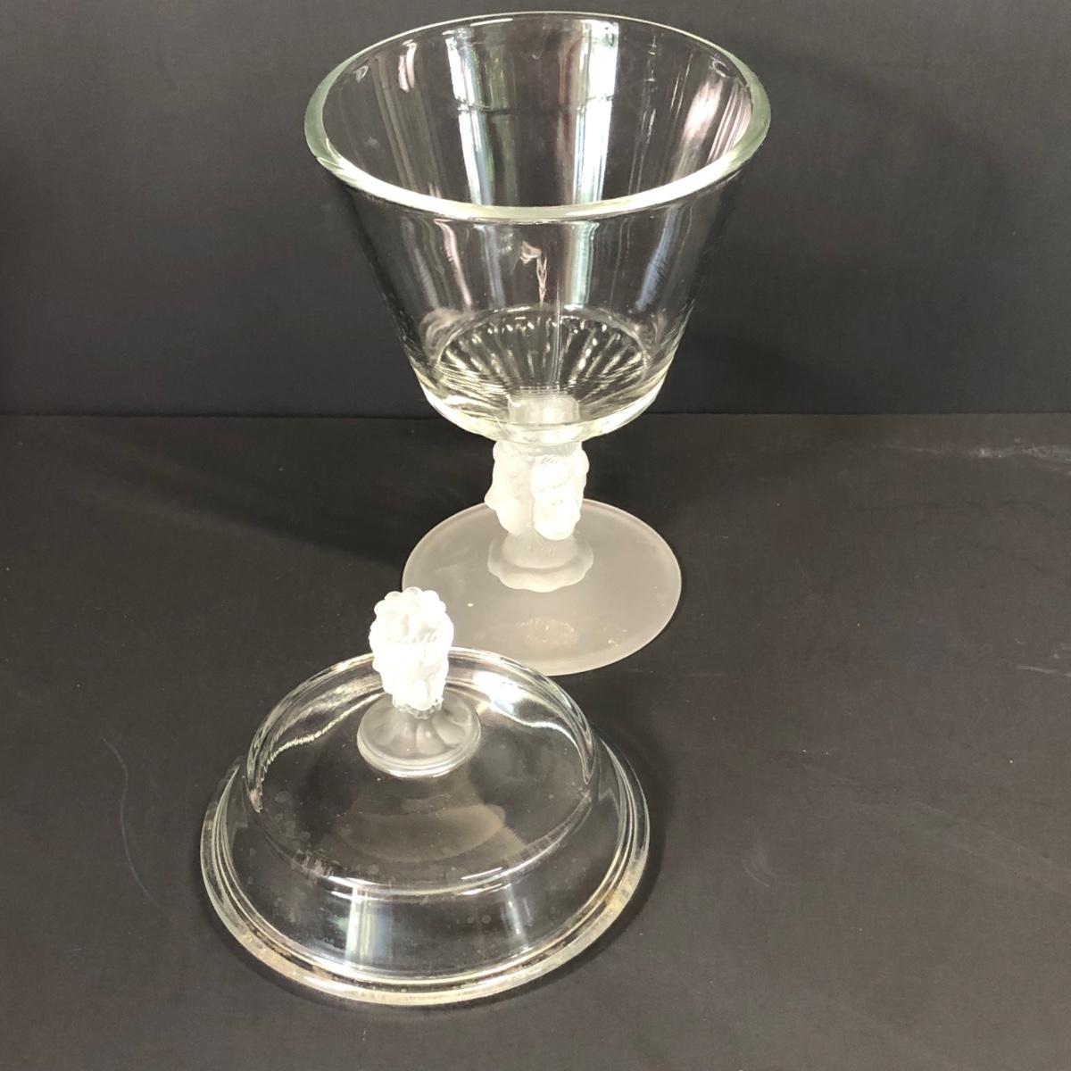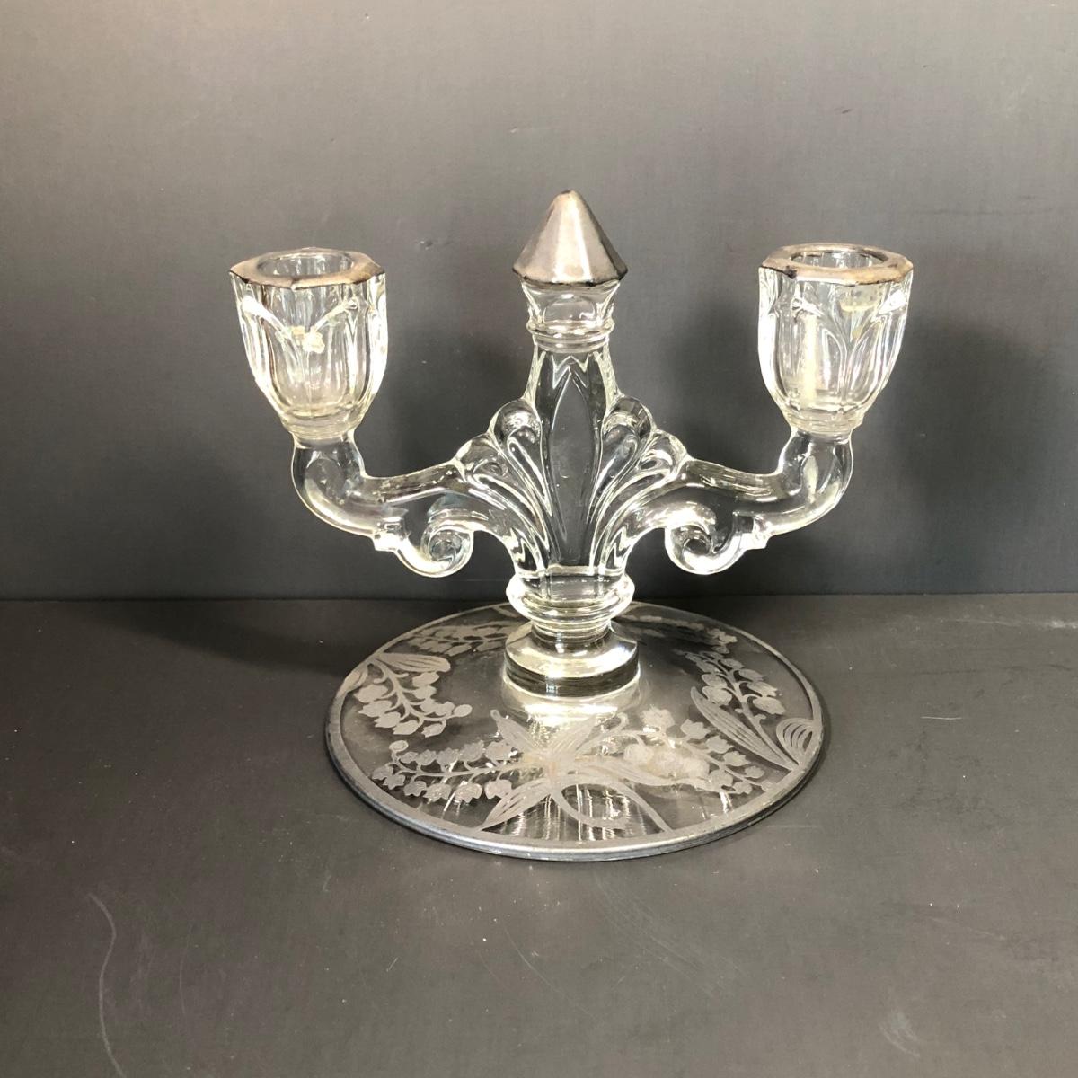 LOT 21M: Unique Glass Collection - Sterling Accented Candle Holder, Lion Head Candy Dish, Duncan 3 Faces Lidded Dish & More