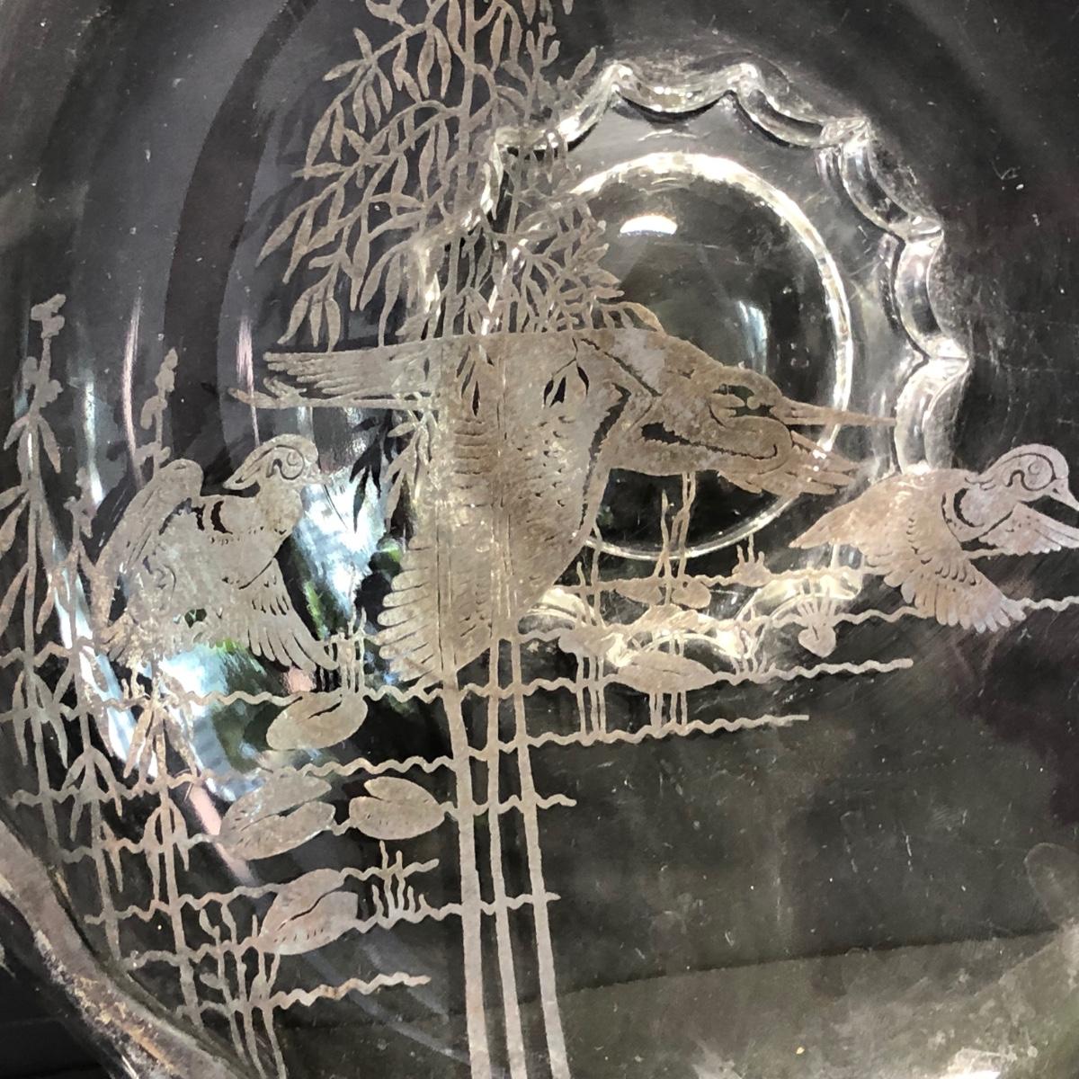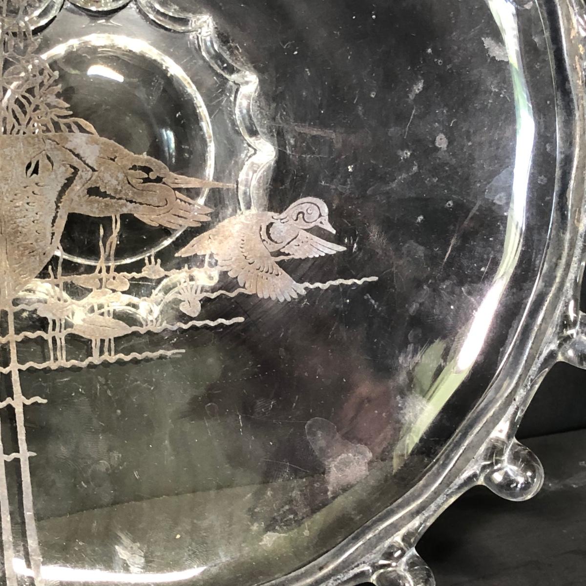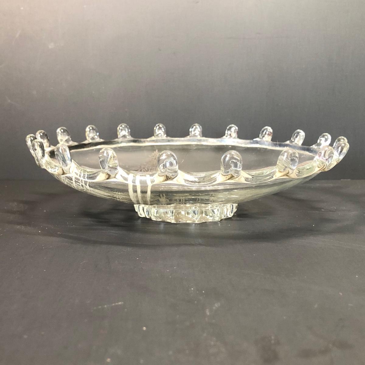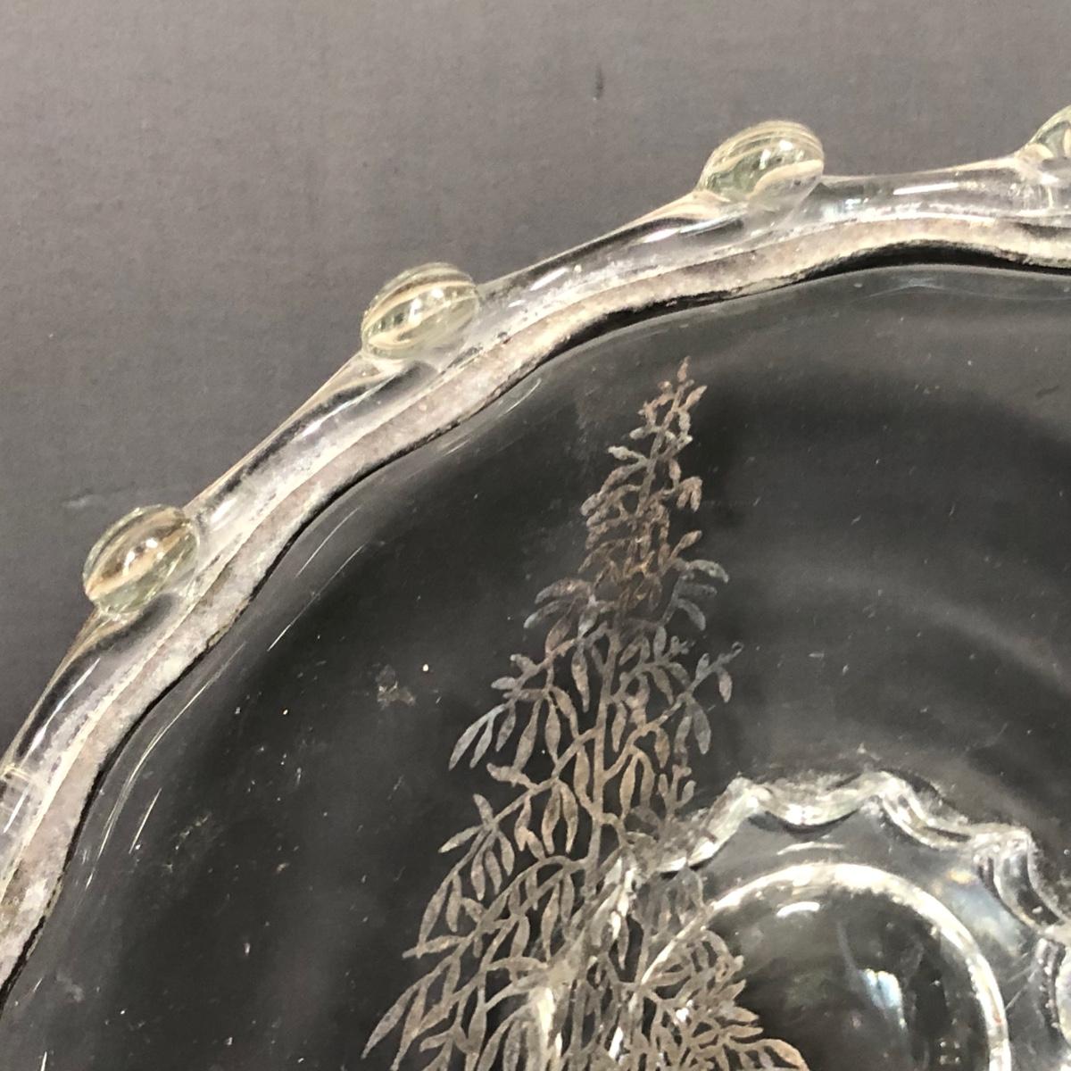 LOT 21M: Unique Glass Collection - Sterling Accented Candle Holder, Lion Head Candy Dish, Duncan 3 Faces Lidded Dish & More