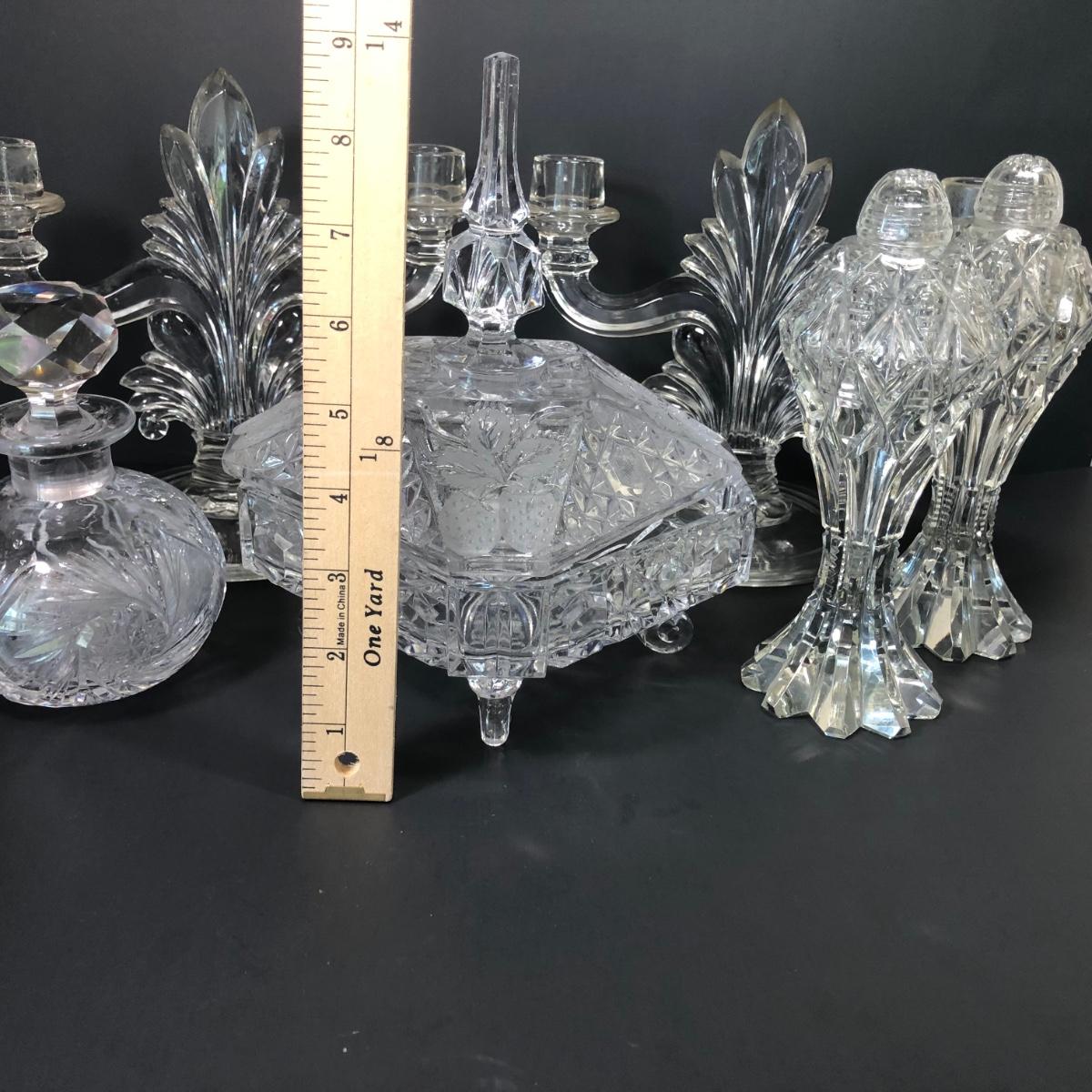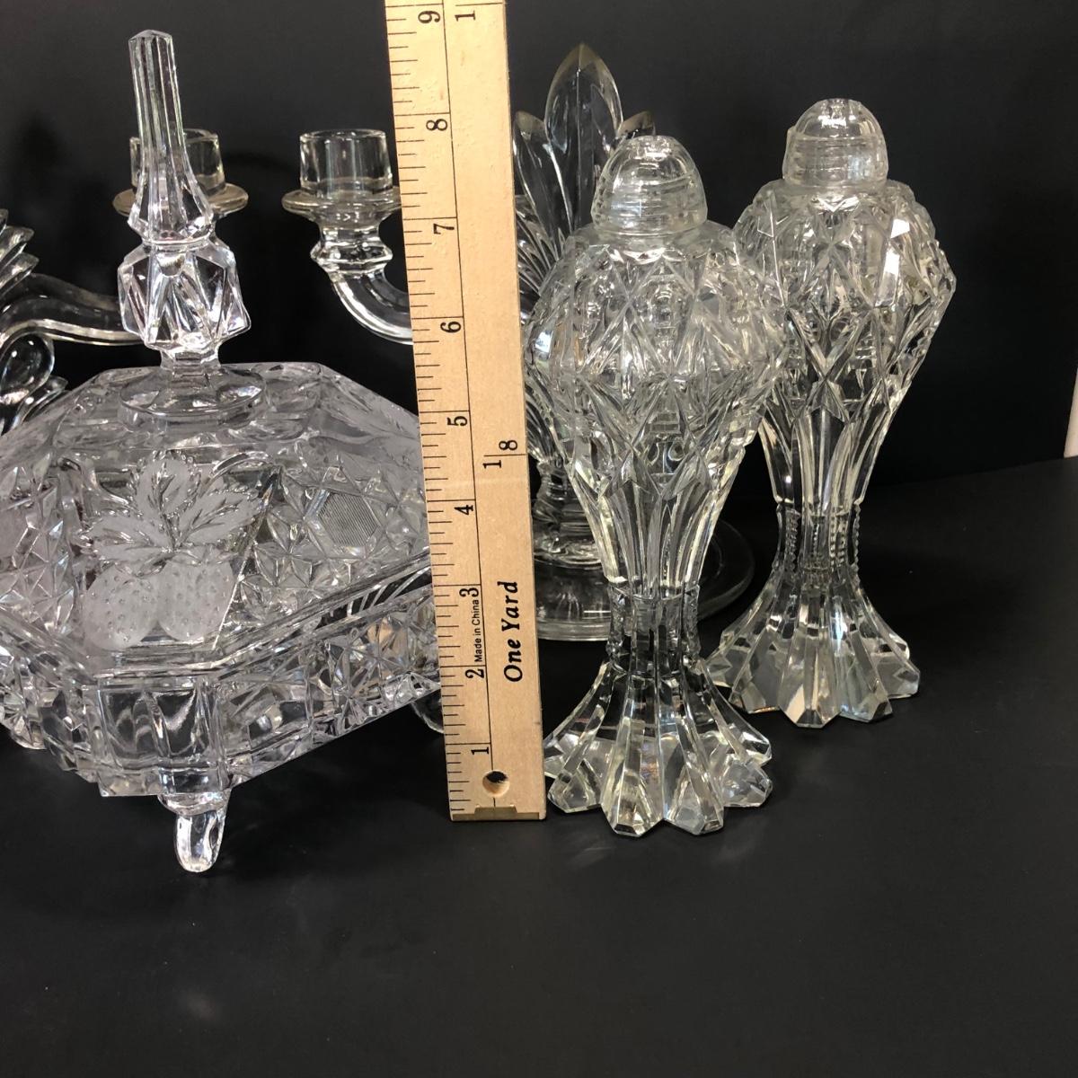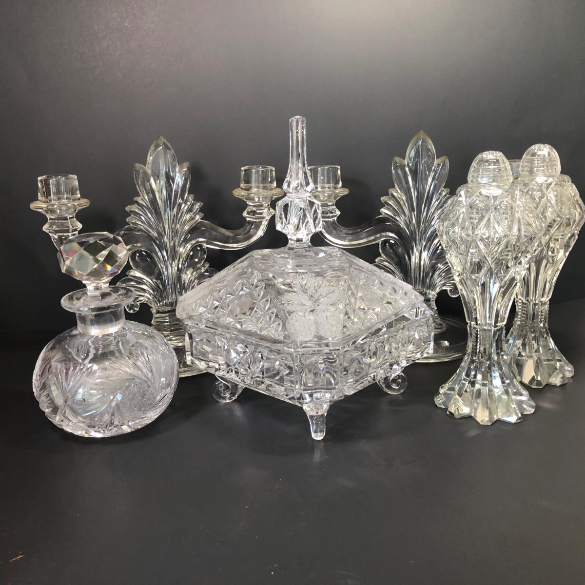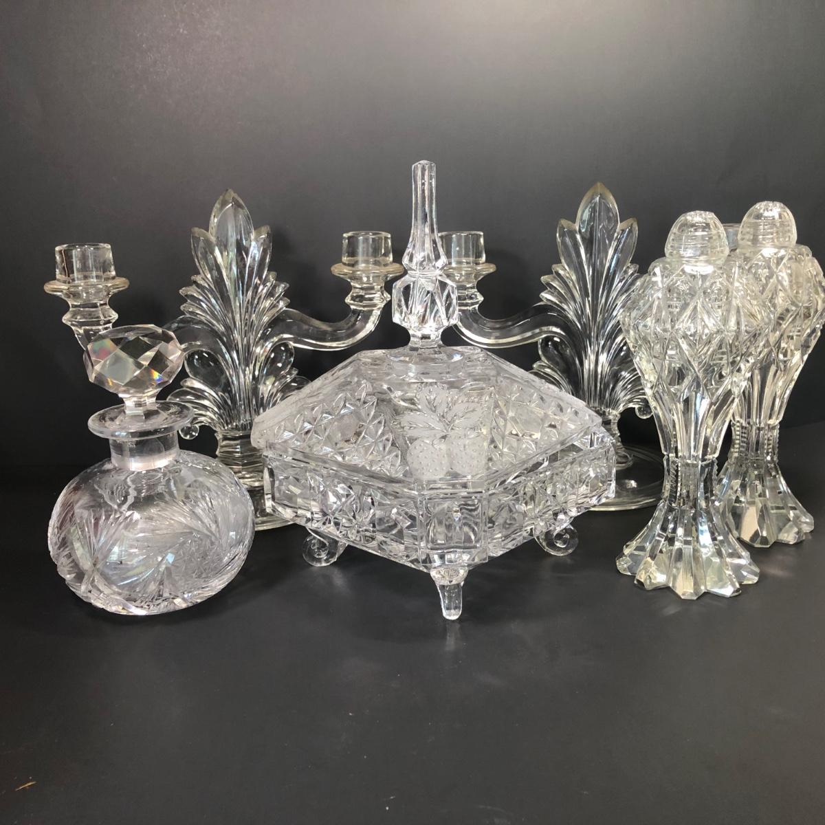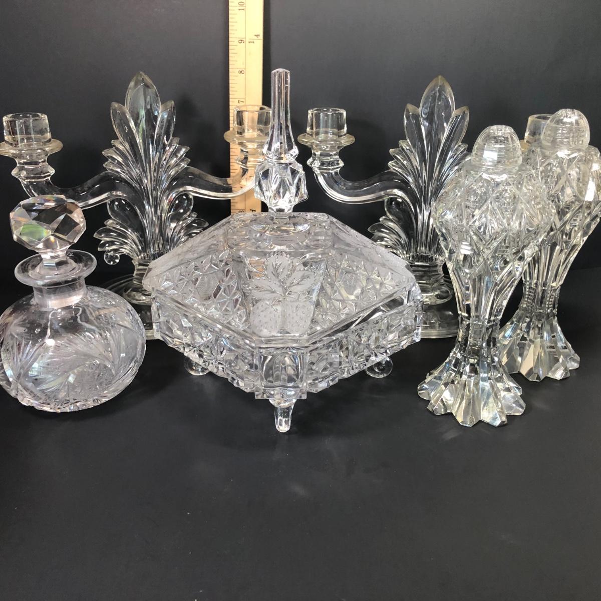LOT 22M: Elegant Crystal Collection - Salt & Pepper, Lidded Candy Dish, Decanter & More
