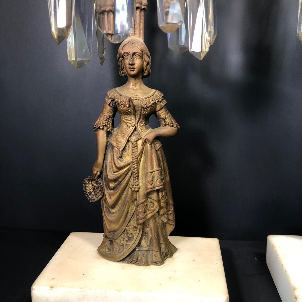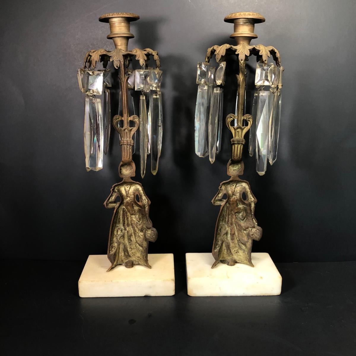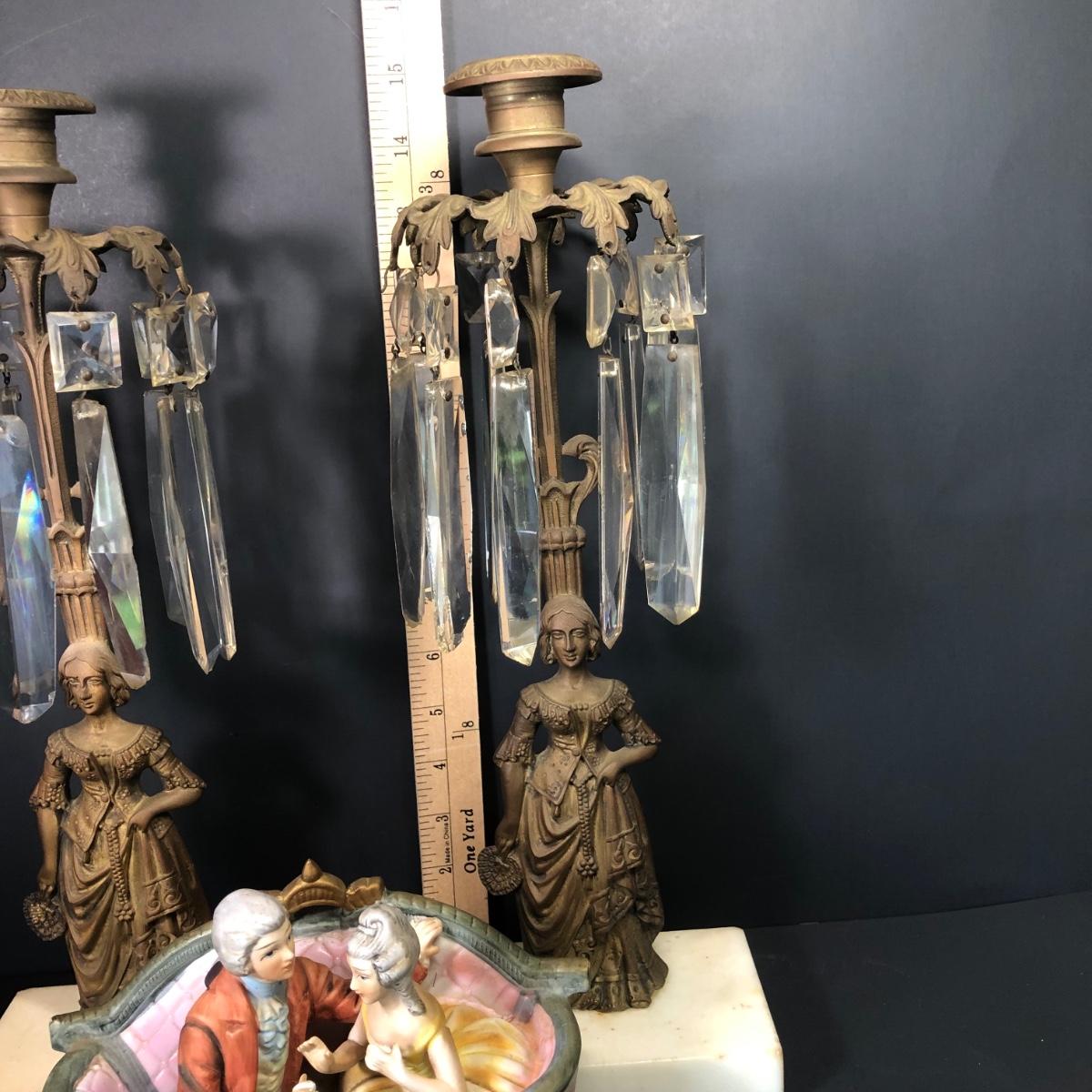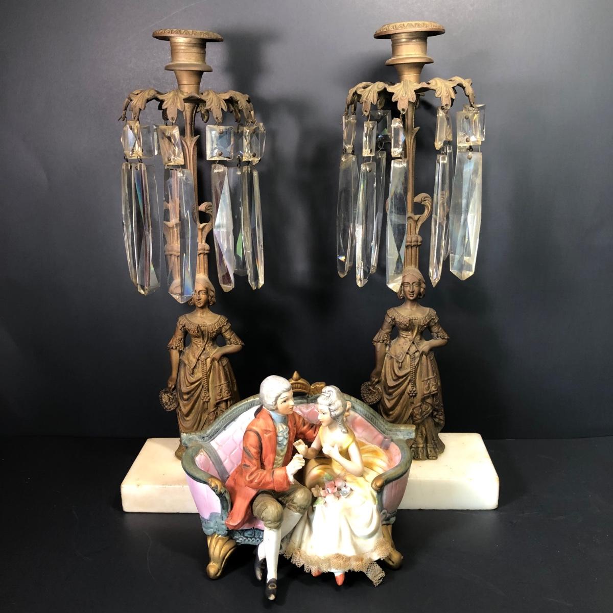 LOT 23M: Antique Crystal Accent Candle Holders w/ Porcelain Couple Figure