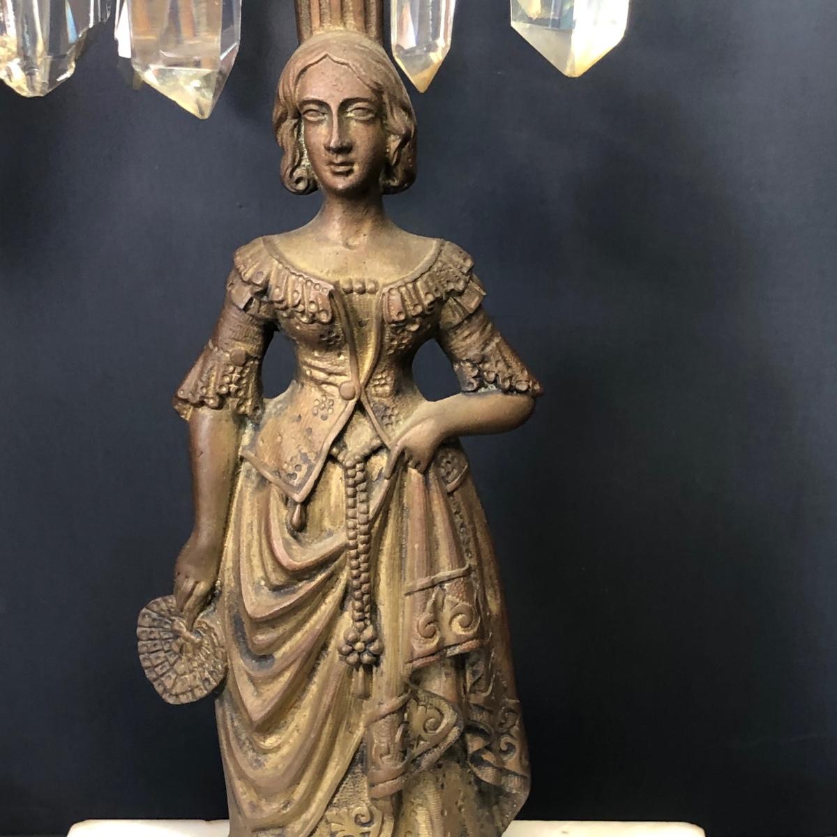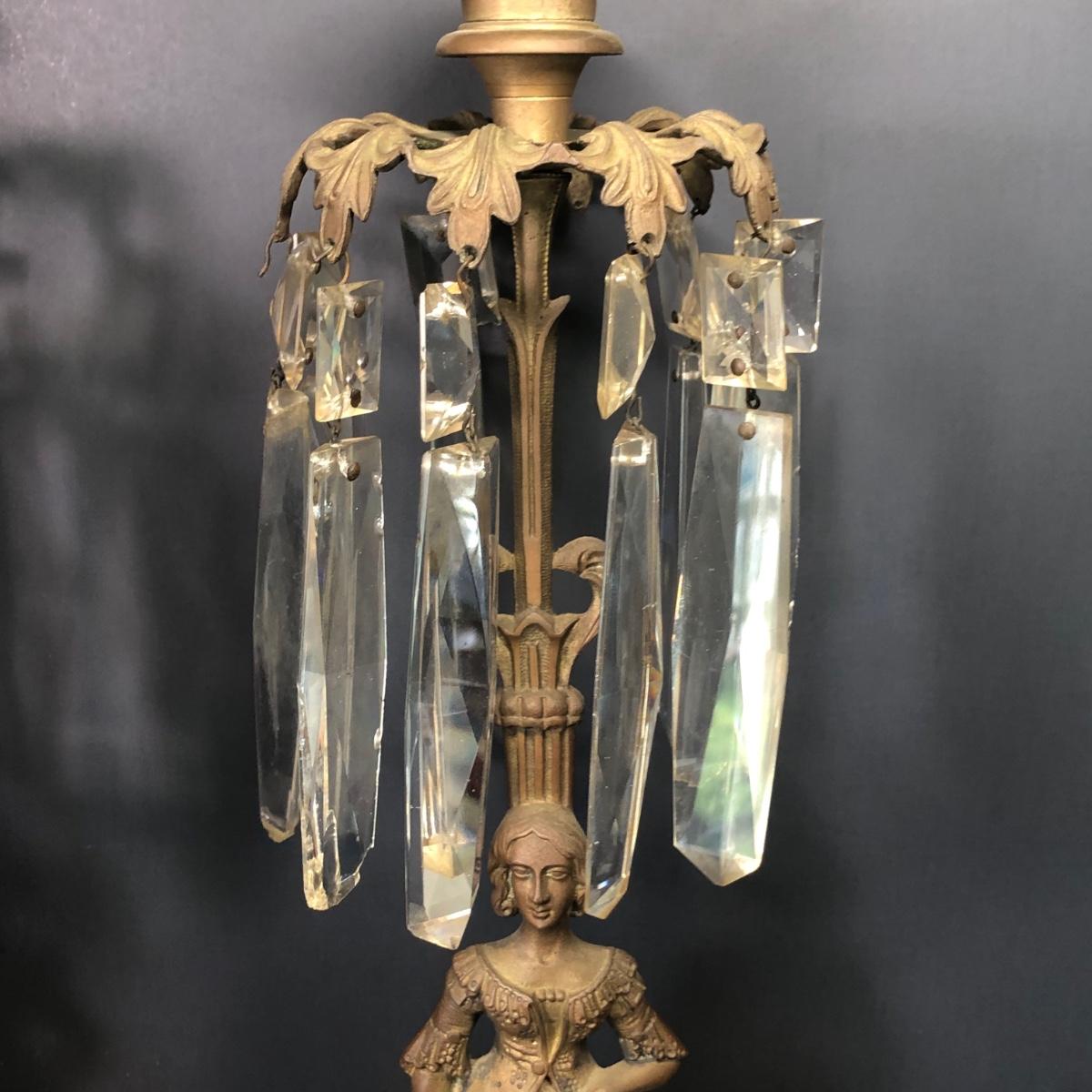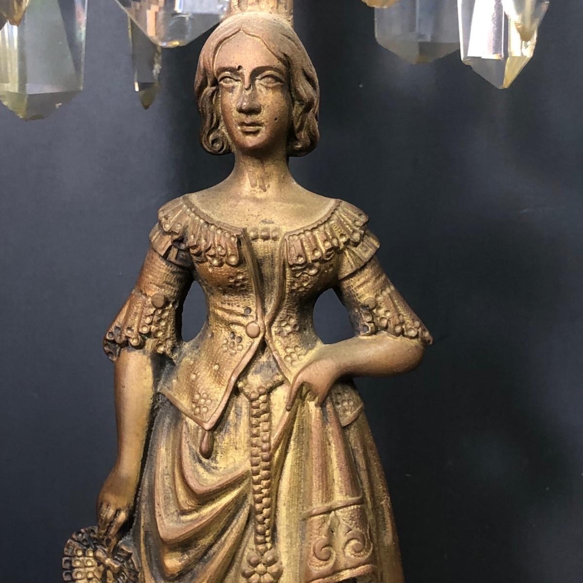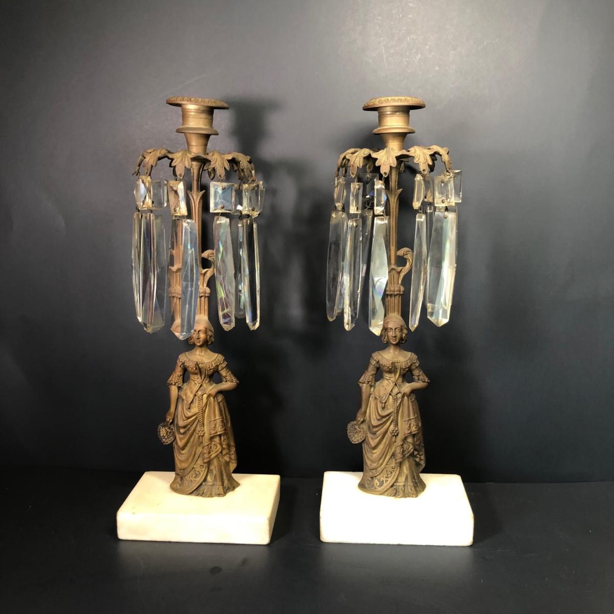LOT 23M: Antique Crystal Accent Candle Holders w/ Porcelain Couple Figure
