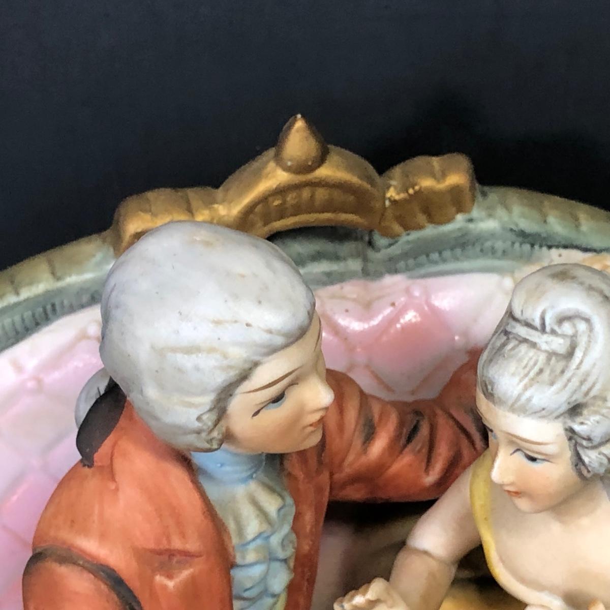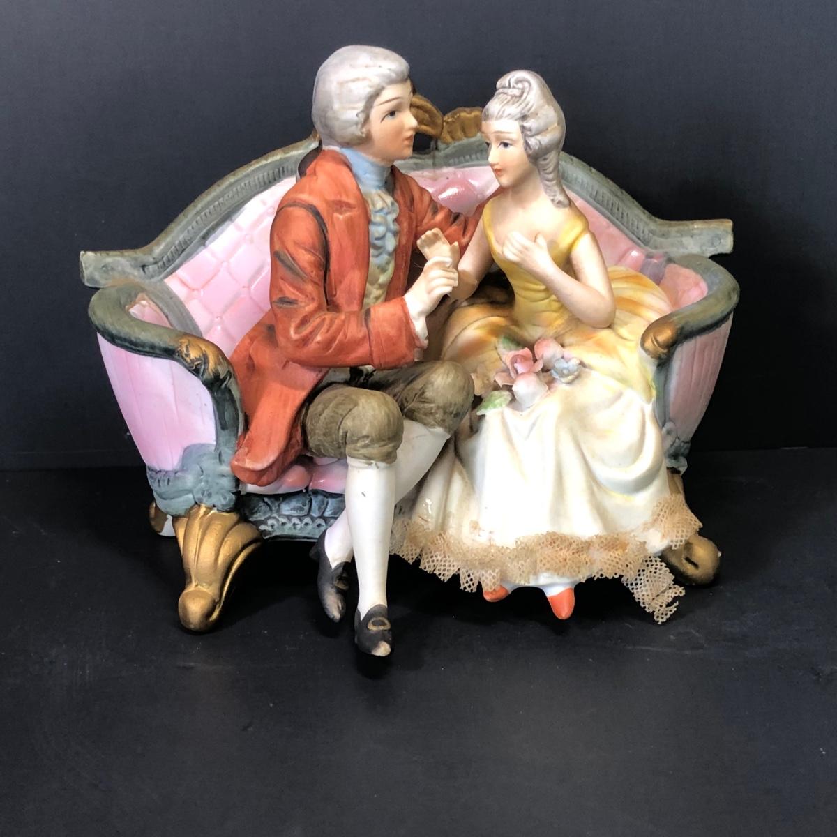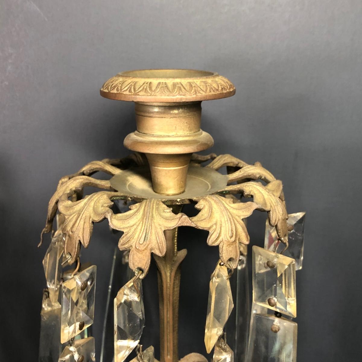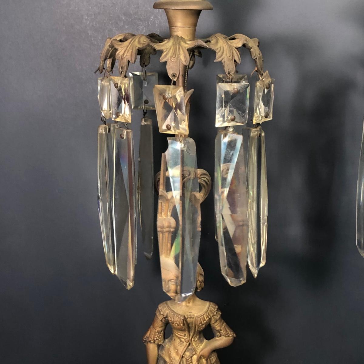 LOT 23M: Antique Crystal Accent Candle Holders w/ Porcelain Couple Figure