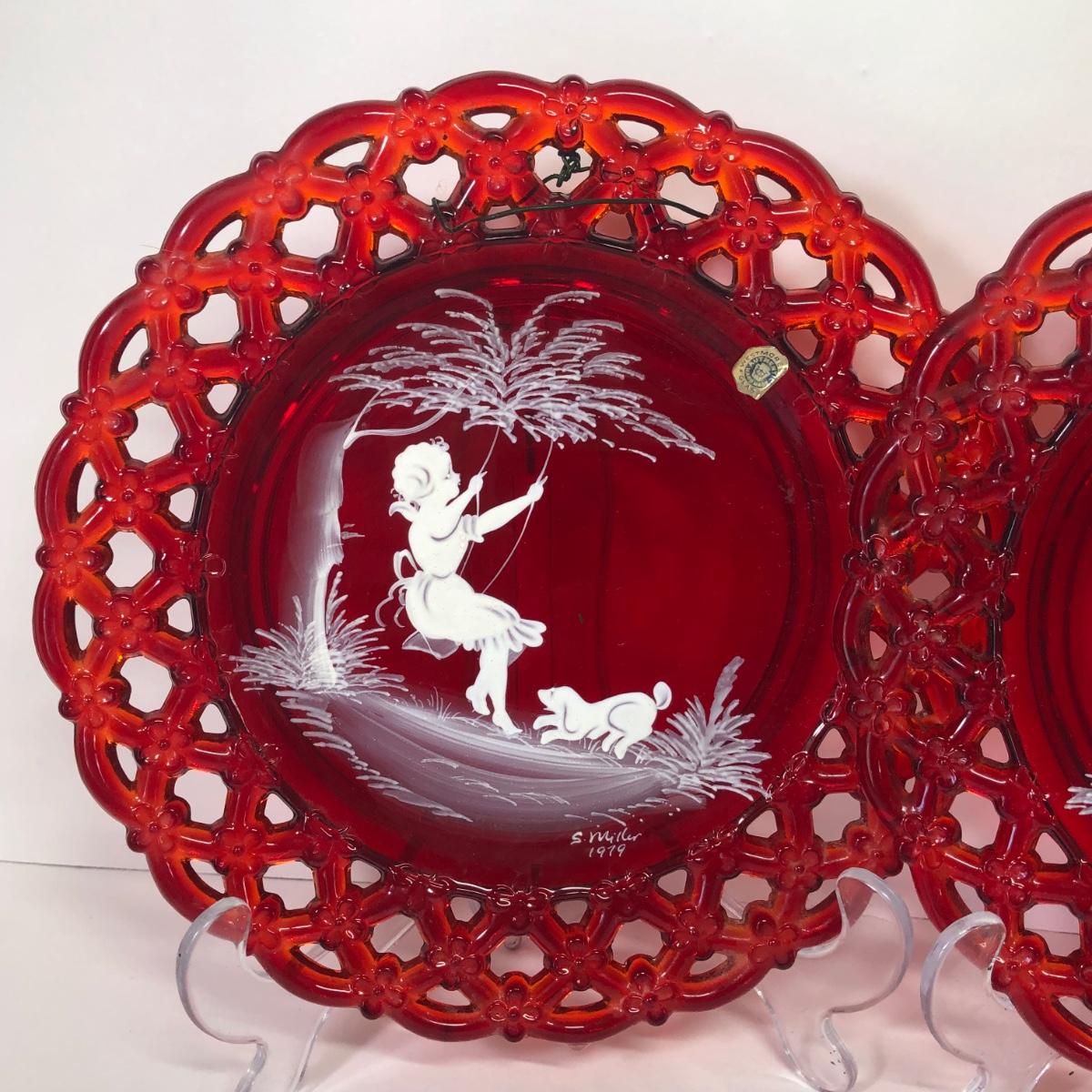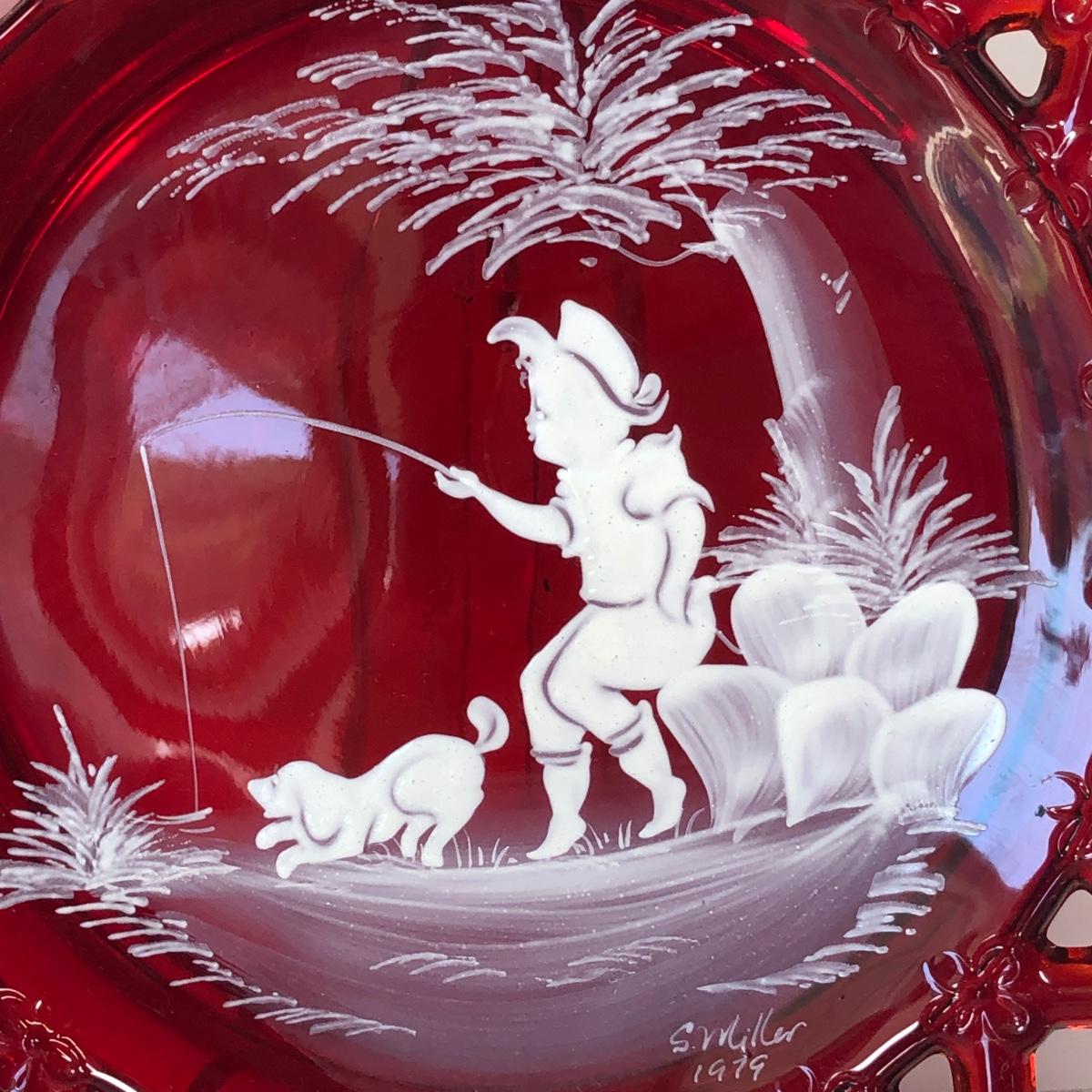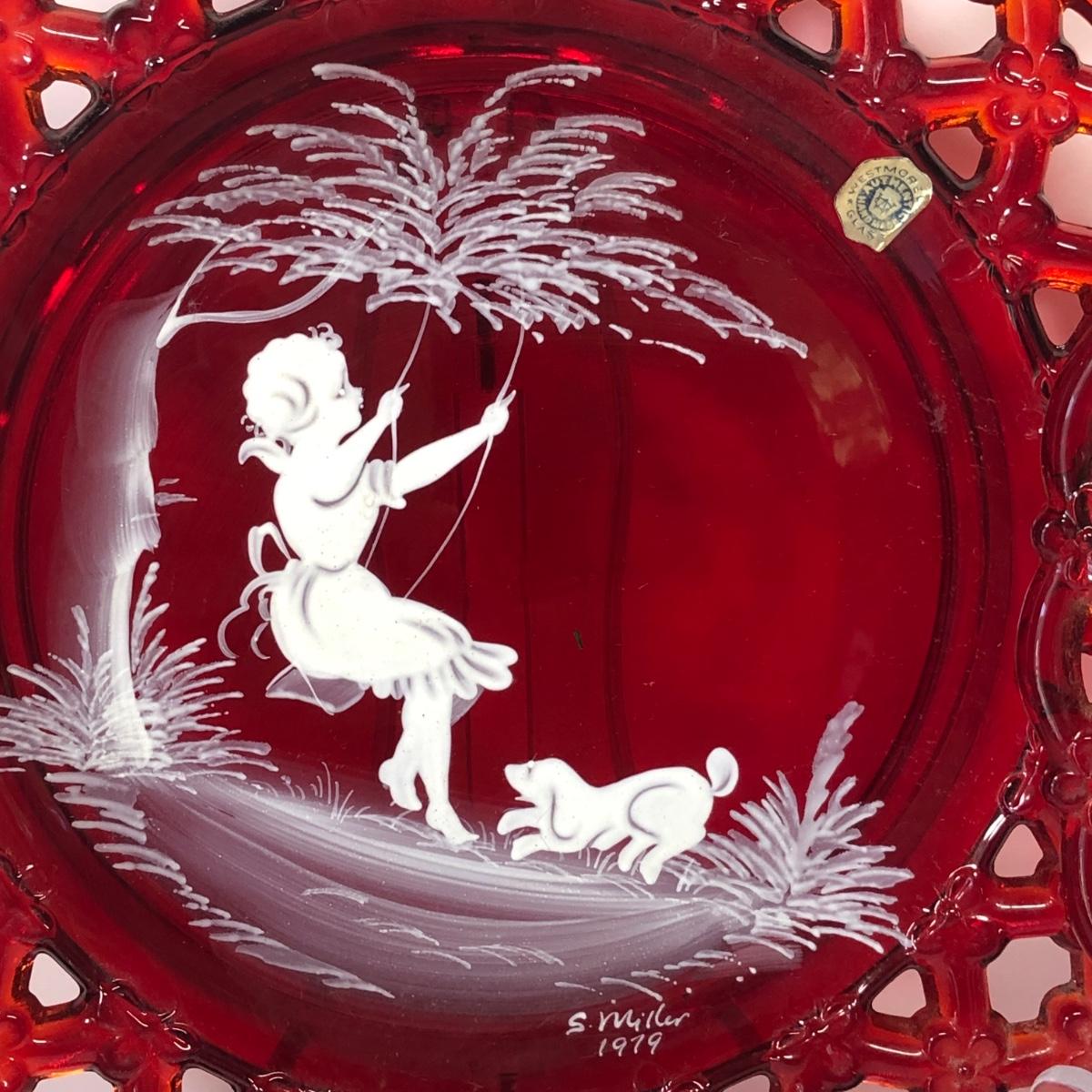 LOT 30M: Westmoreland Glass 1979 S. Miller Signed Bell & Plates w/ Trinket Dishes