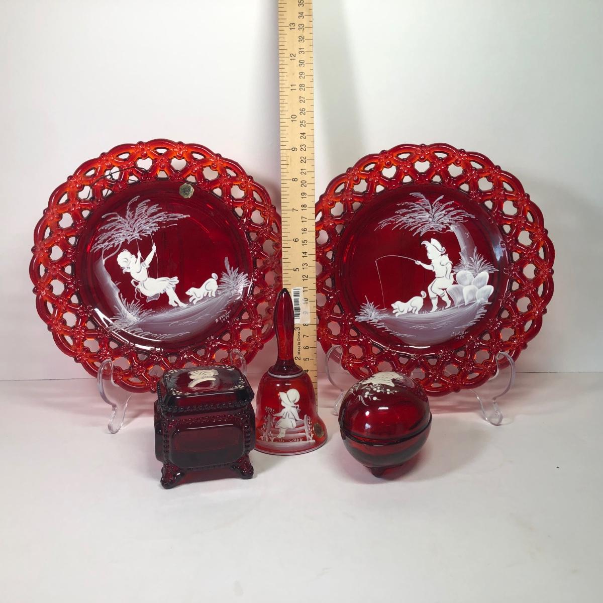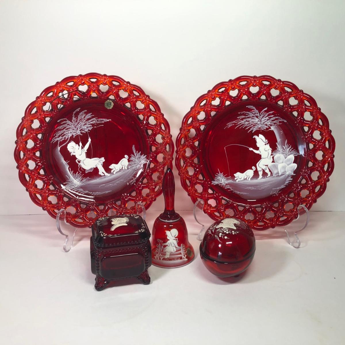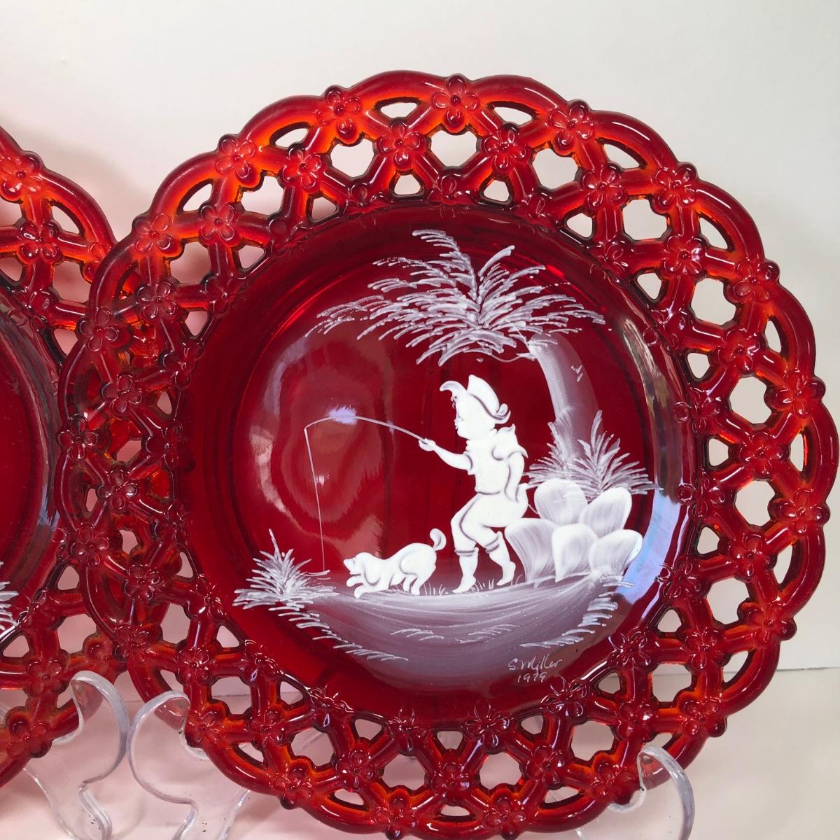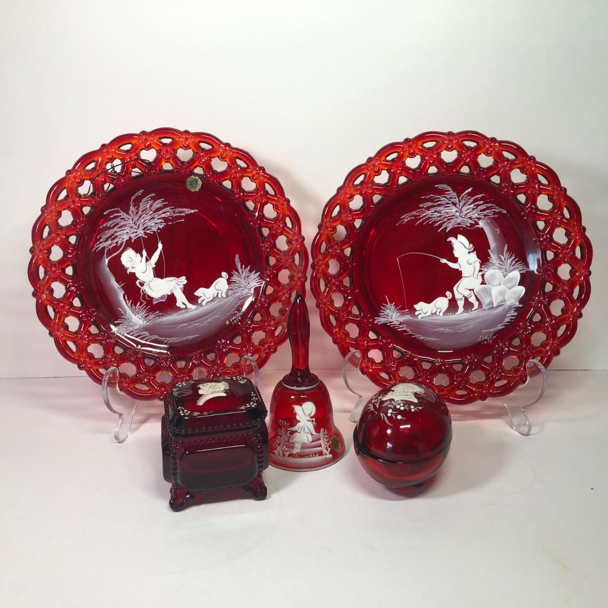 LOT 30M: Westmoreland Glass 1979 S. Miller Signed Bell & Plates w/ Trinket Dishes