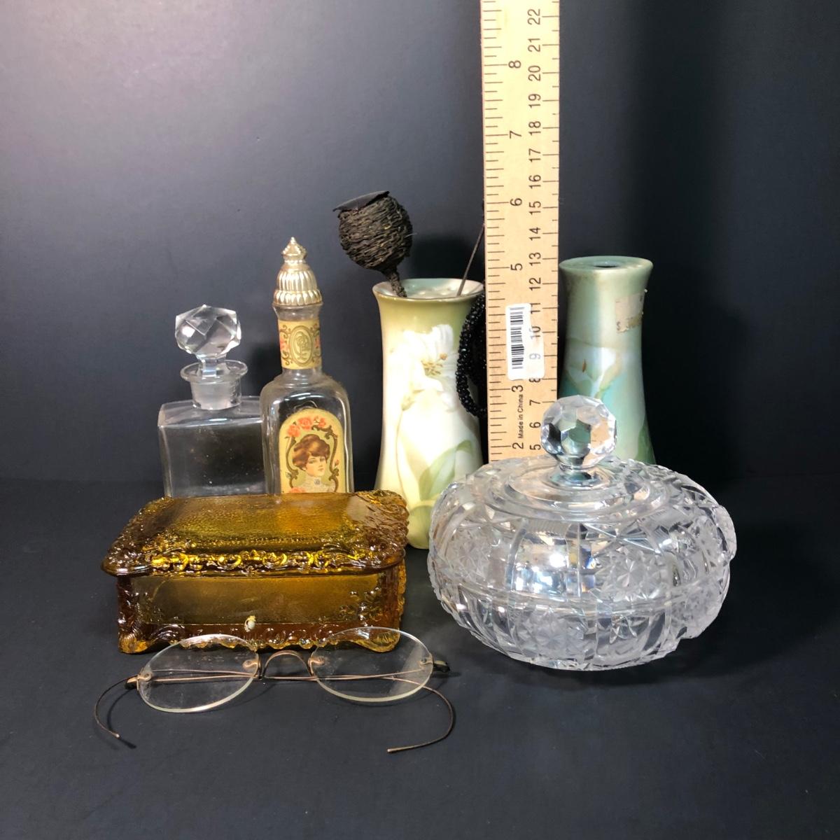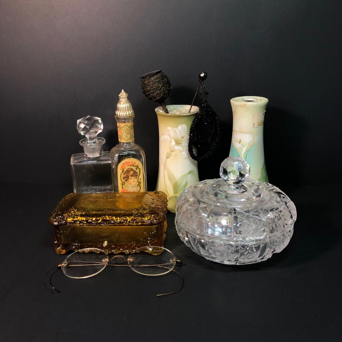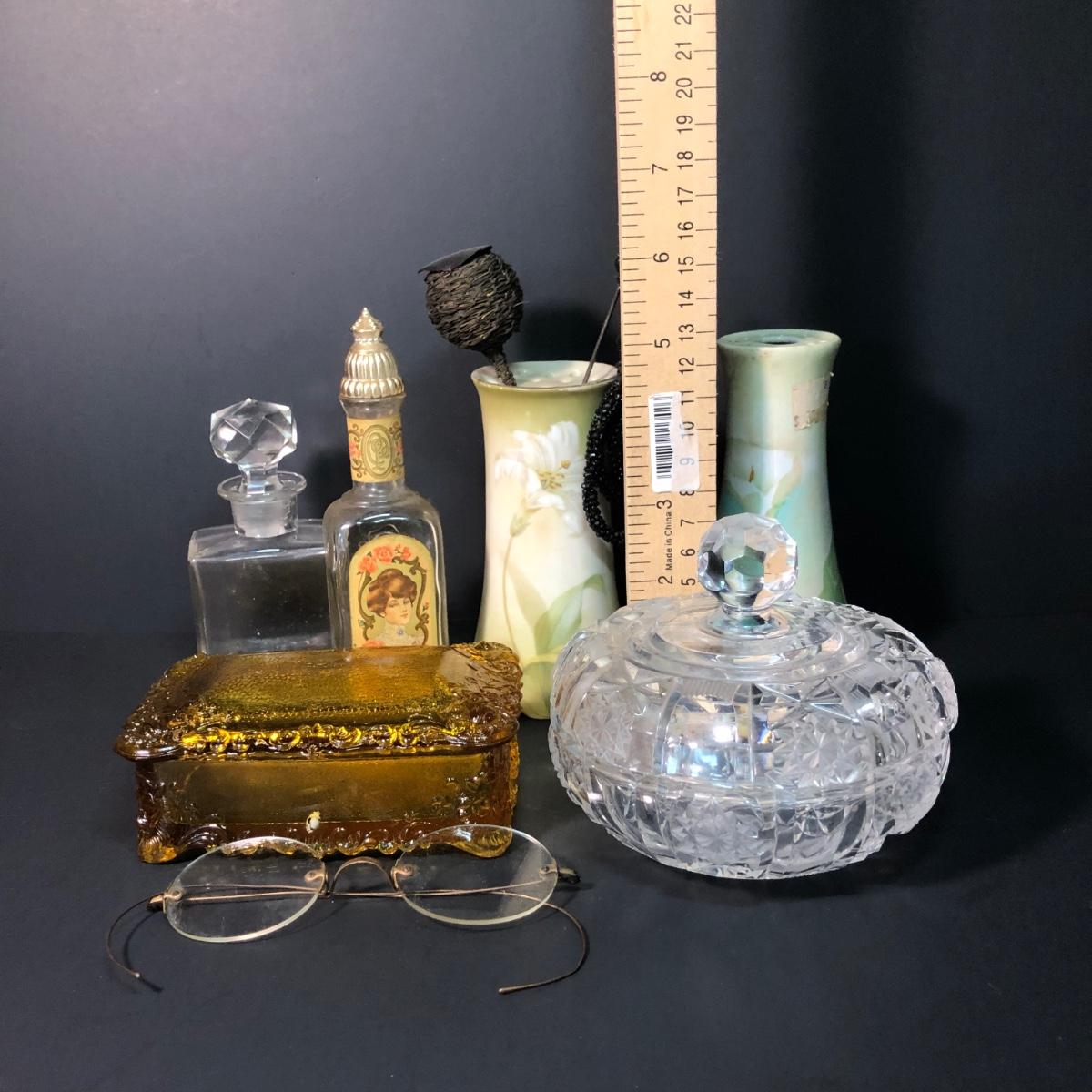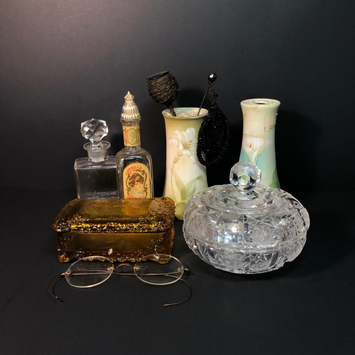 LOT 35M: Vintage Vanity Essentials - RS Germany China, Glass Trinket Dishes, Perfume Bottles & Glasses