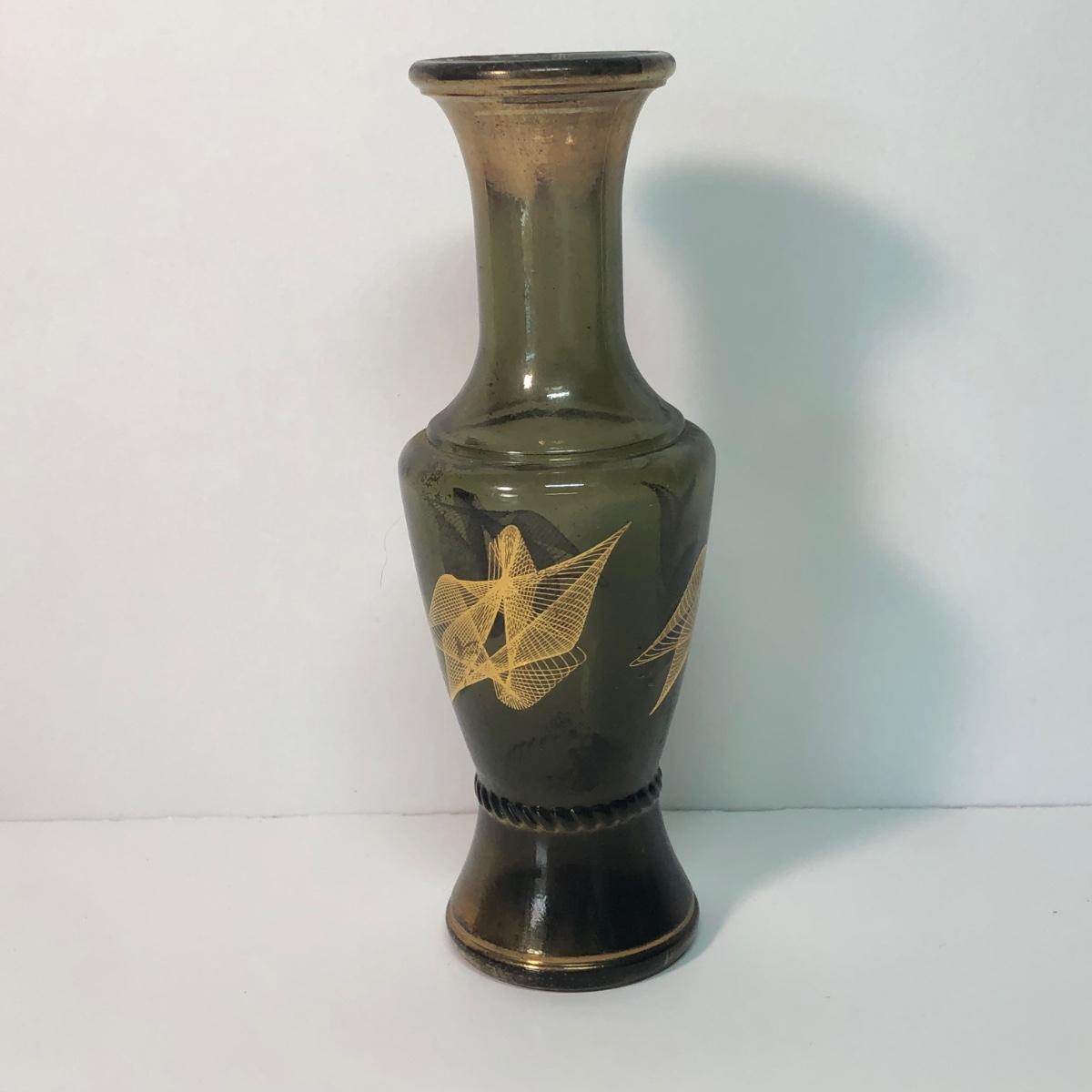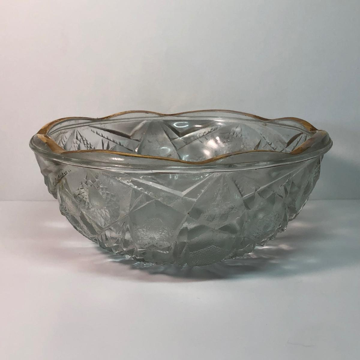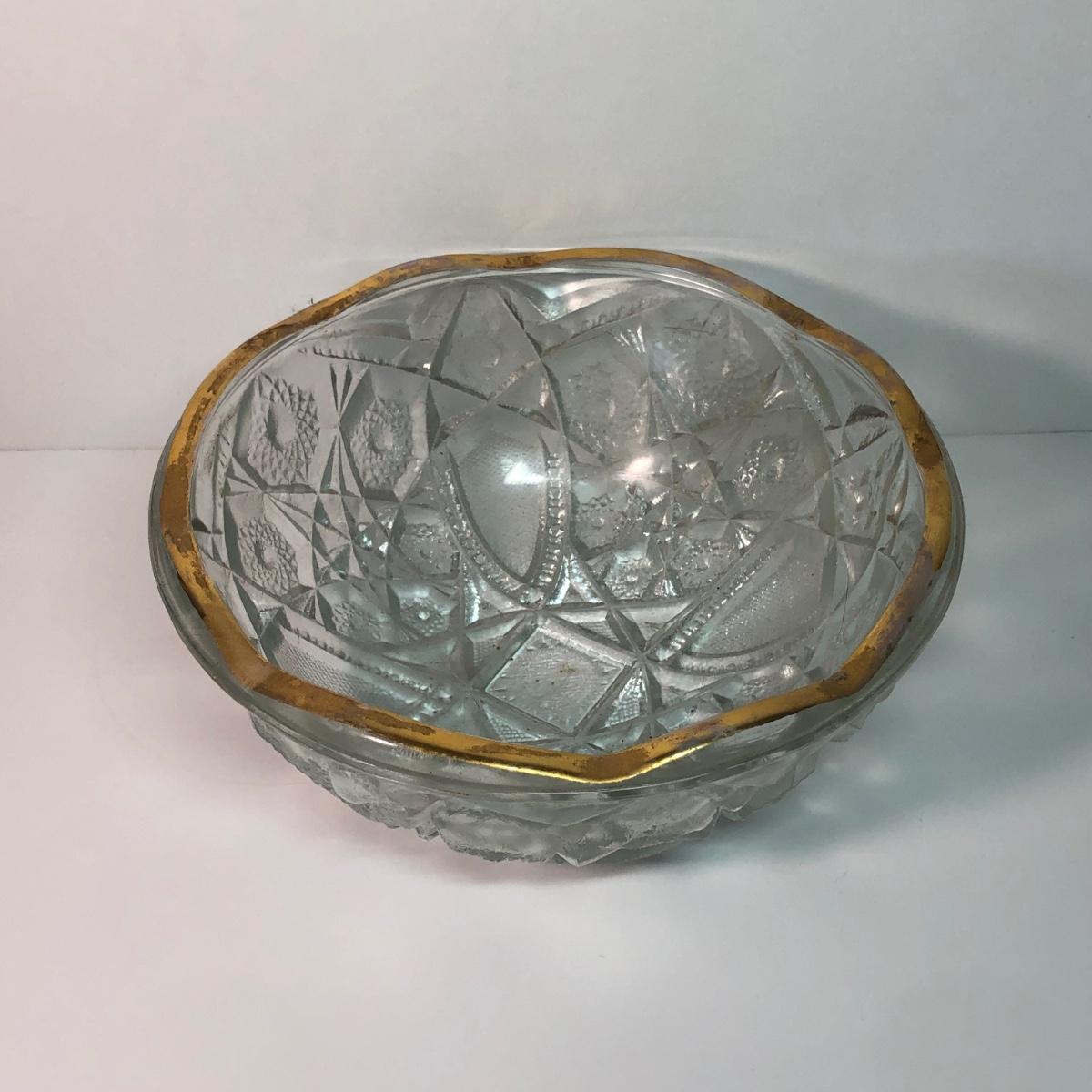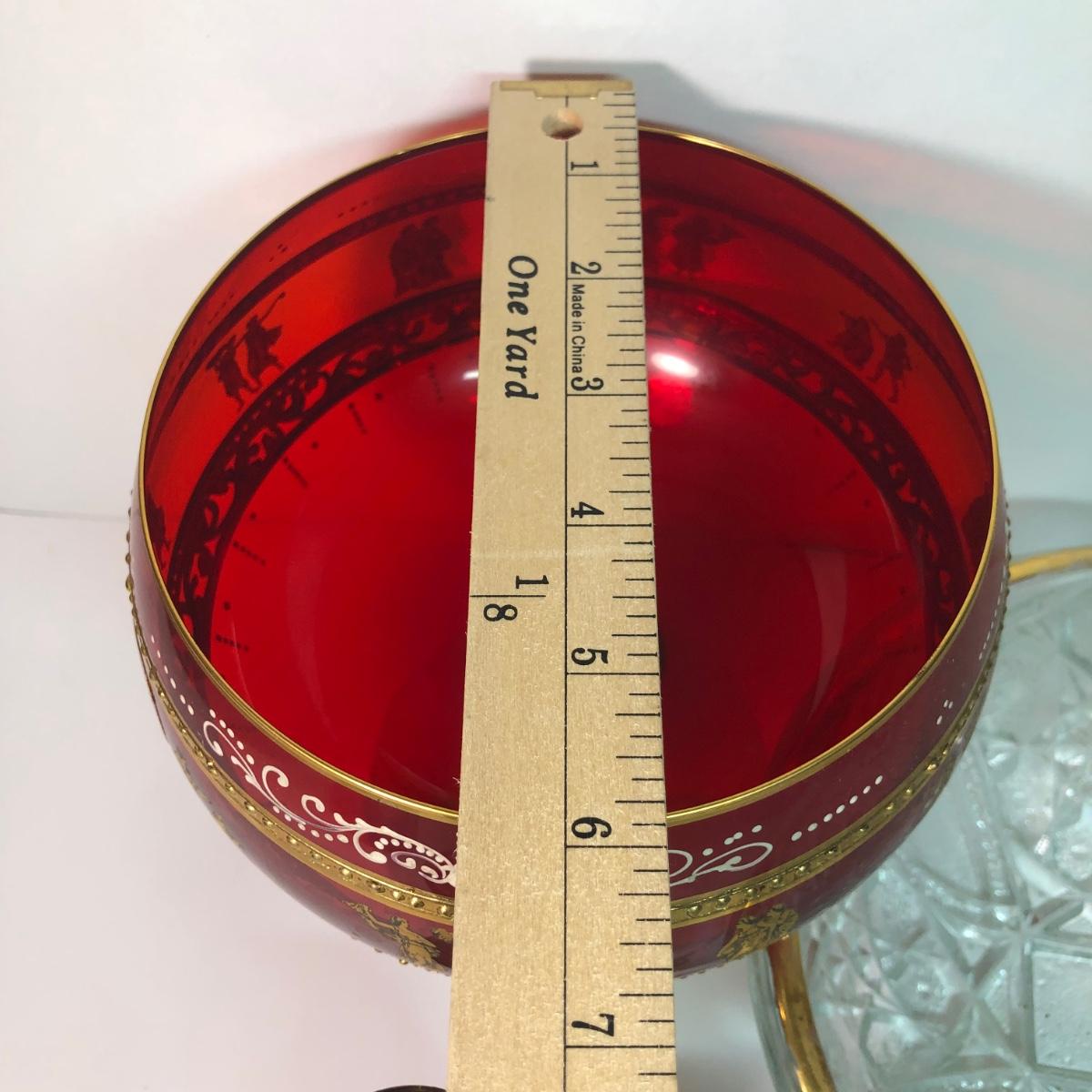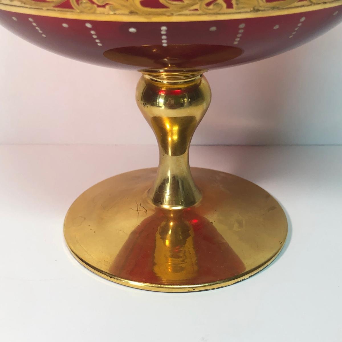 LOT 37M: Large Ruby Glass Roman Goblet, Crystal Bowl w/ Gold Color Rim & More
