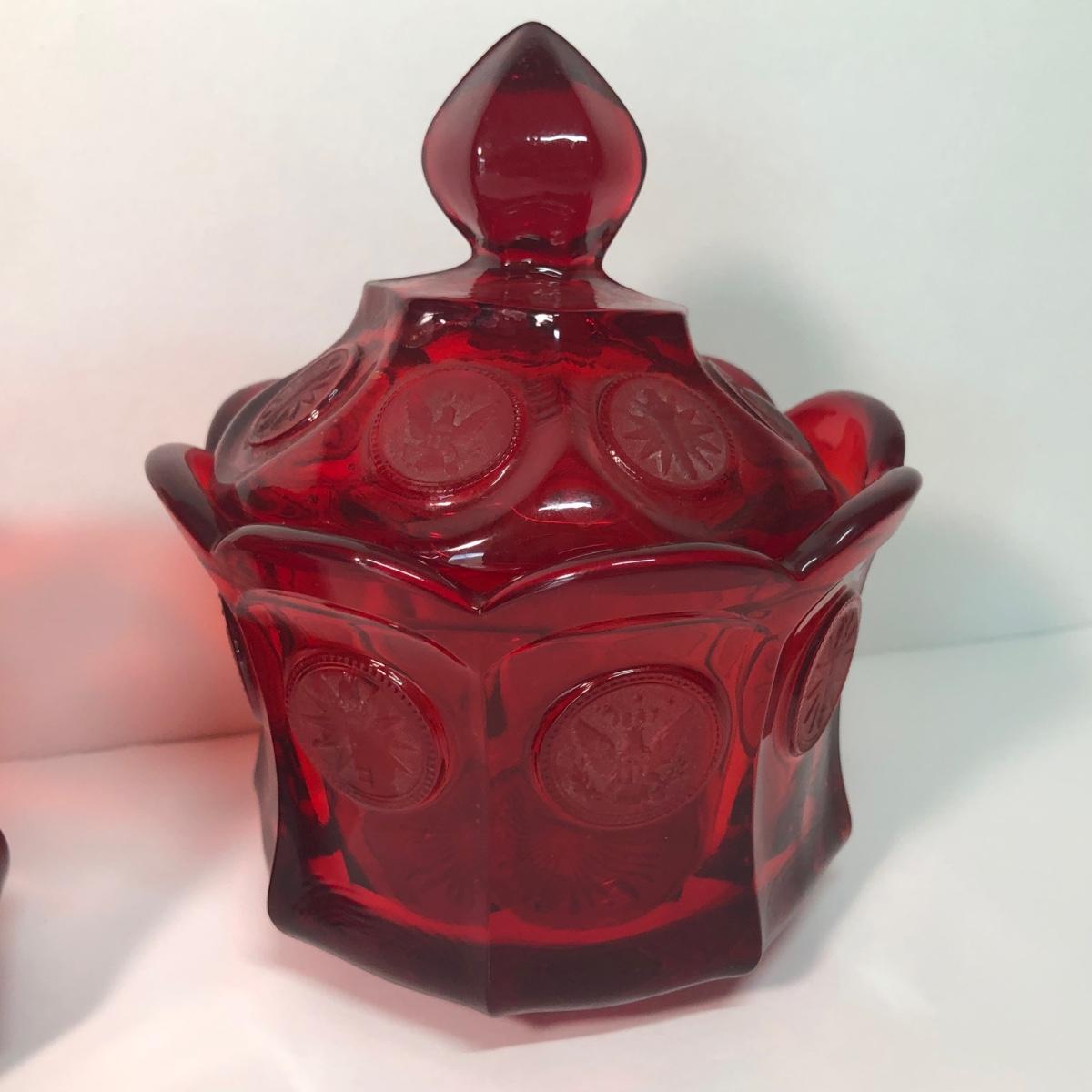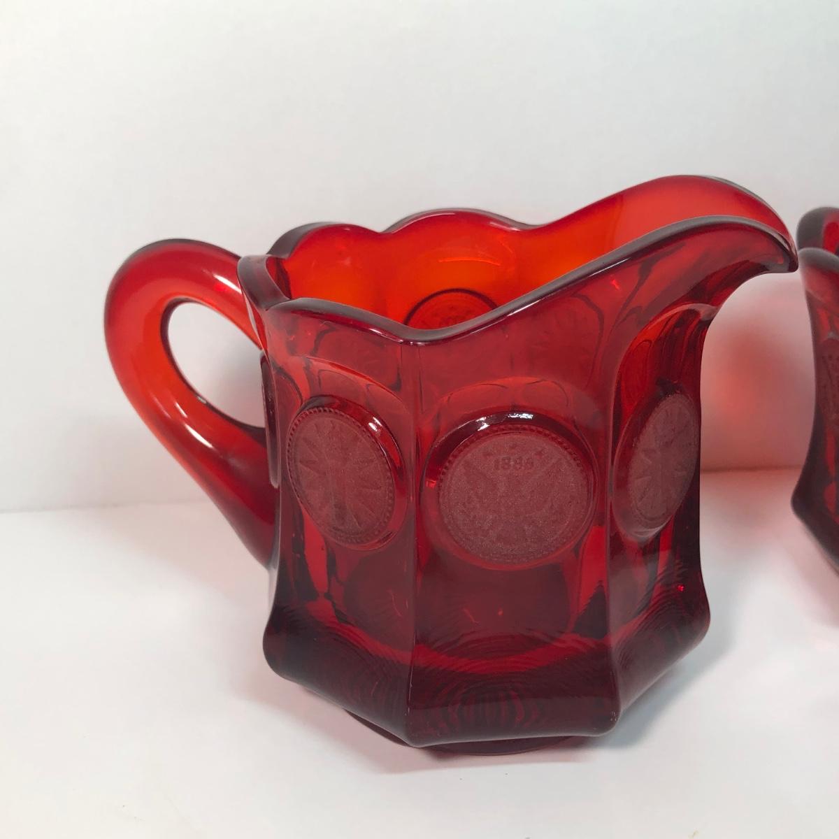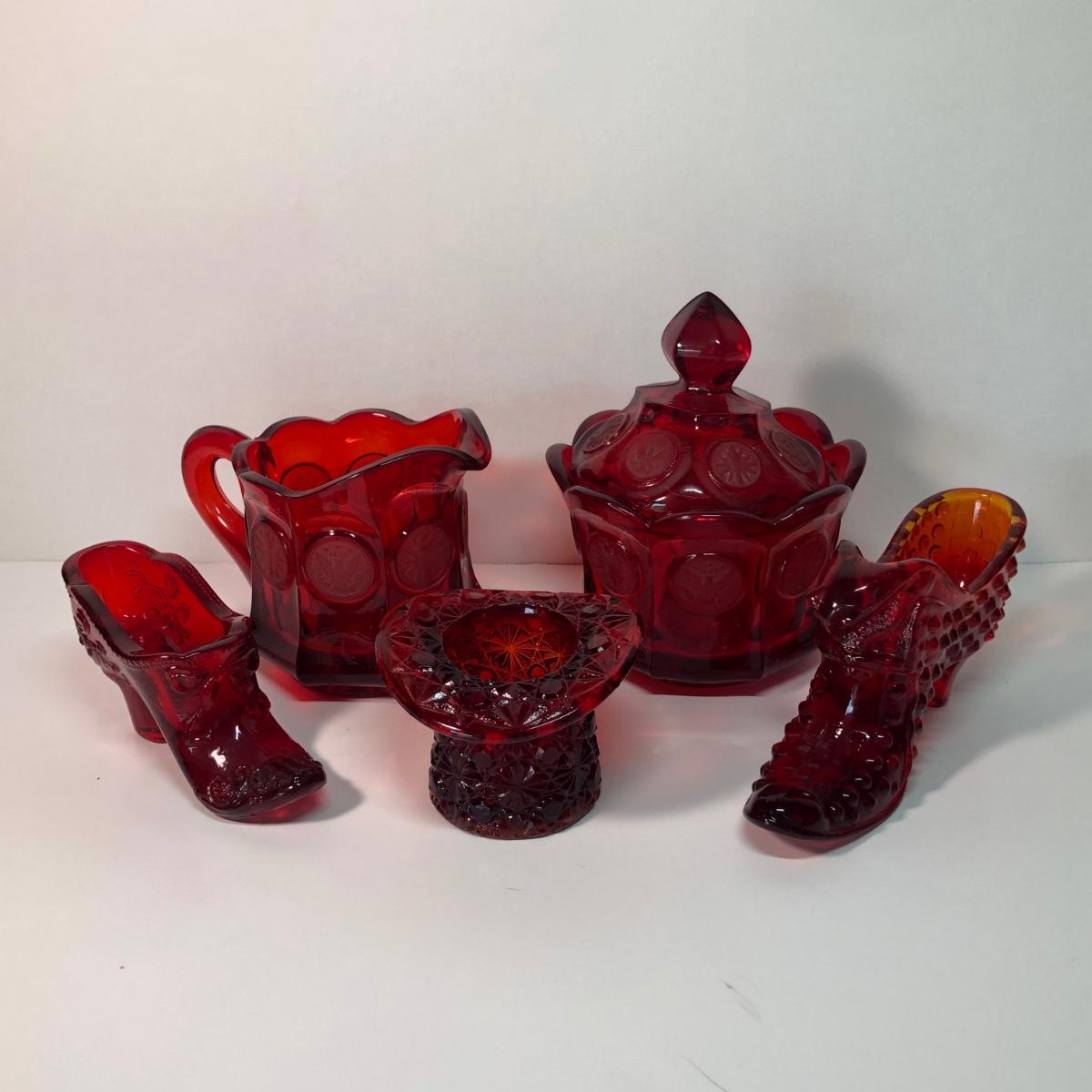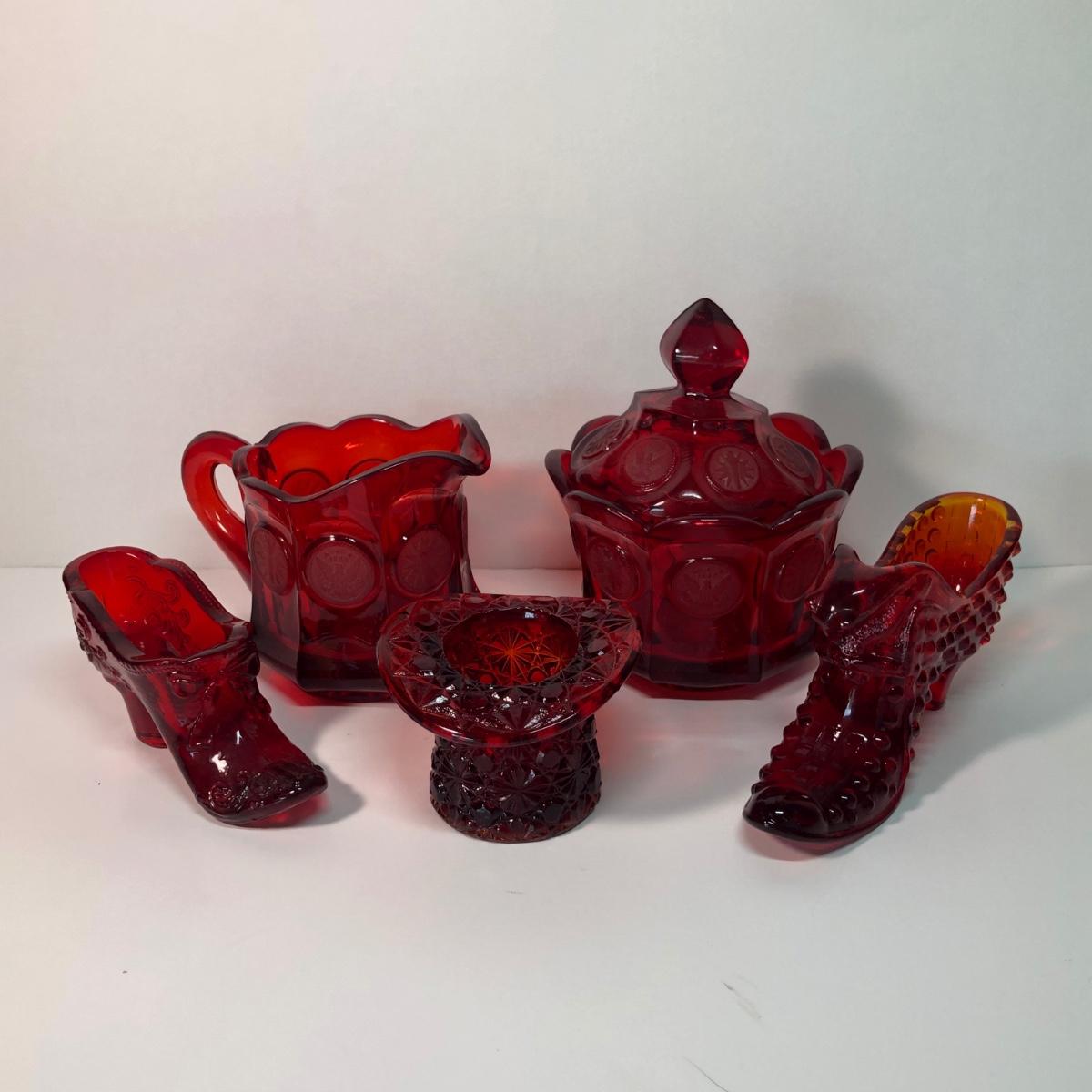 LOT 38M: Ruby Glass Collection - Sugar Bowl & Creamer, Shoes, & Top Hat