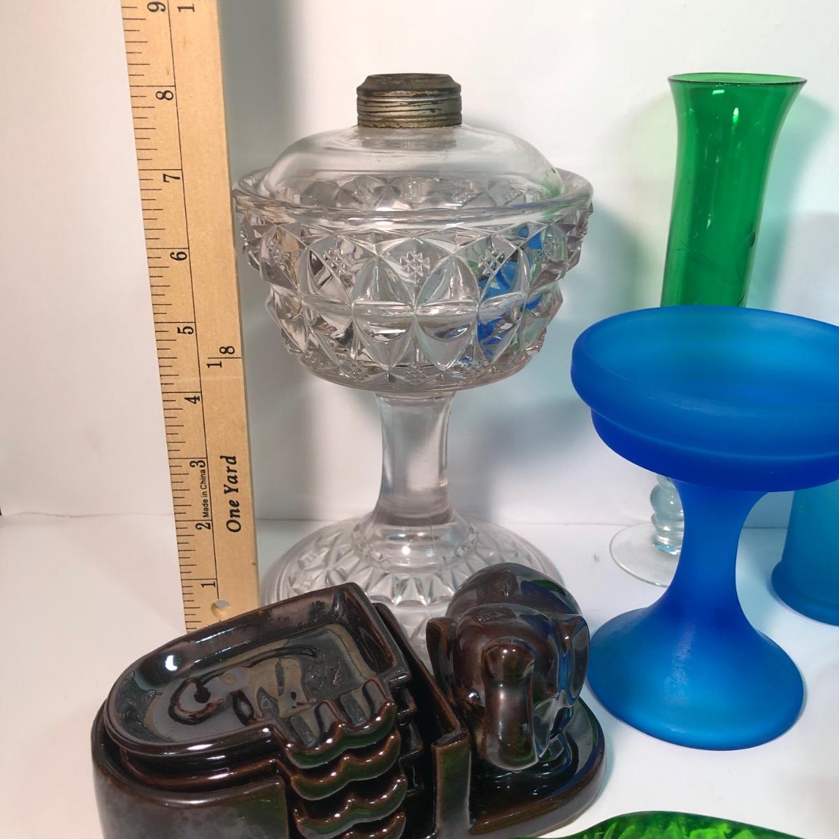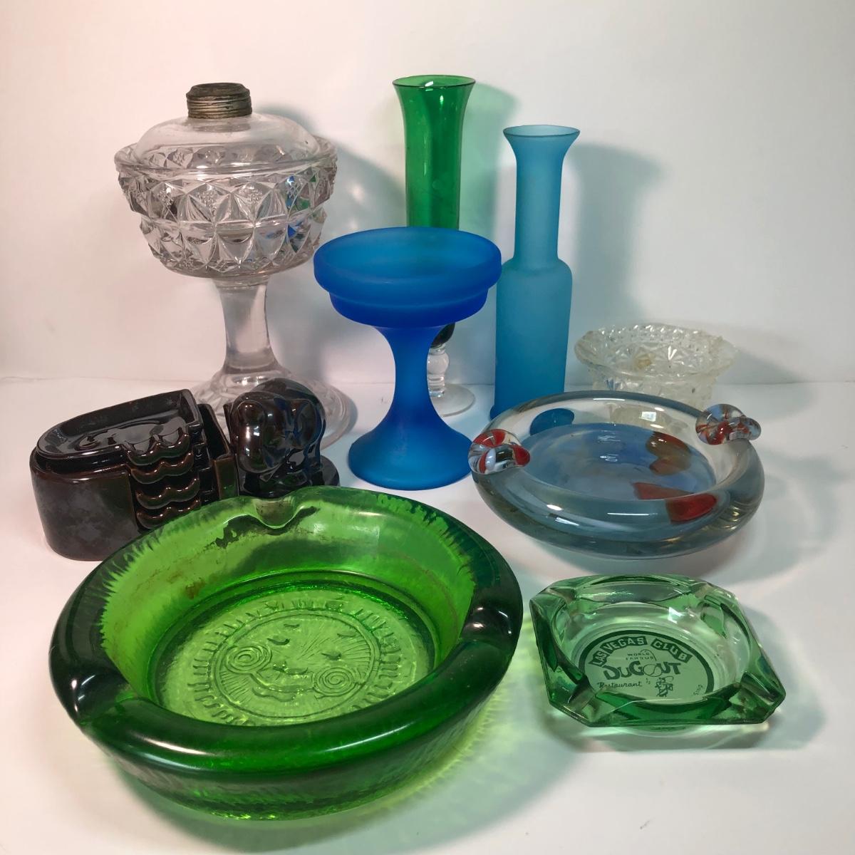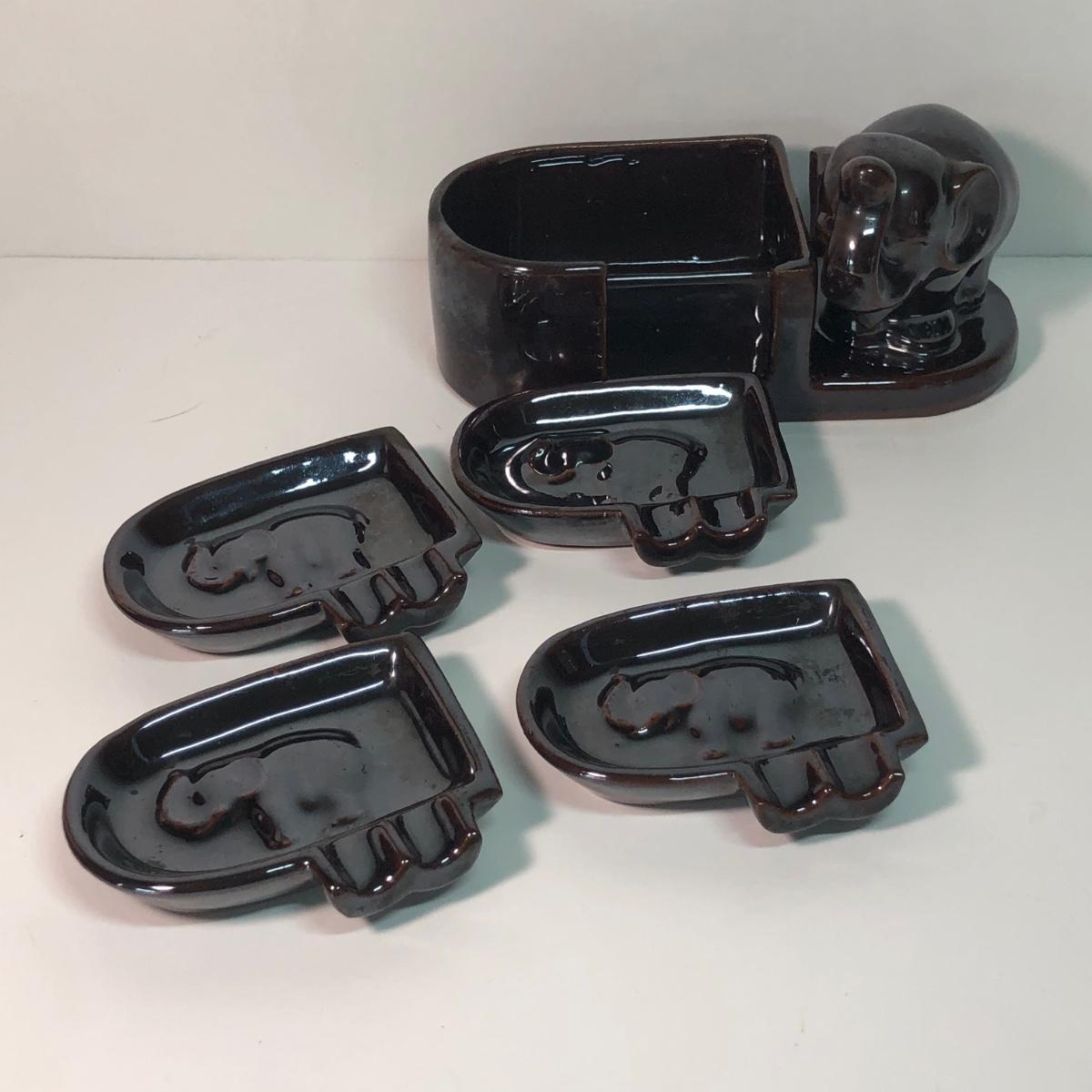 LOT 41M: Vintage Elephant Ash Tray Set, Westmoreland Glass Dish, Ash Trays & More