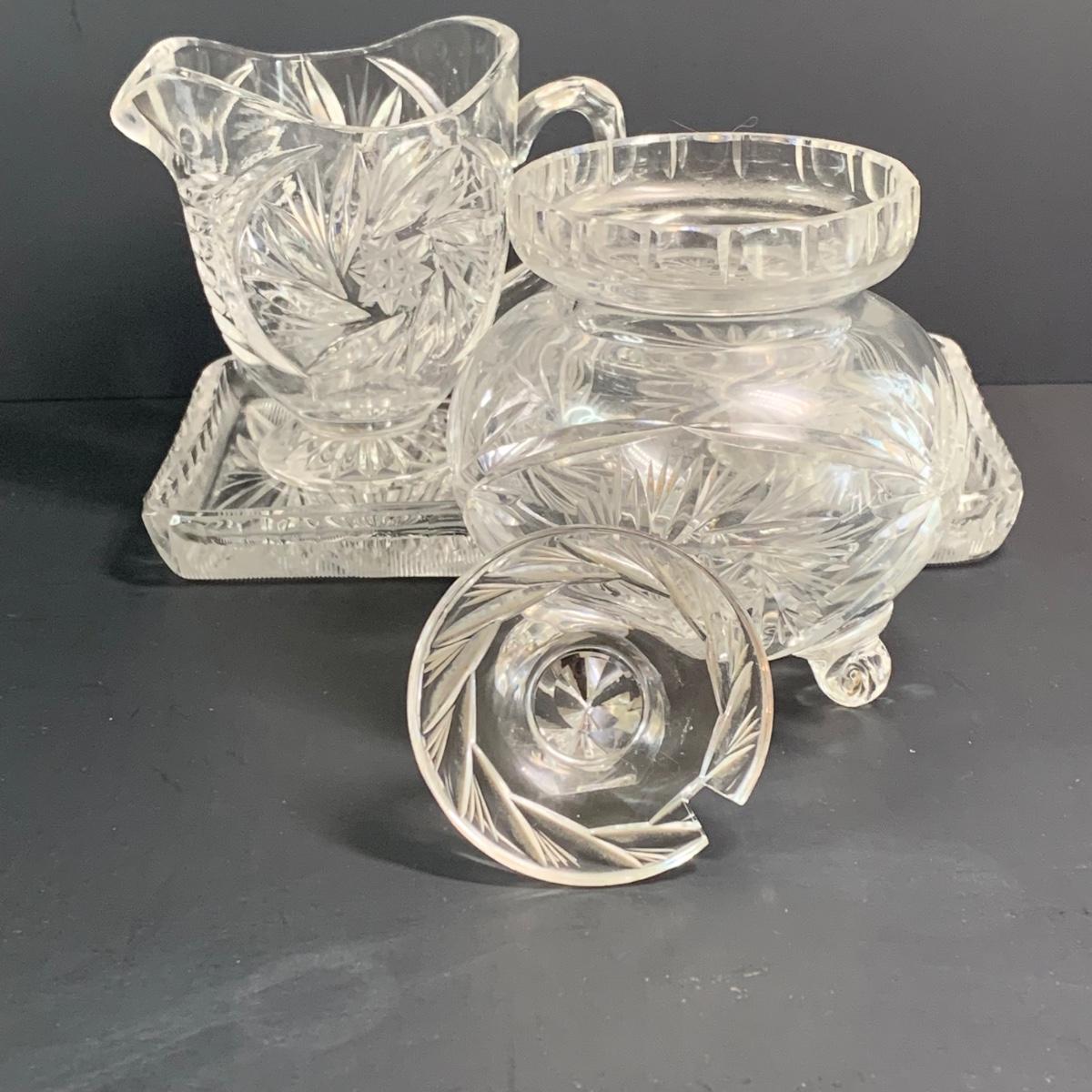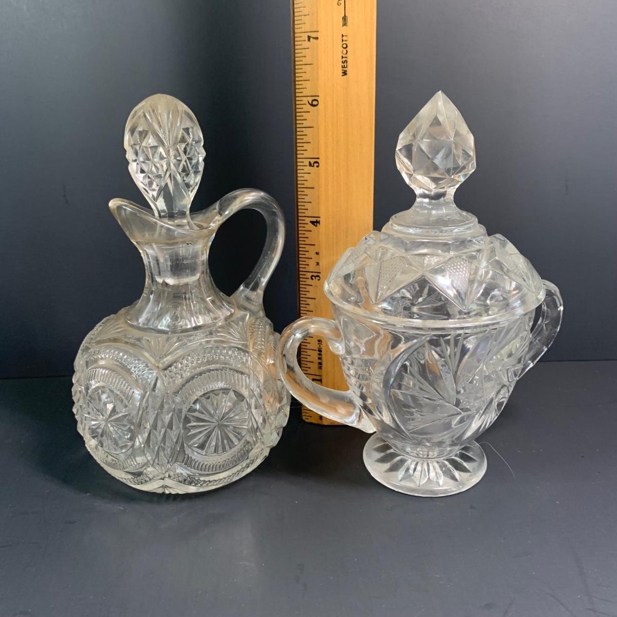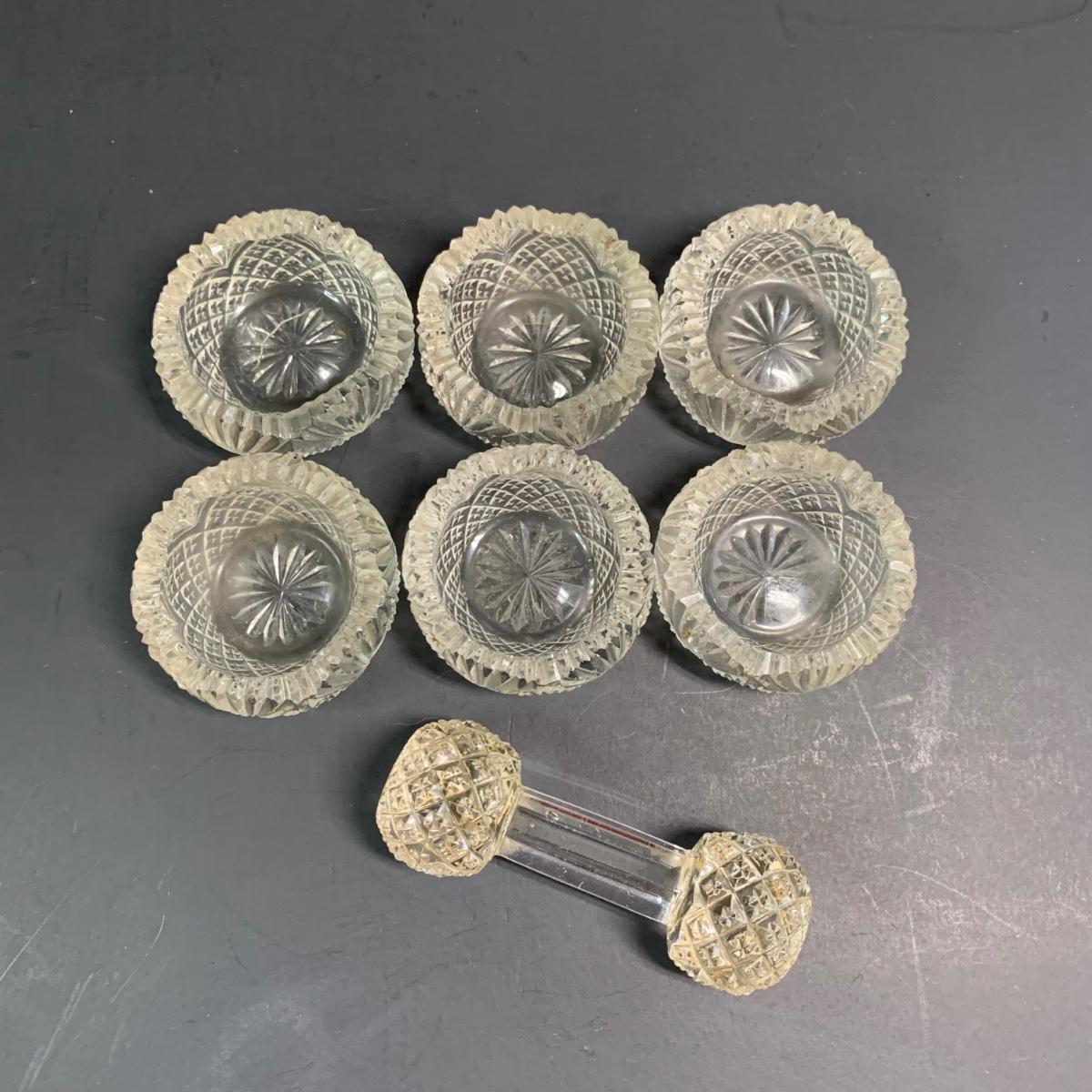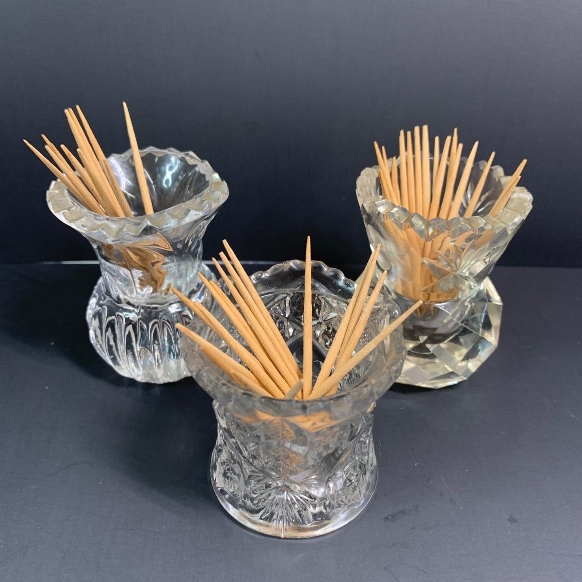 LOT 57R: Clear Glass Collection: Salt Dishes, Crystal Knife Rest, Toothpick Holders, Sugar Bowl/Creamer & More