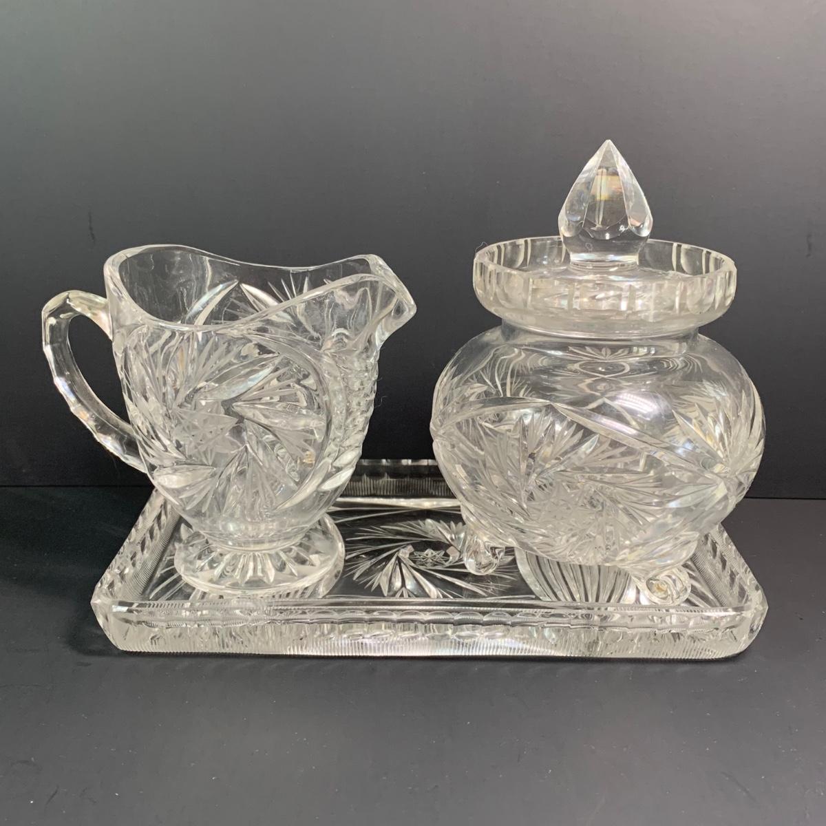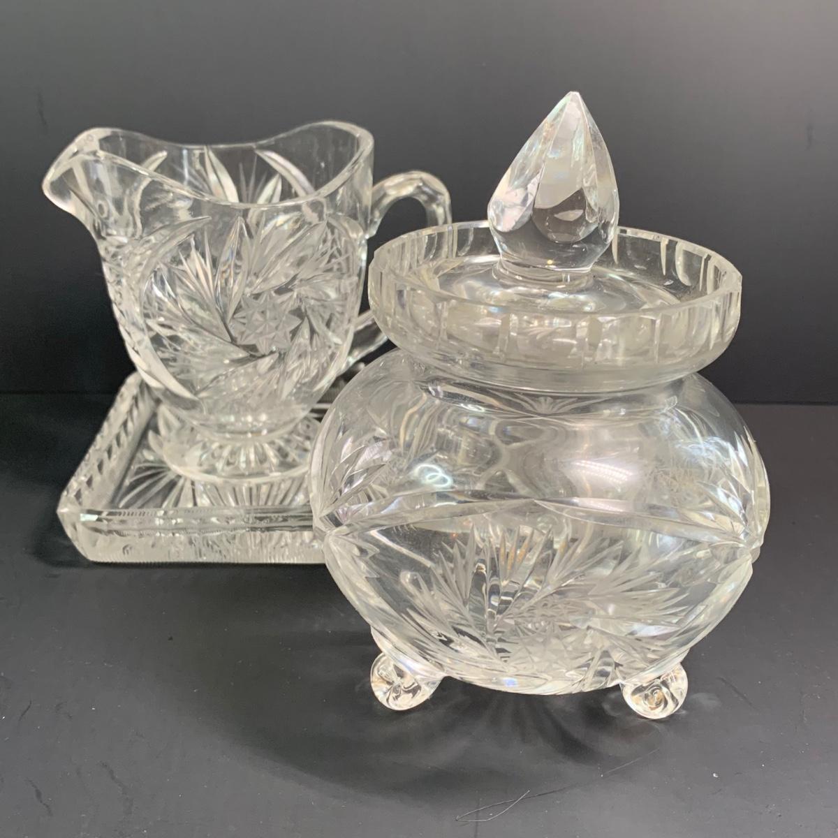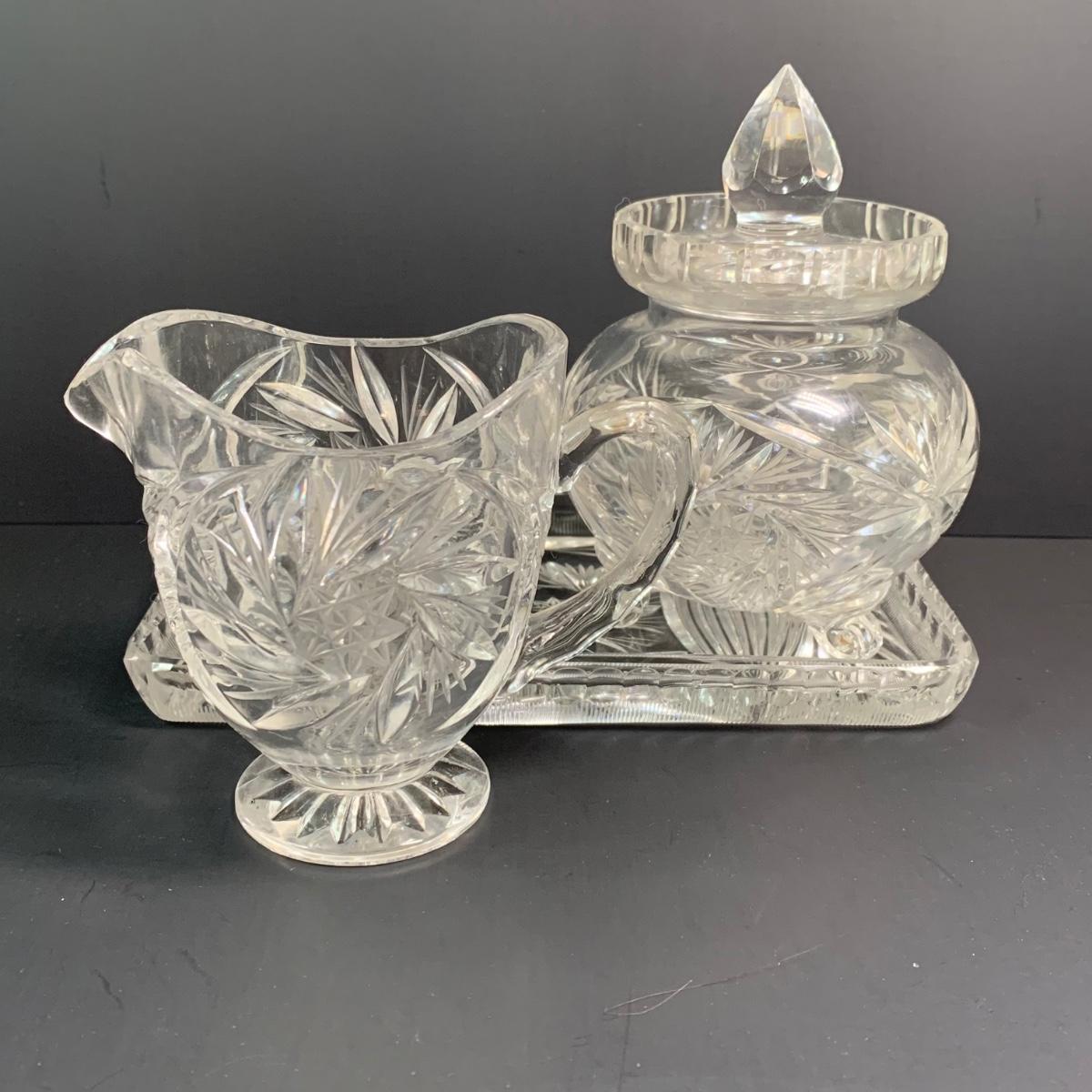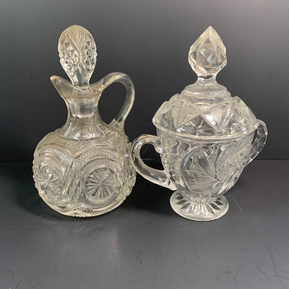 LOT 57R: Clear Glass Collection: Salt Dishes, Crystal Knife Rest, Toothpick Holders, Sugar Bowl/Creamer & More