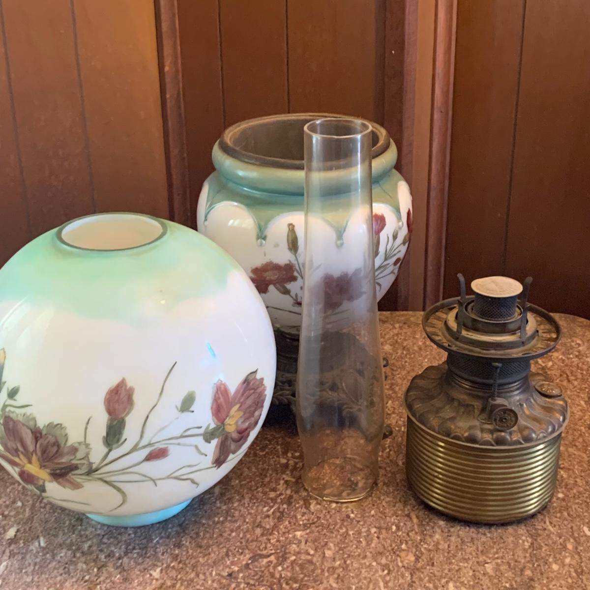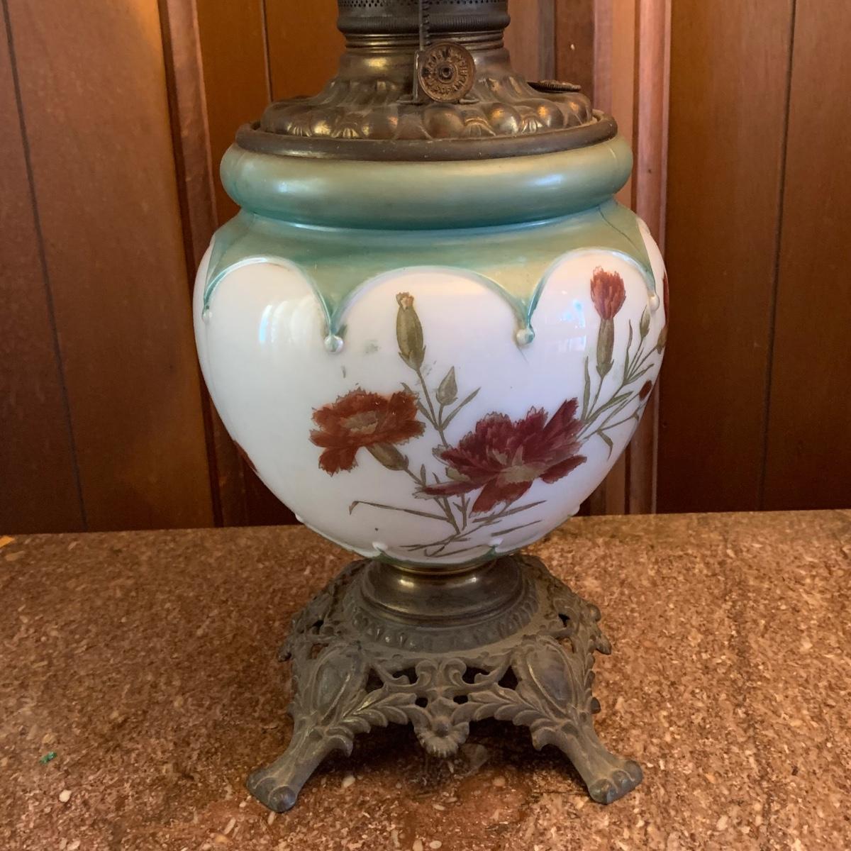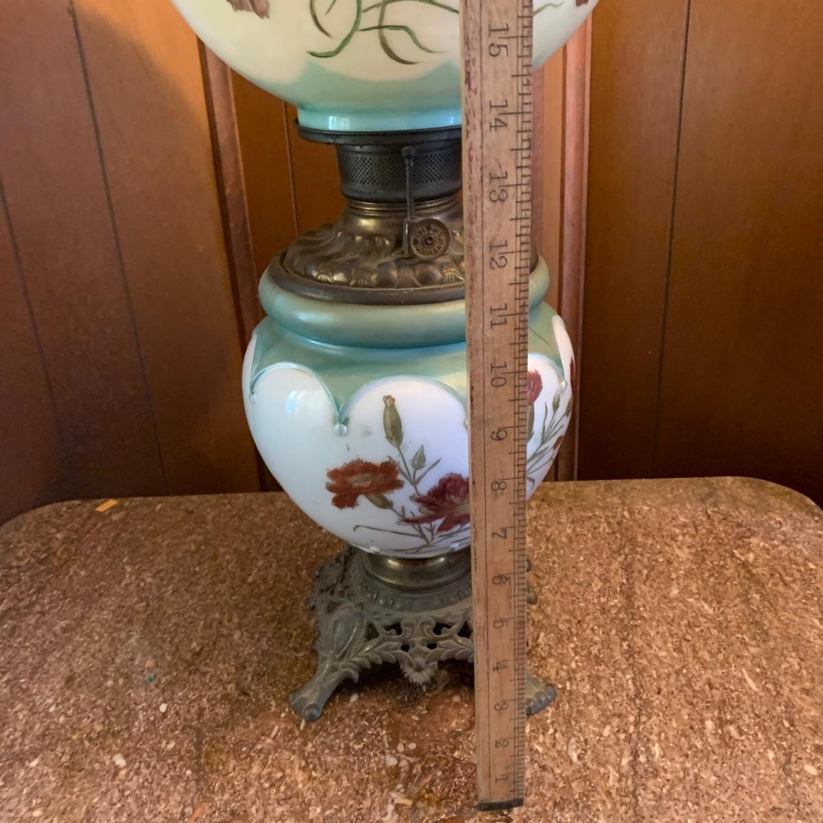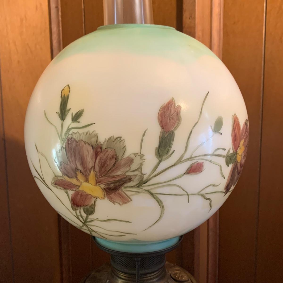 LOT 590R: Antique Floral Design Oil Parlor Lamp