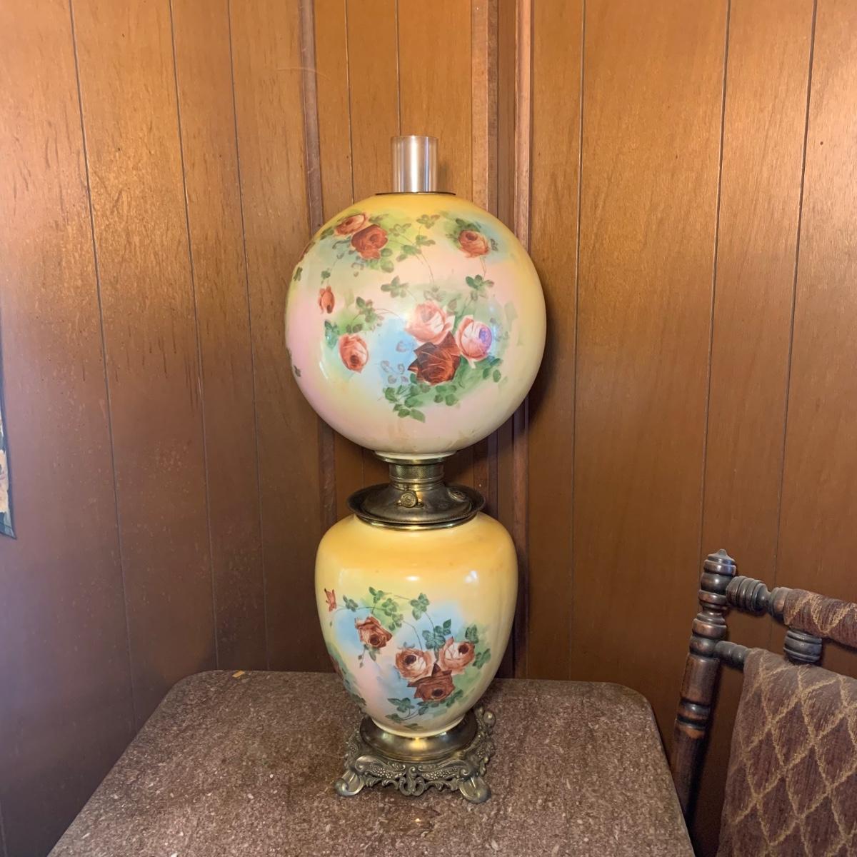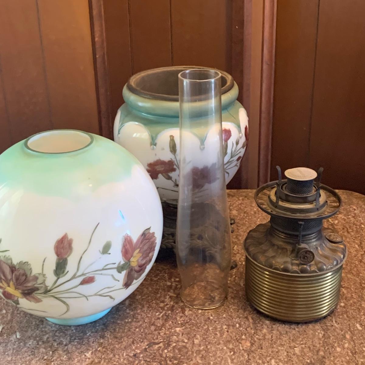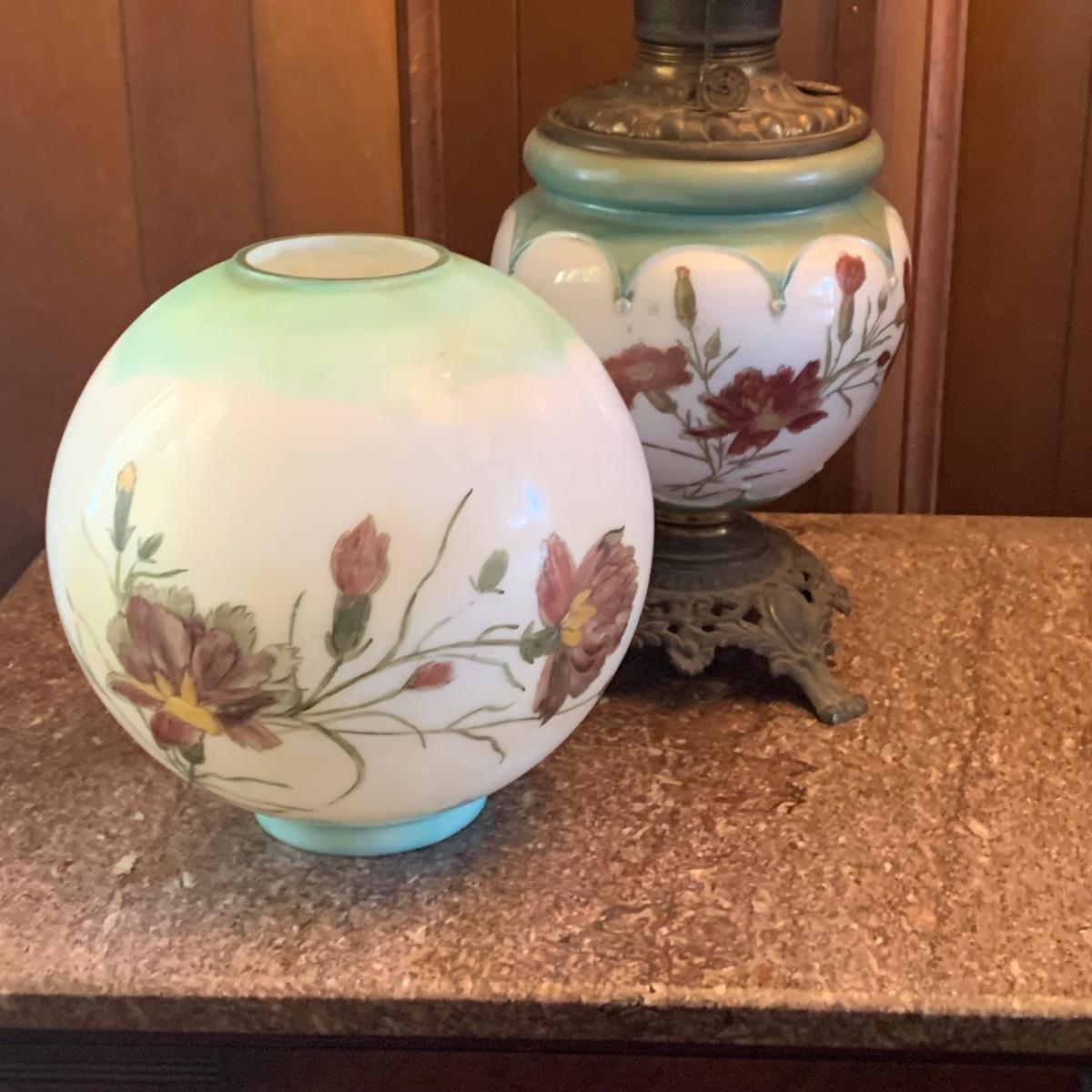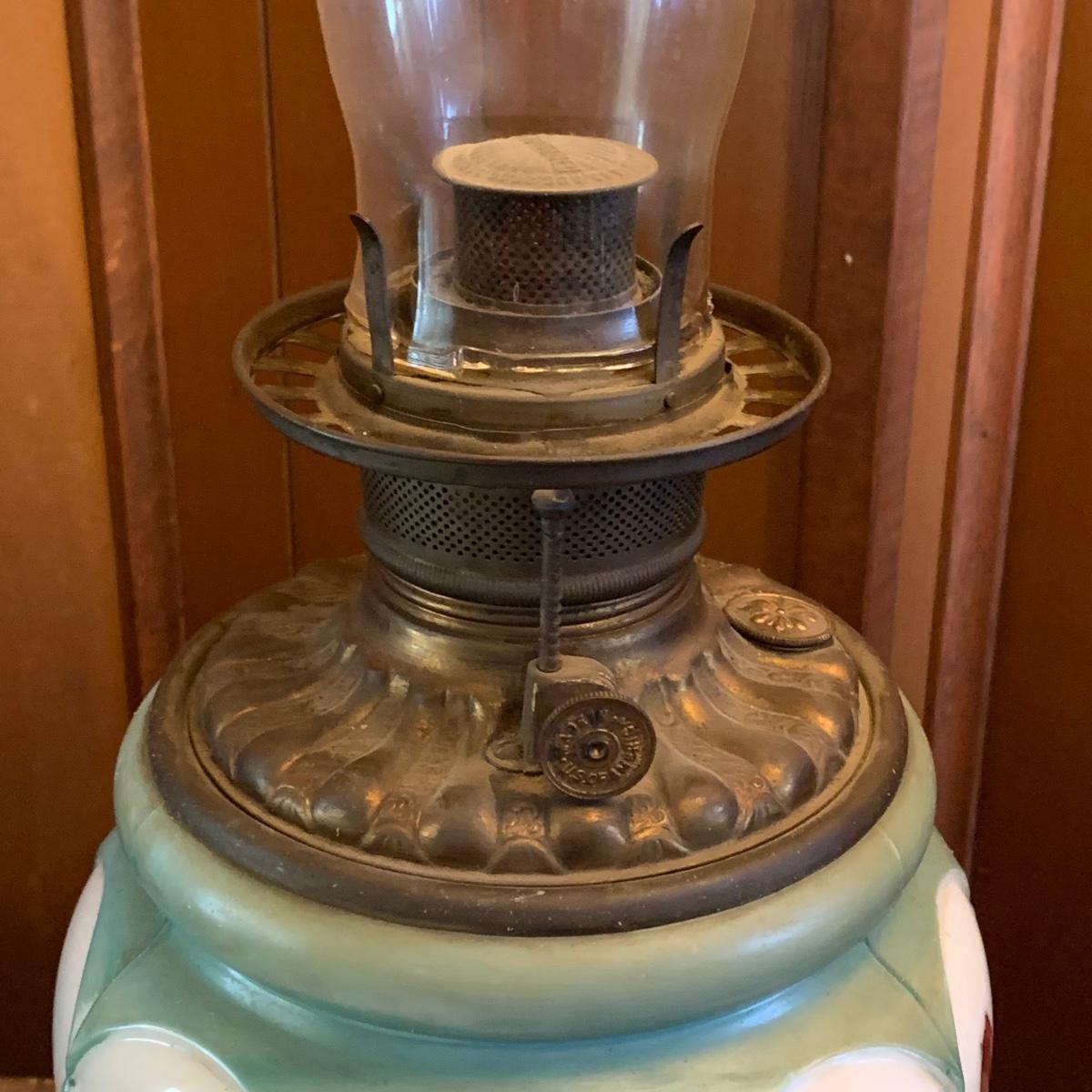 LOT 590R: Antique Floral Design Oil Parlor Lamp