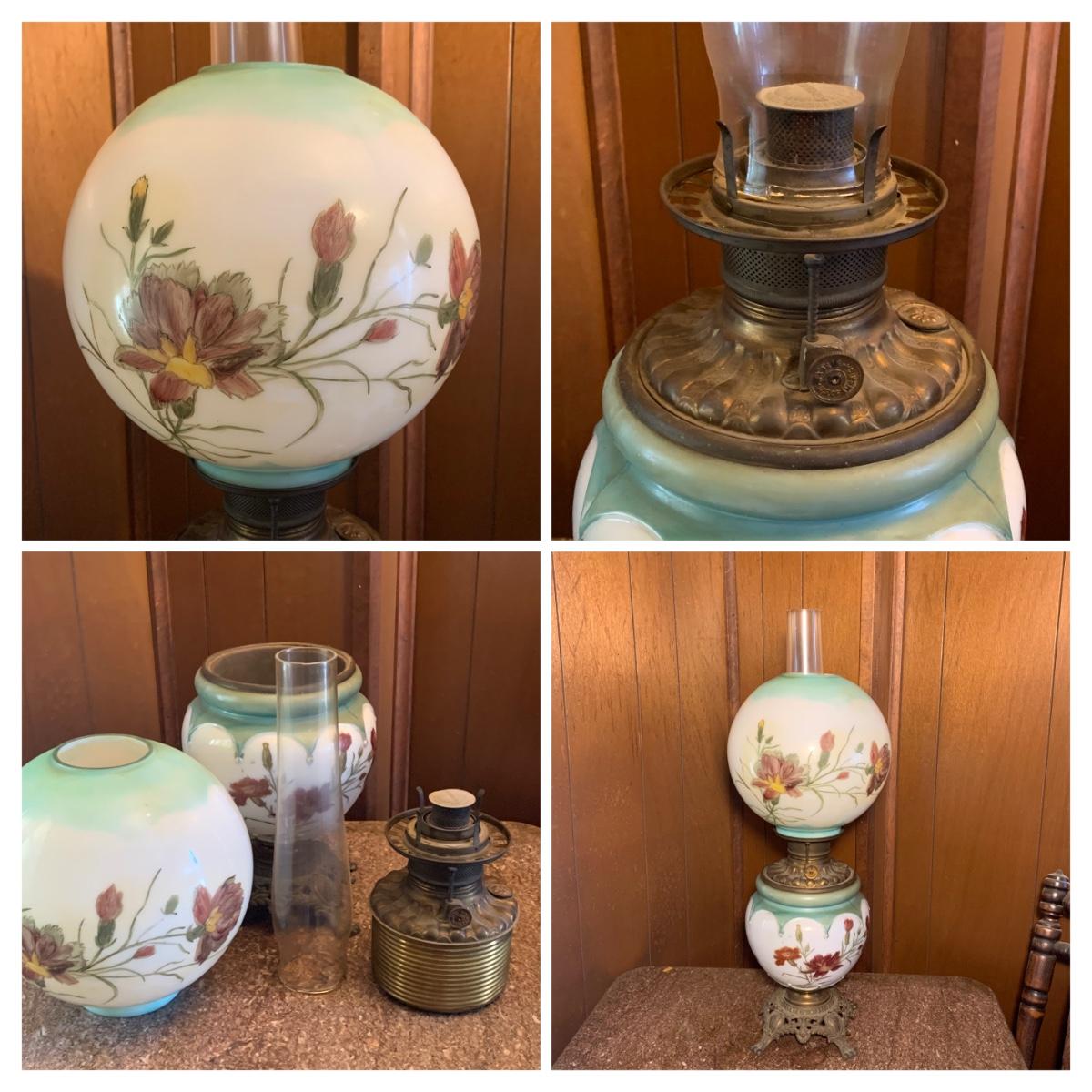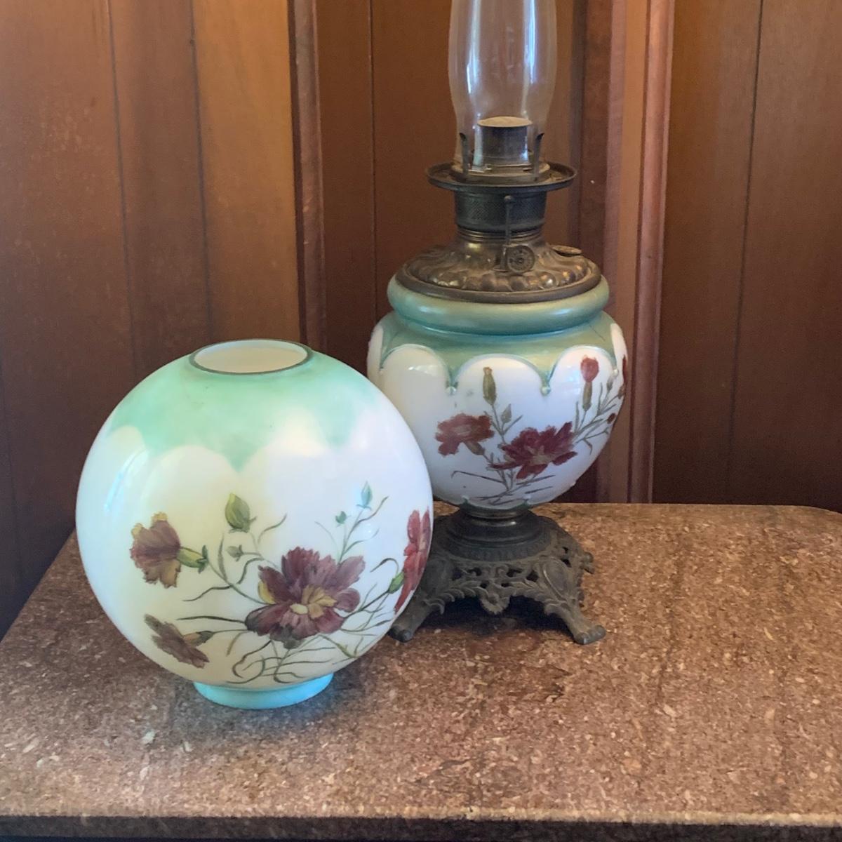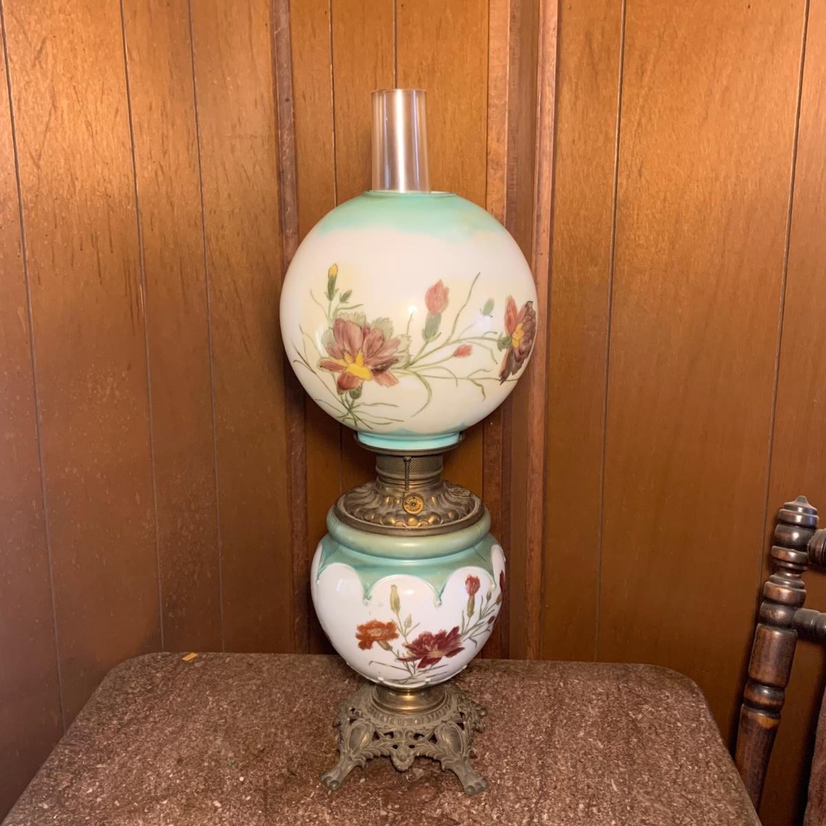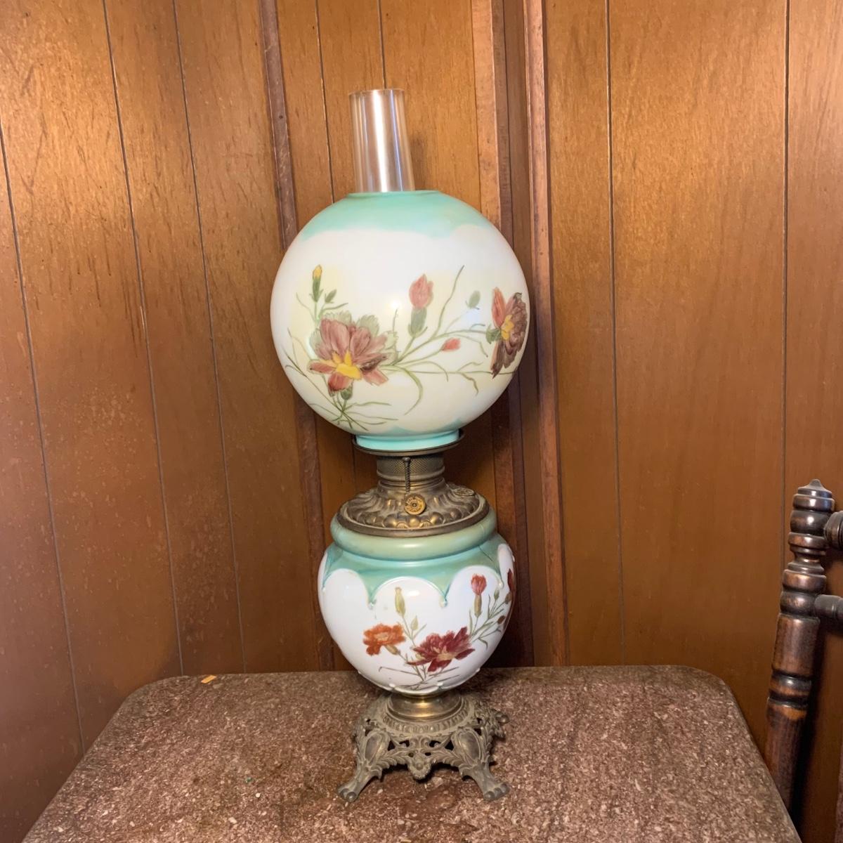 LOT 590R: Antique Floral Design Oil Parlor Lamp