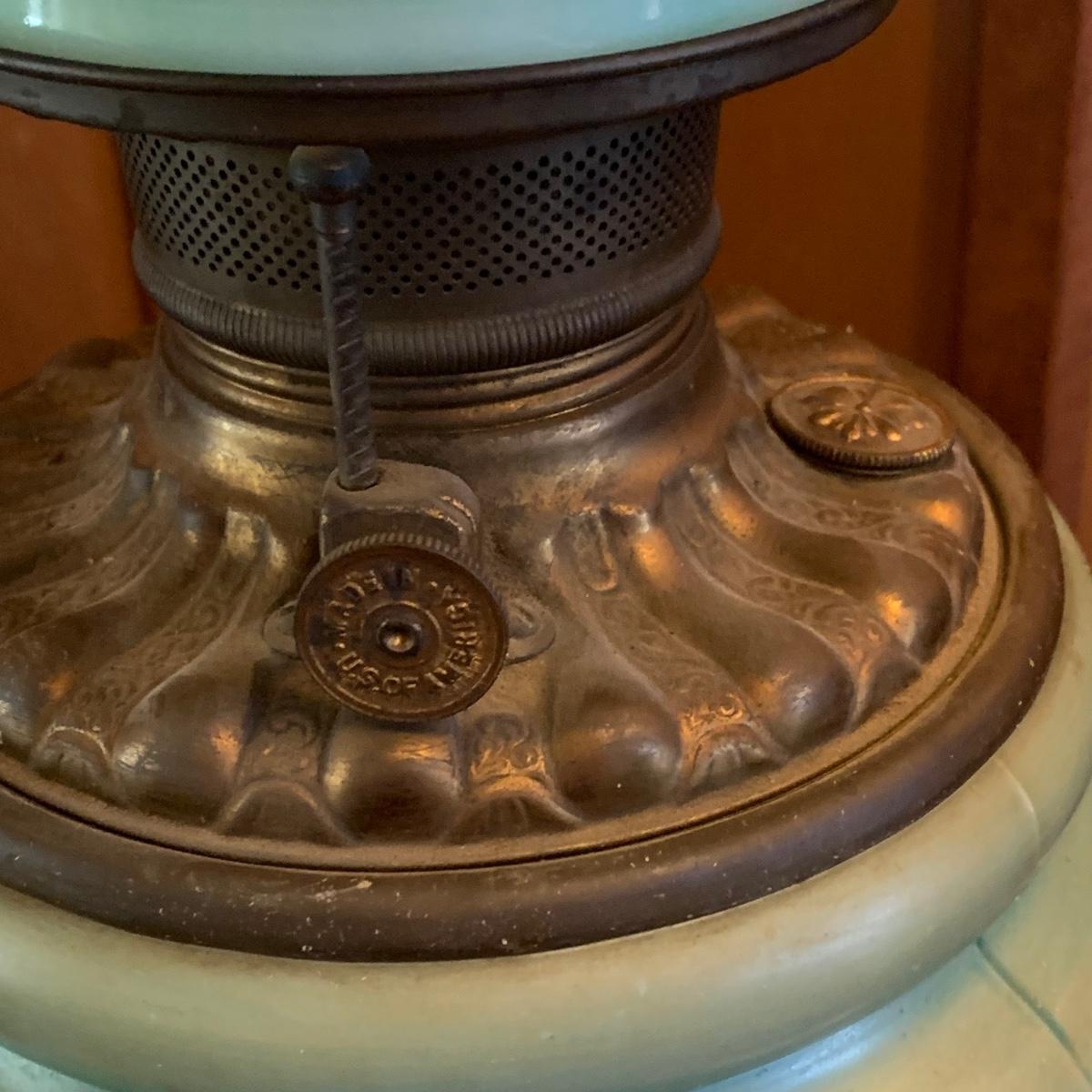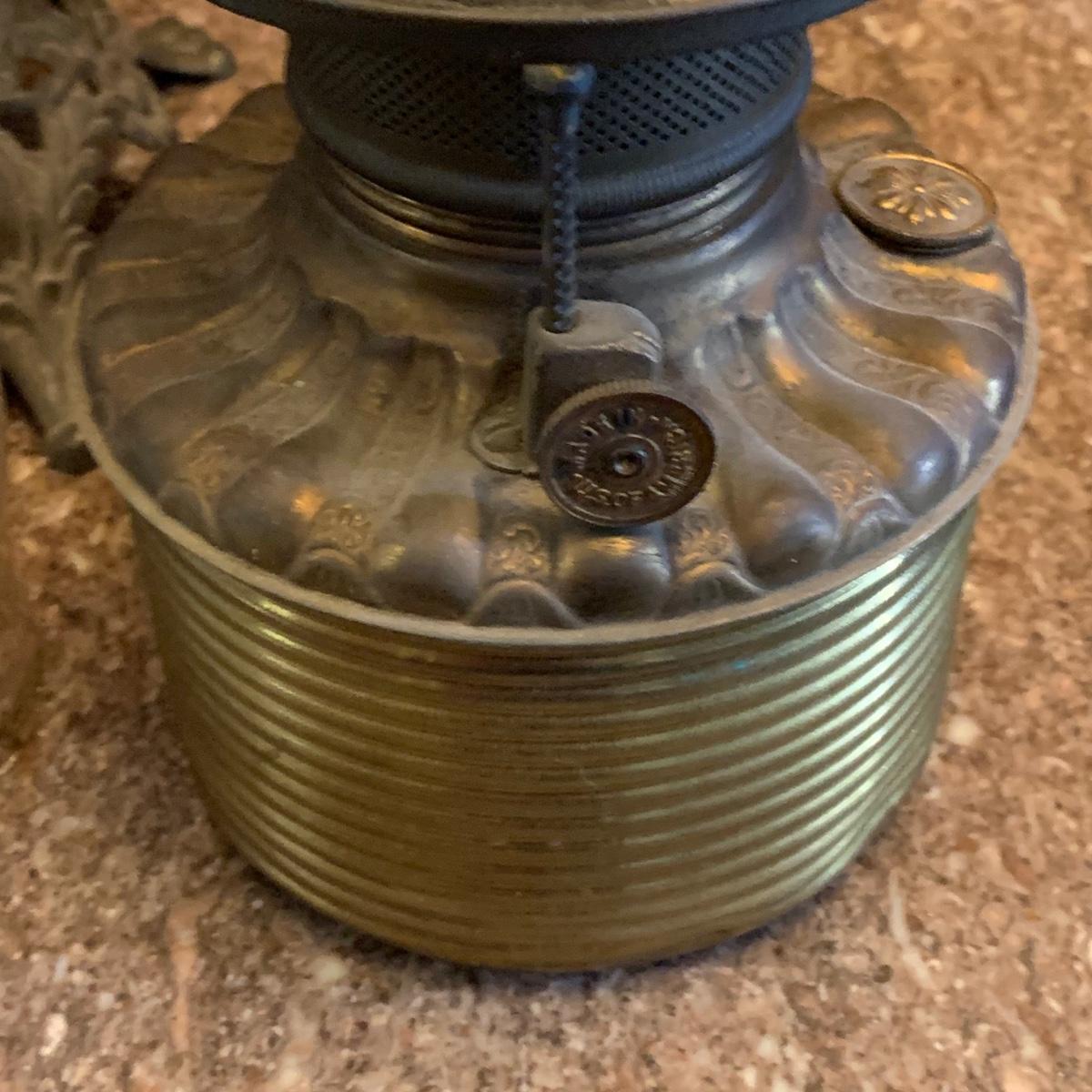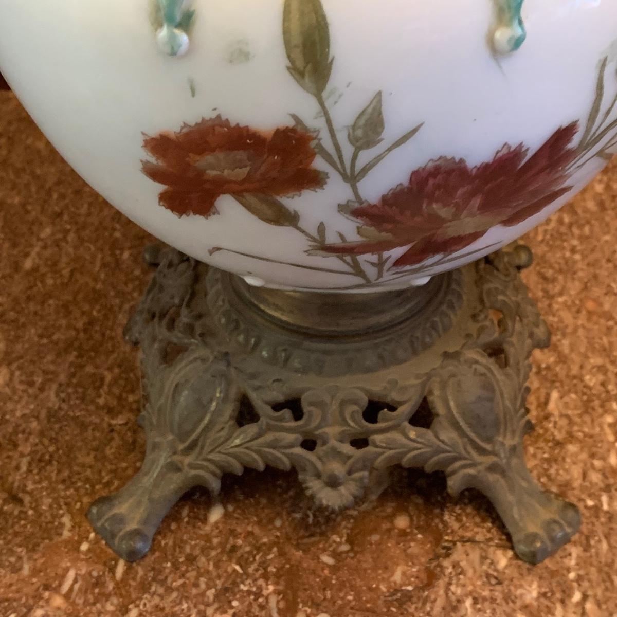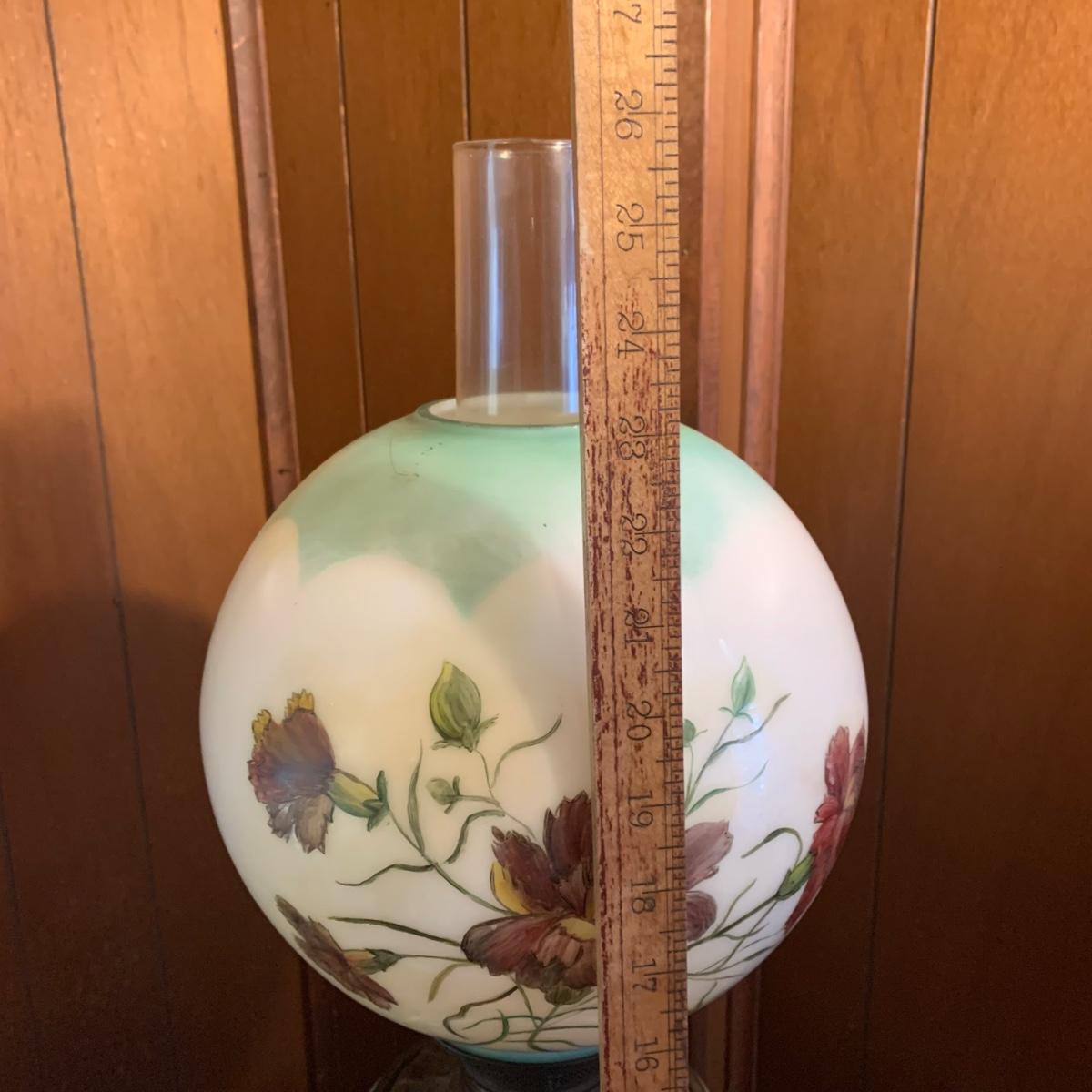 LOT 590R: Antique Floral Design Oil Parlor Lamp