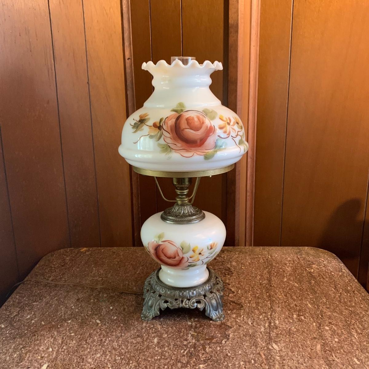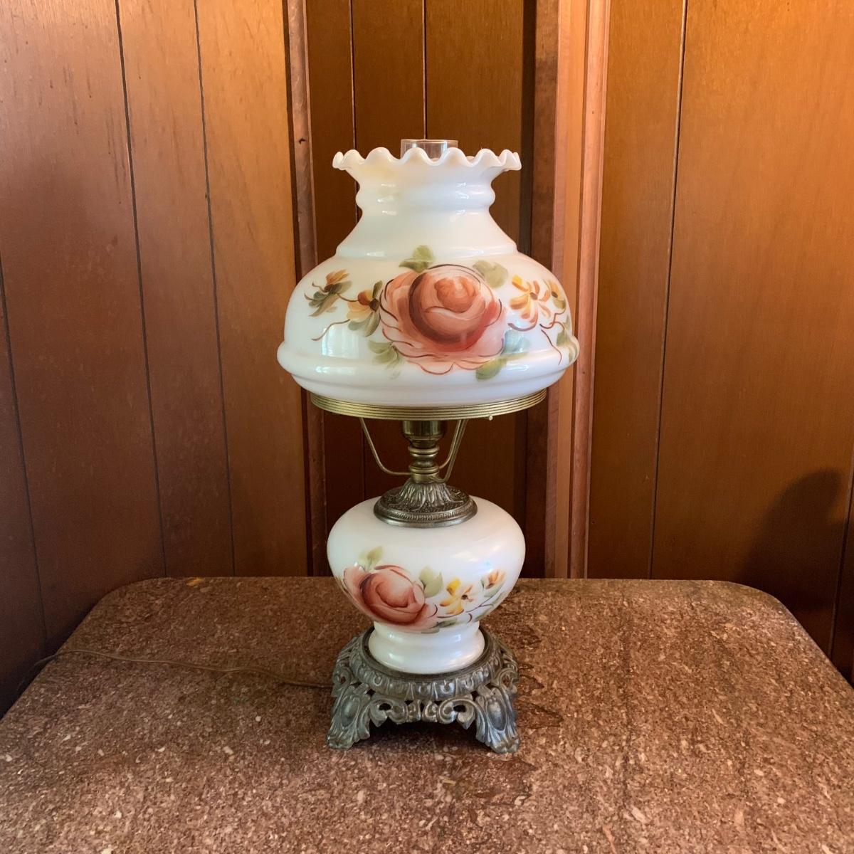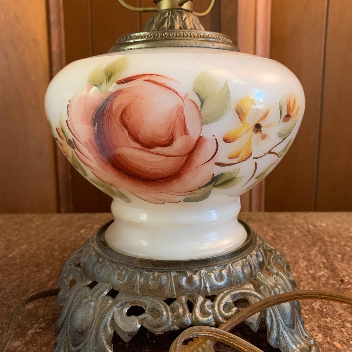 LOT 68R: Hand Painted & Signed Hurrican Style Lamp (untested)