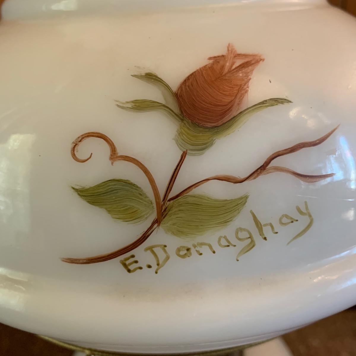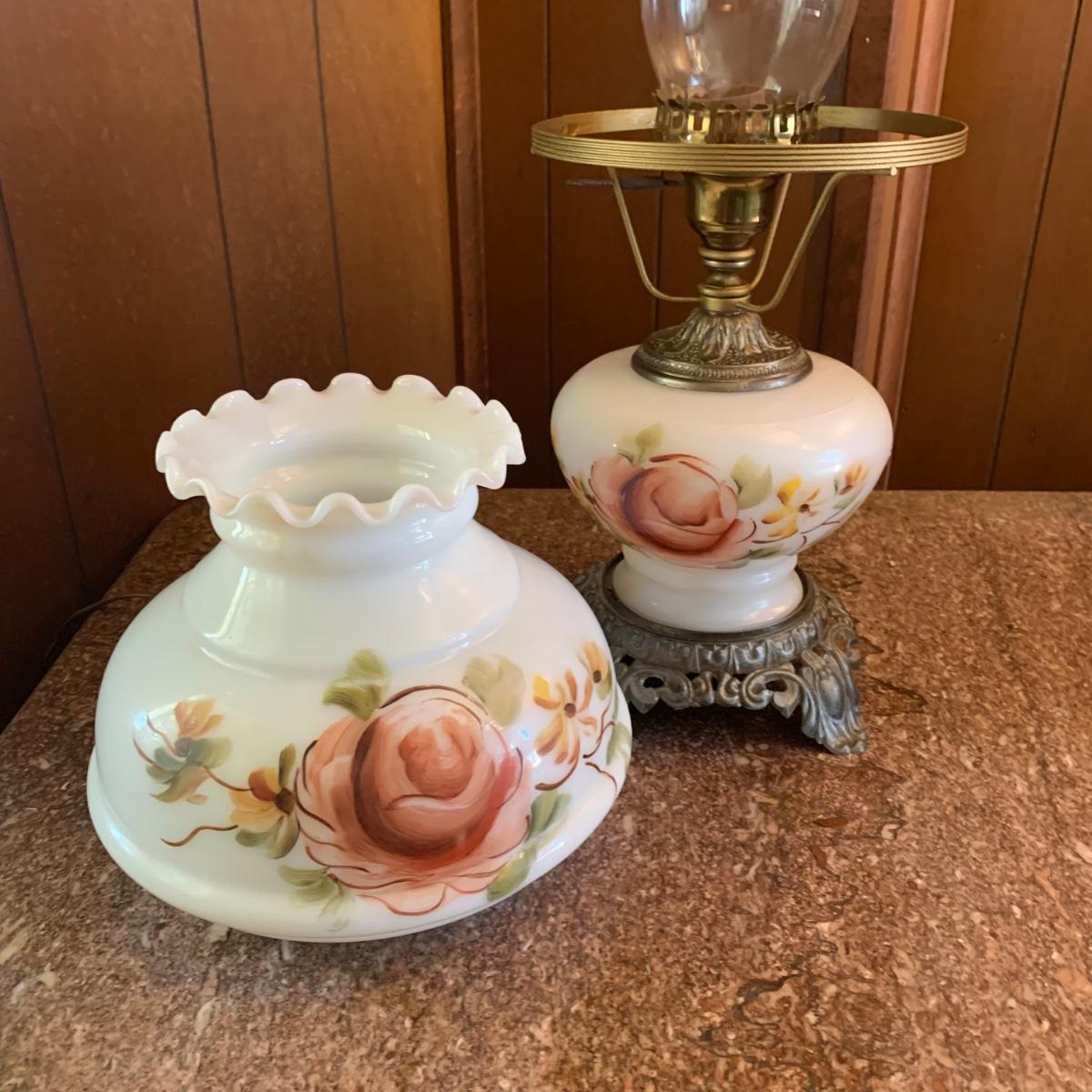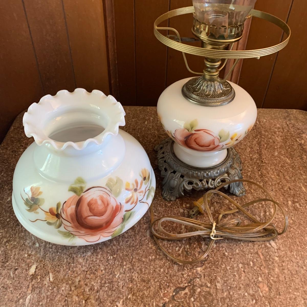 LOT 68R: Hand Painted & Signed Hurrican Style Lamp (untested)