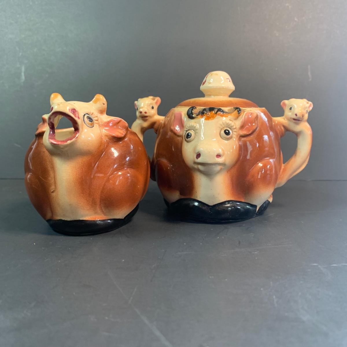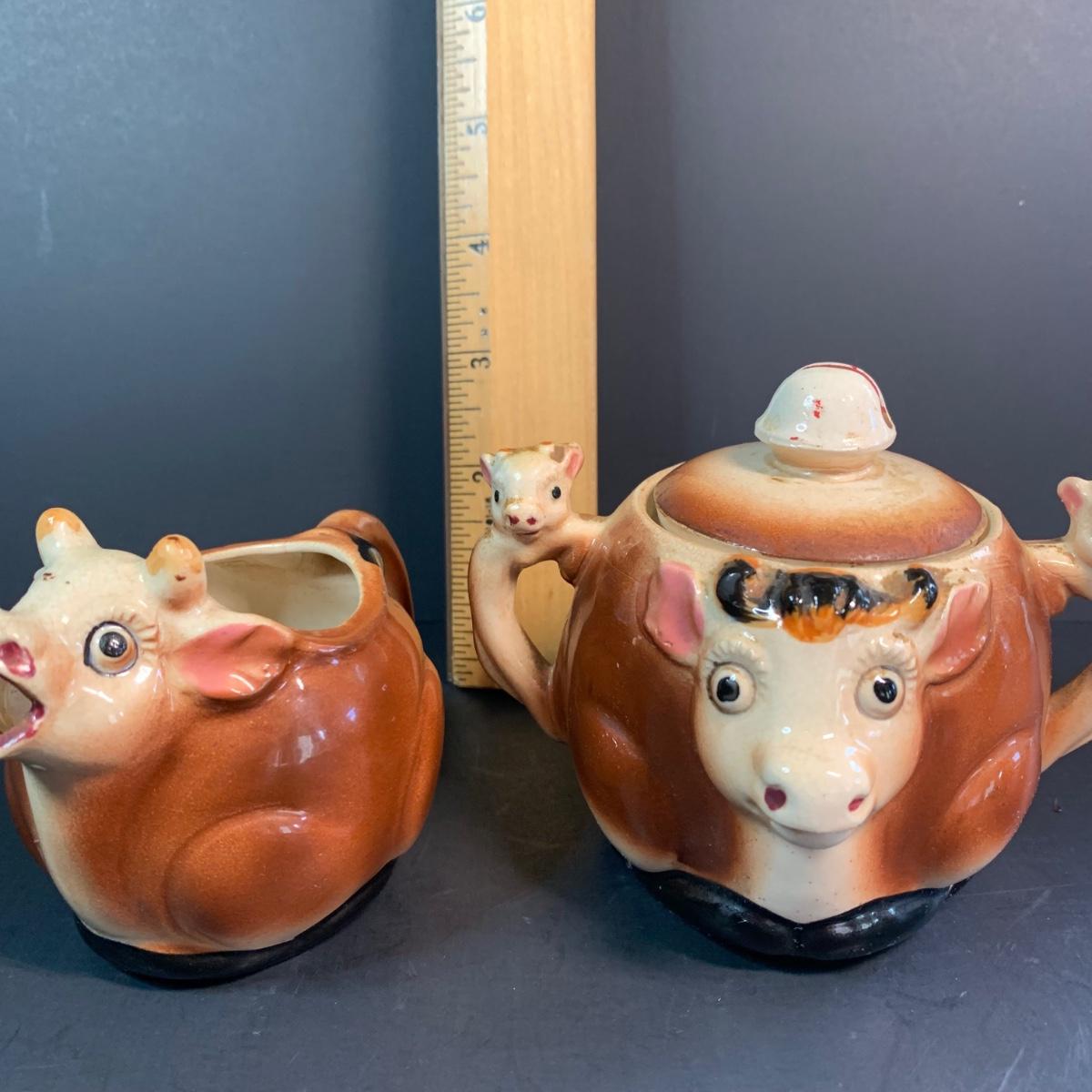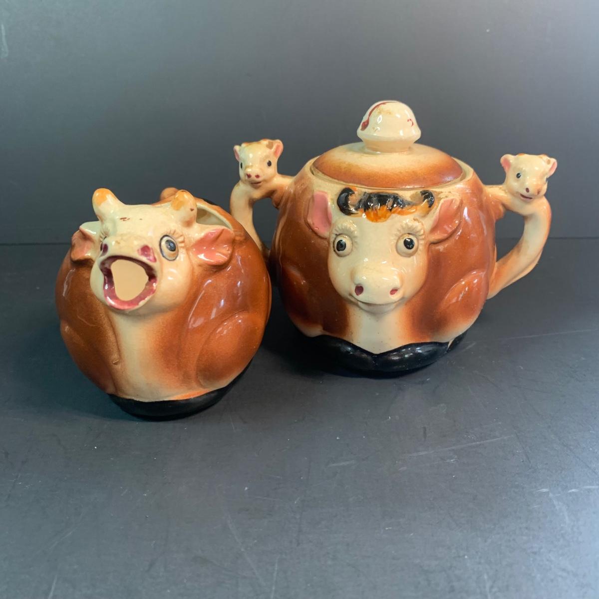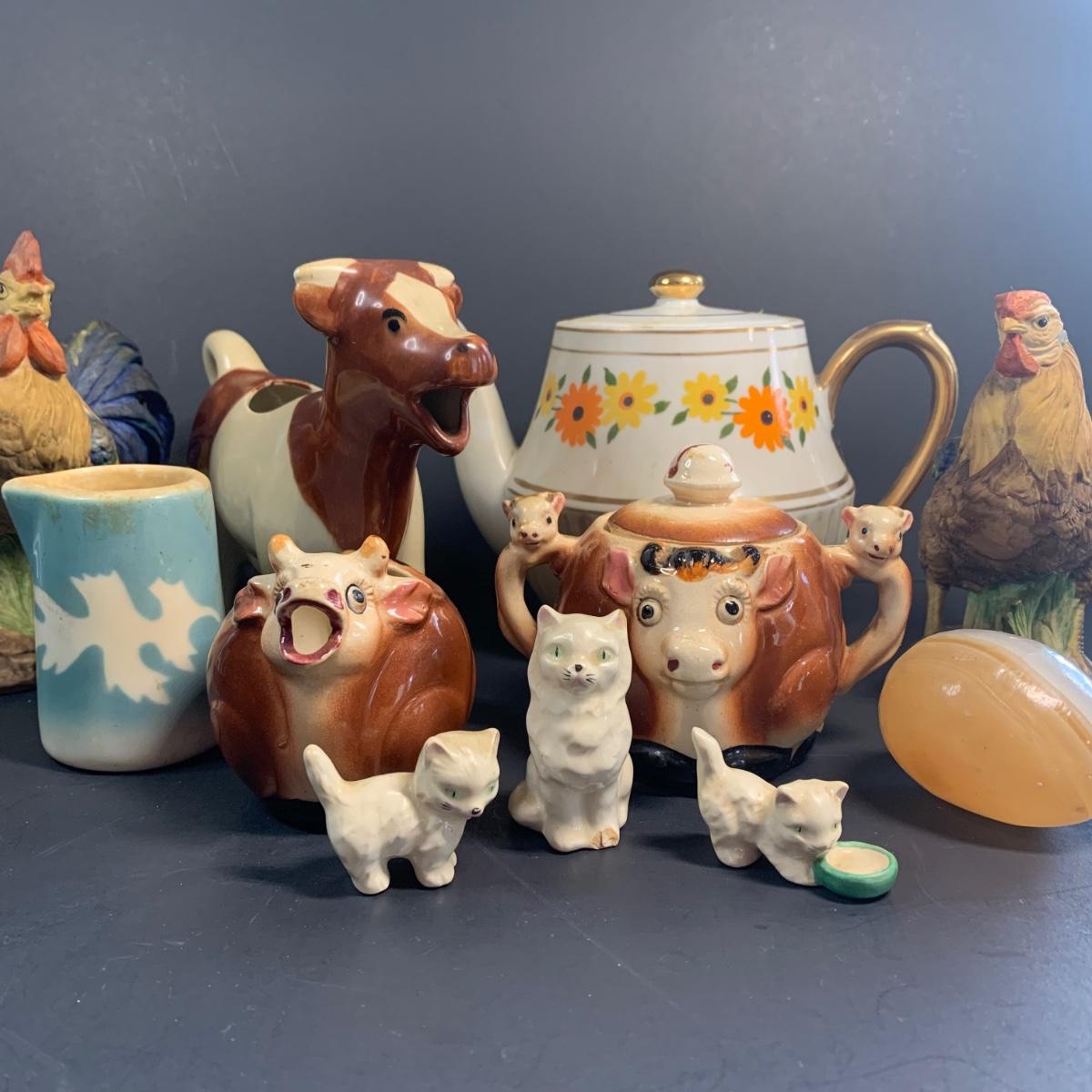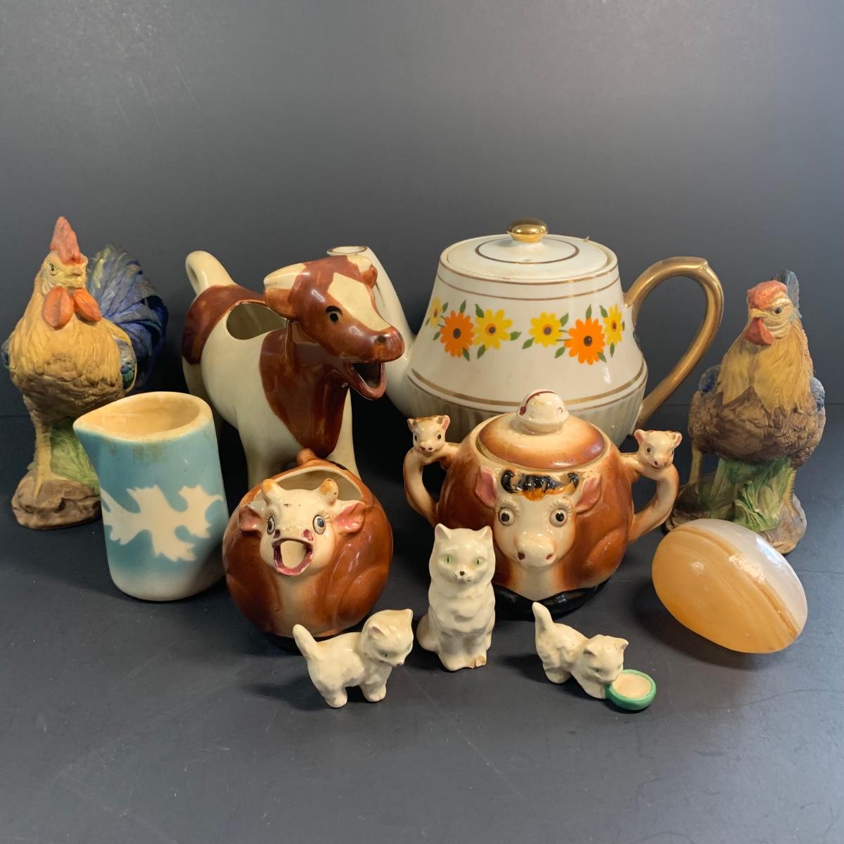 LOT 73R: Vintage Thames Cow Pitcher & Sugar Bowl Cows, Miniature Cats, Floral Teapot & More
