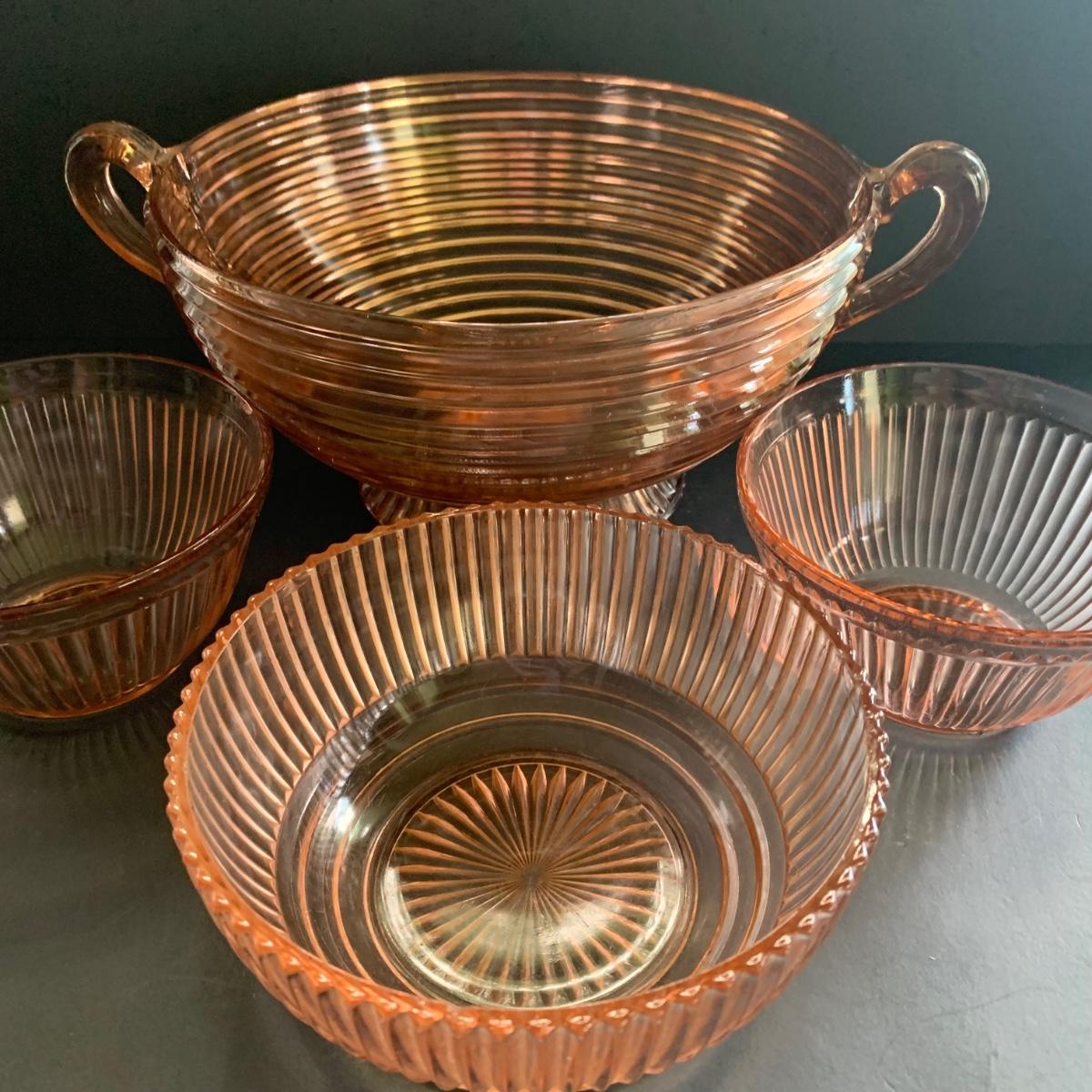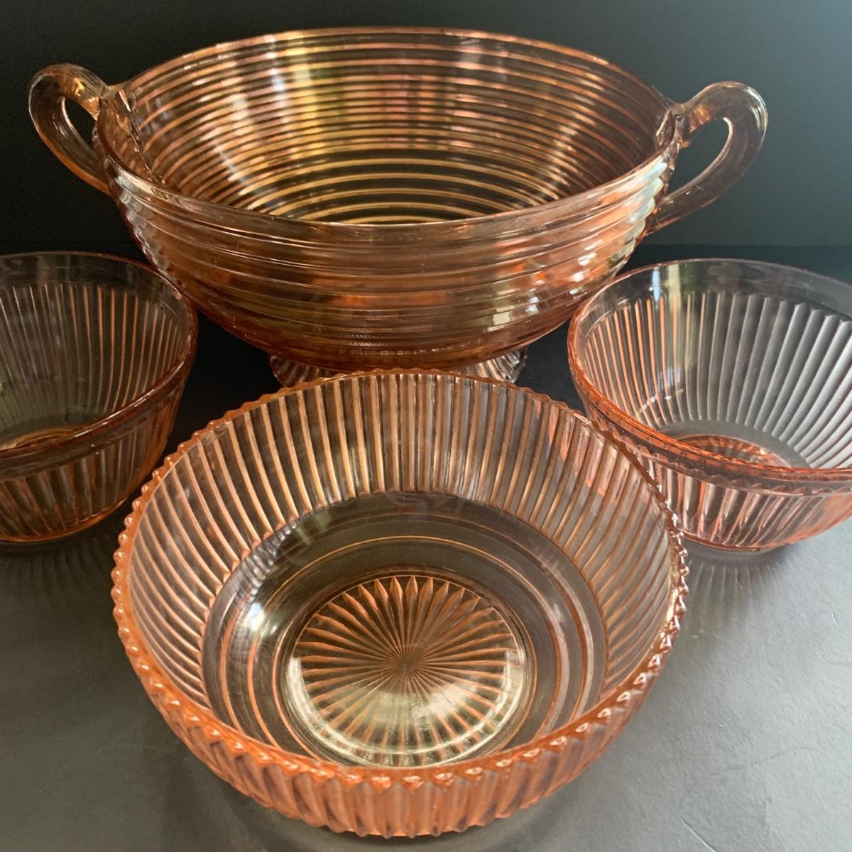 LOT 76: Vintage Pink Depression Glass Ribbed Bowls