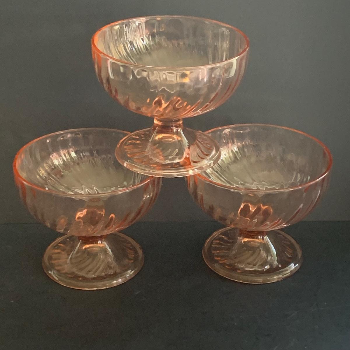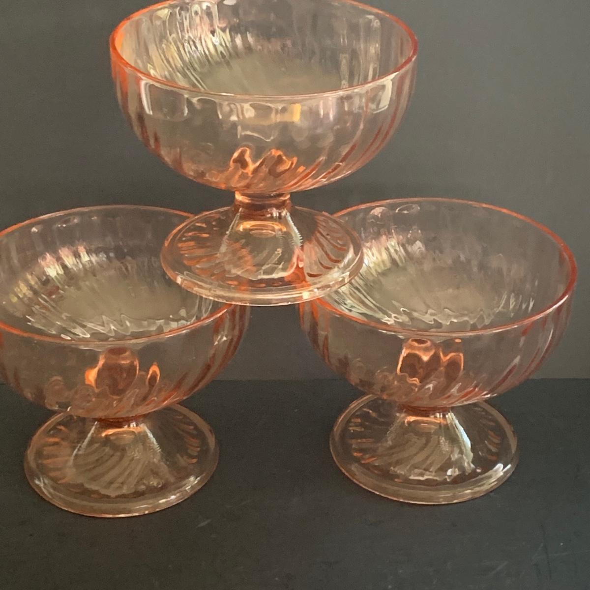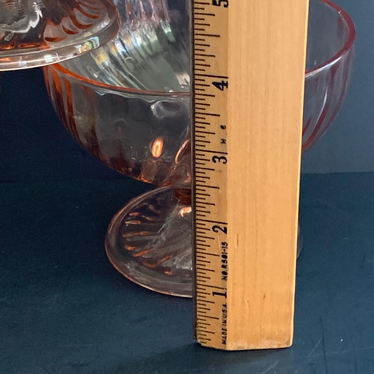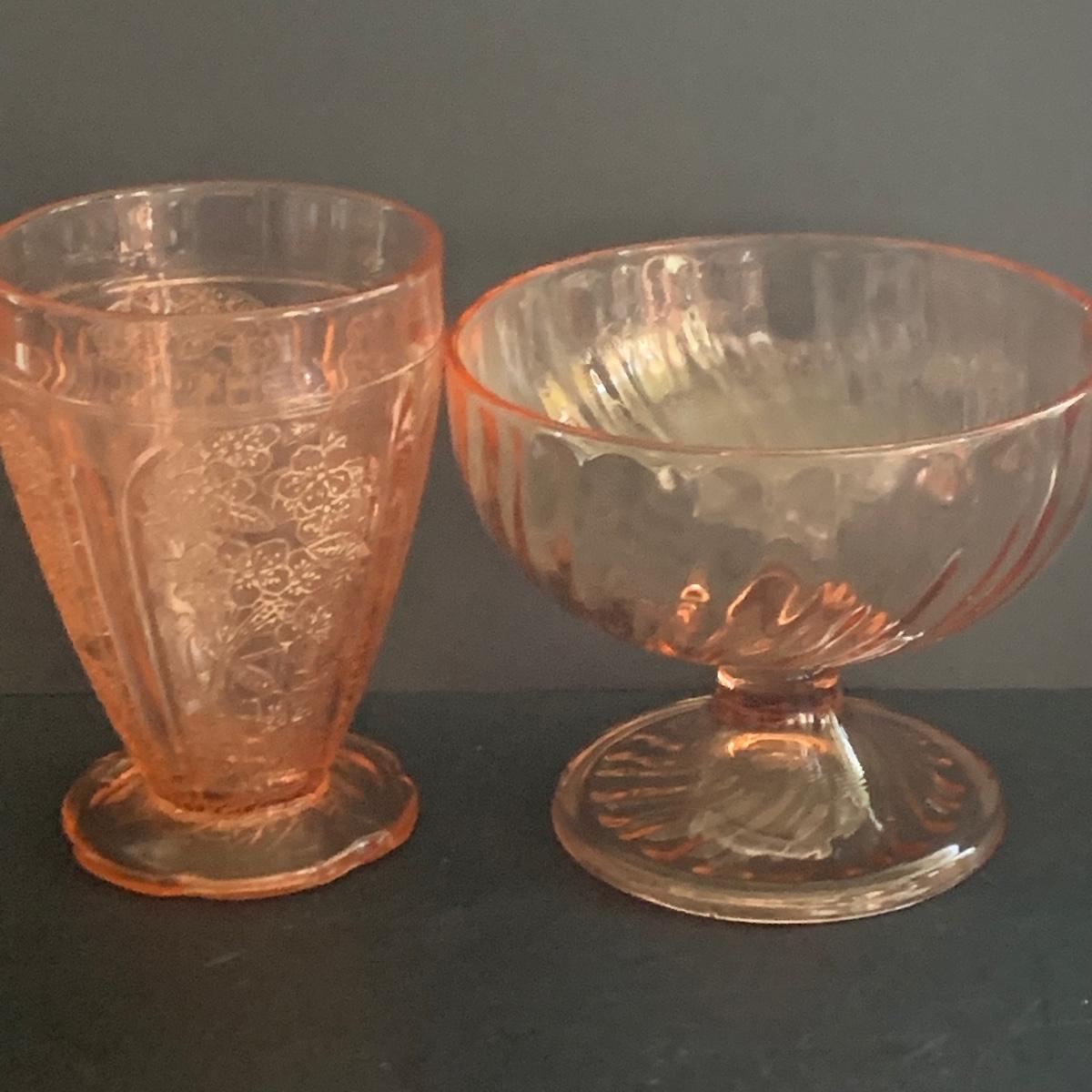 LOT 77R: Pink Depression Glass Collection: Candlesticks, Glass Caddy, Dessert Dishes & More