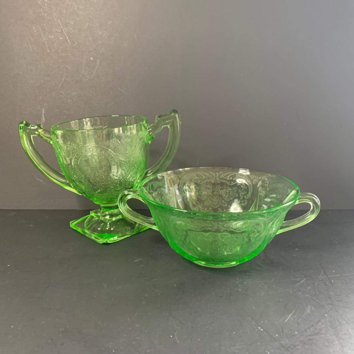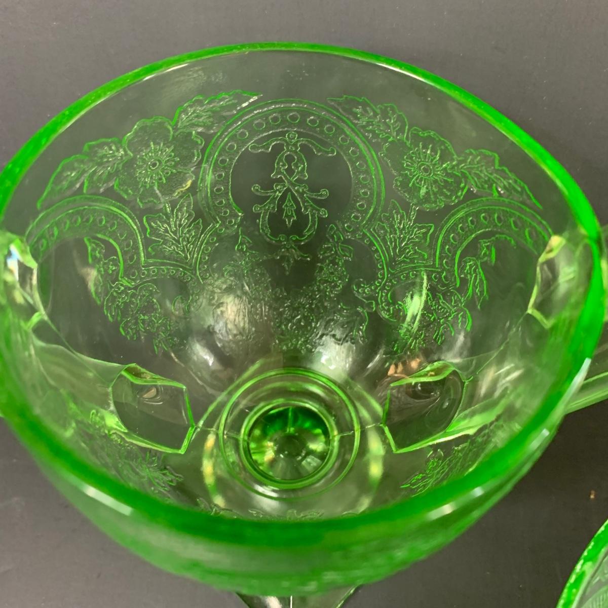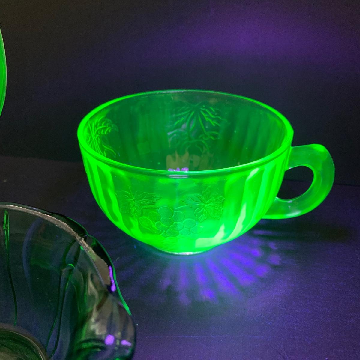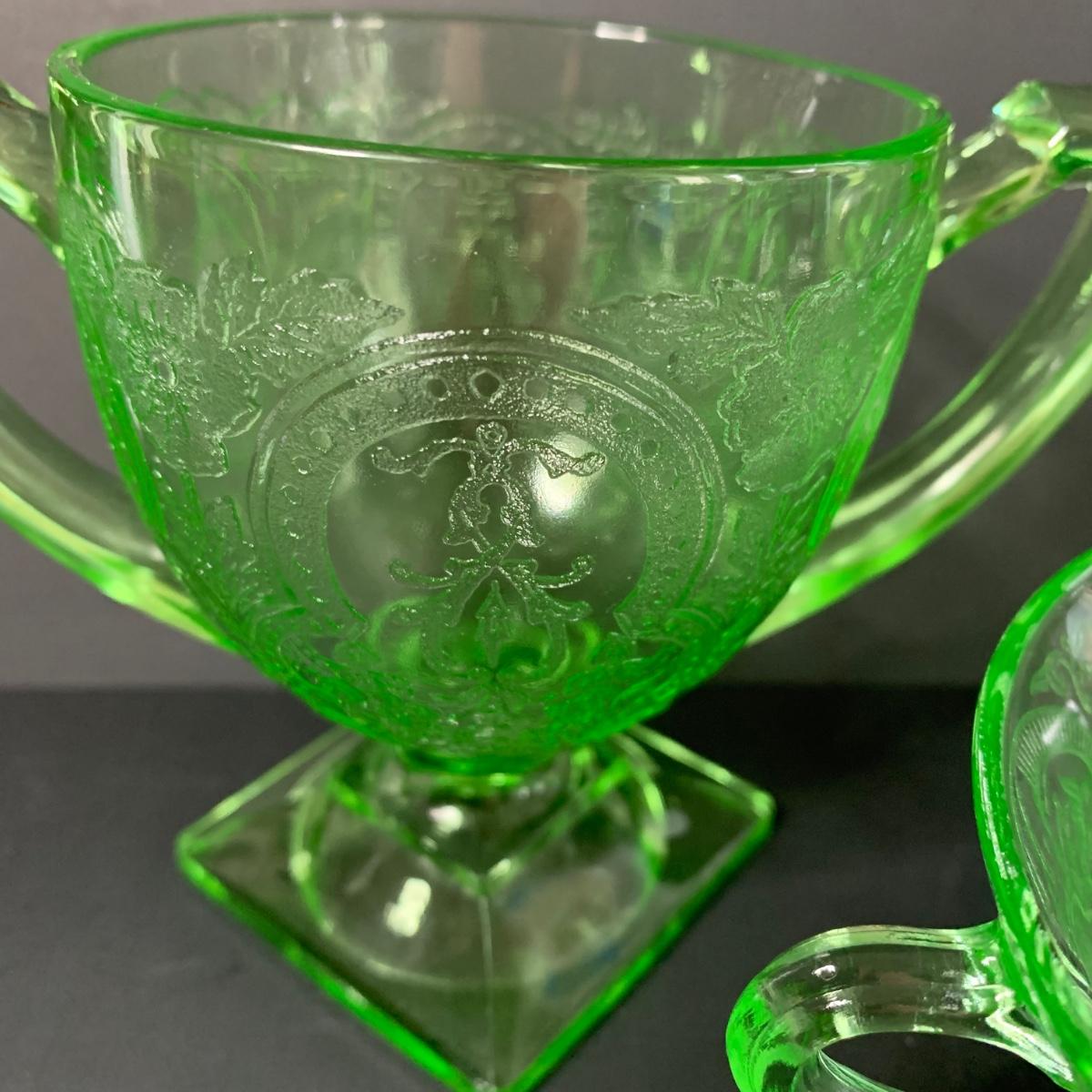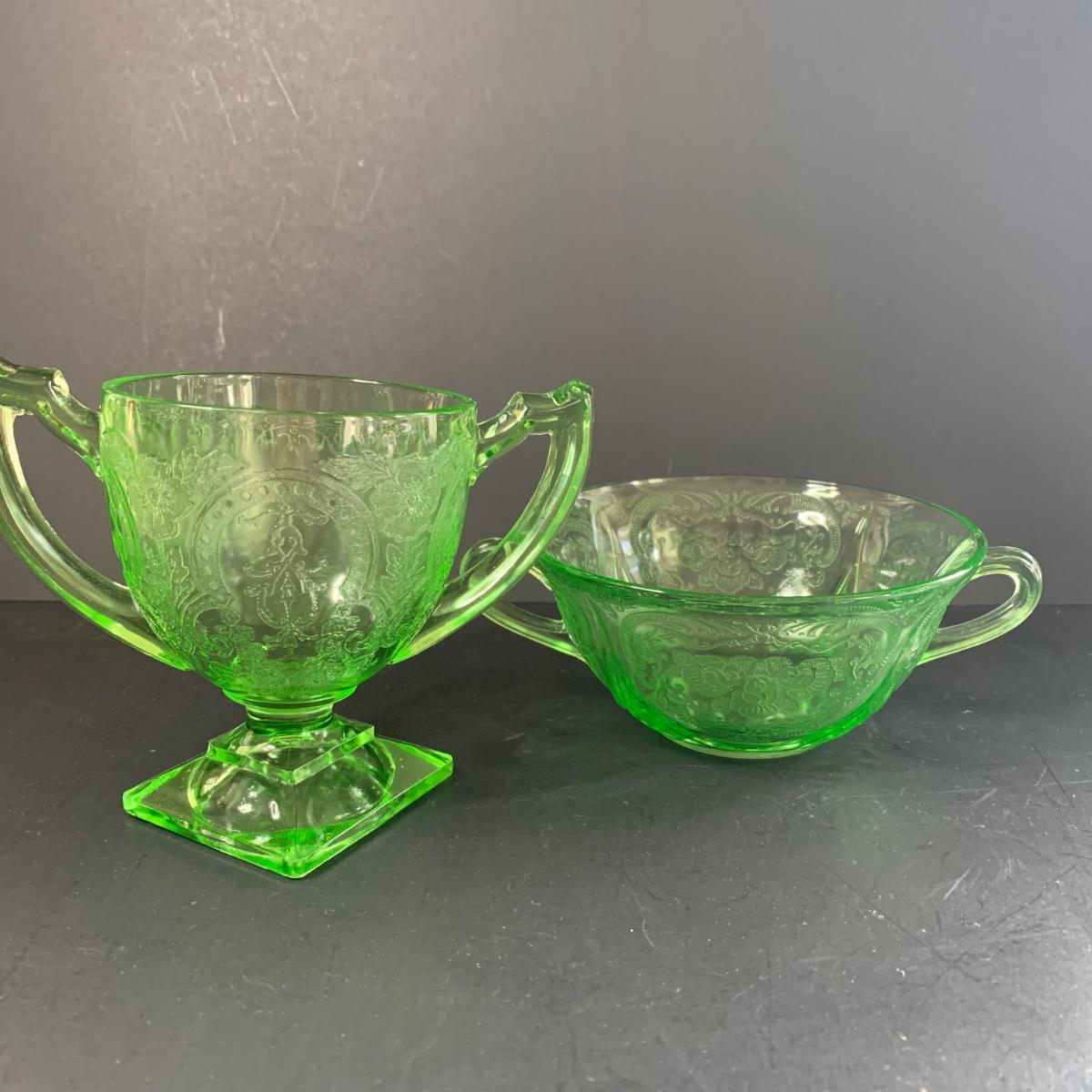 LOT 78R: Vintage Uranium Glass, Green Oil Lamp, Lucky Leprechaun Mouse Figures