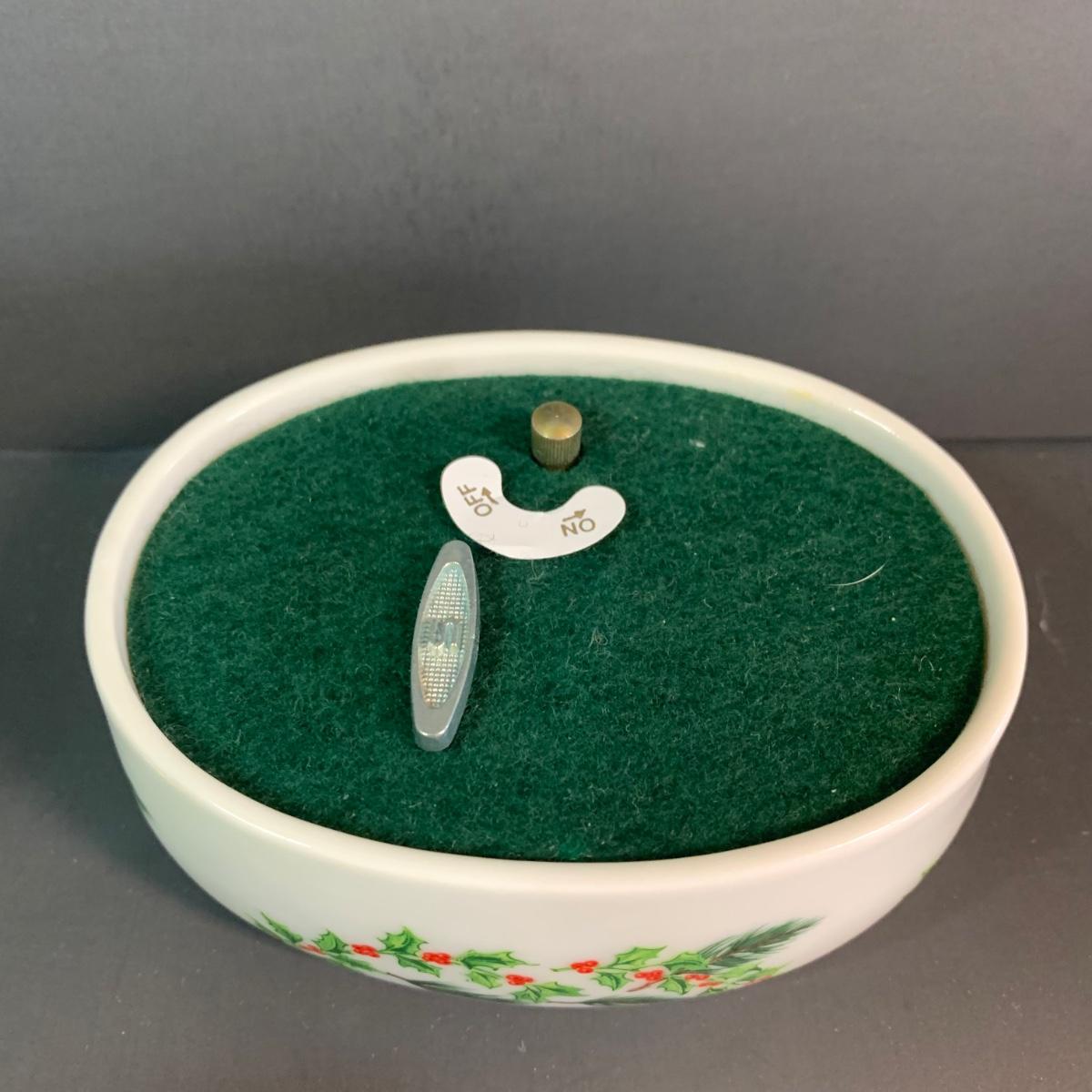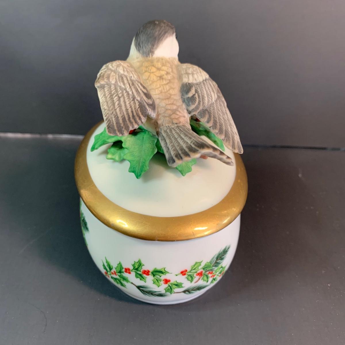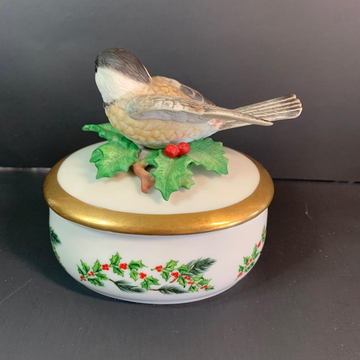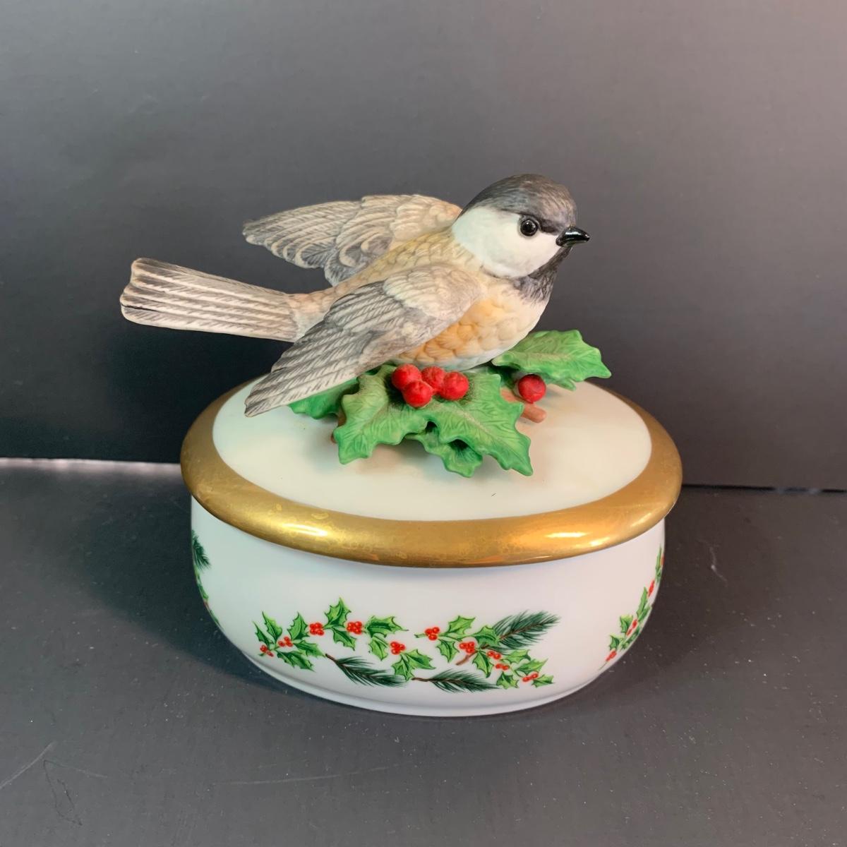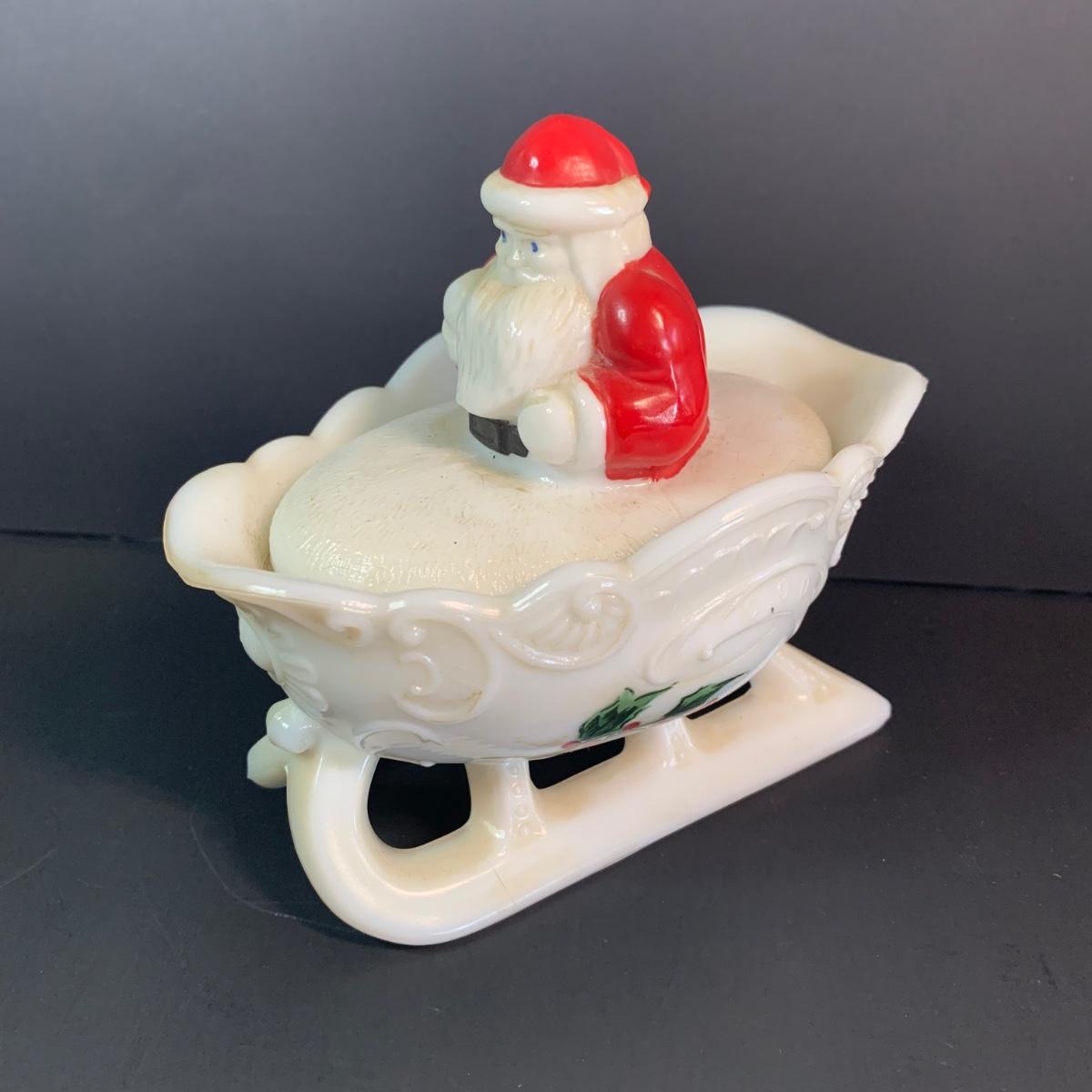 LOT 88R: Westmoreland Santa on Sleigh, Lennox Chick-a-Dee Music Box, Fenton Egg on Pedestal & Normal Rockwell Figures