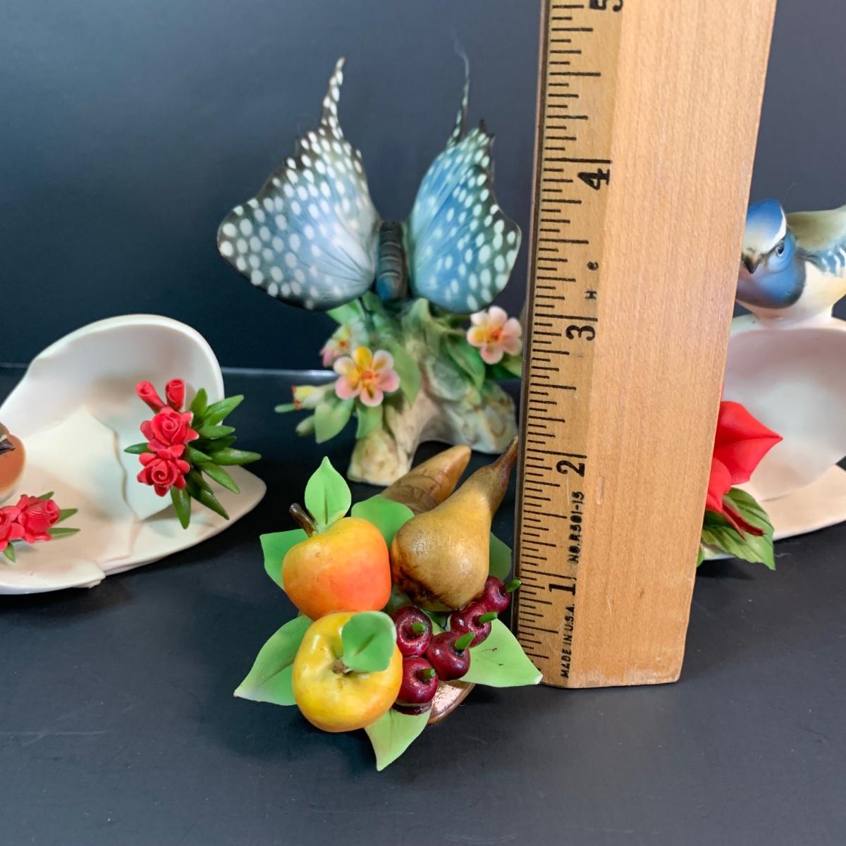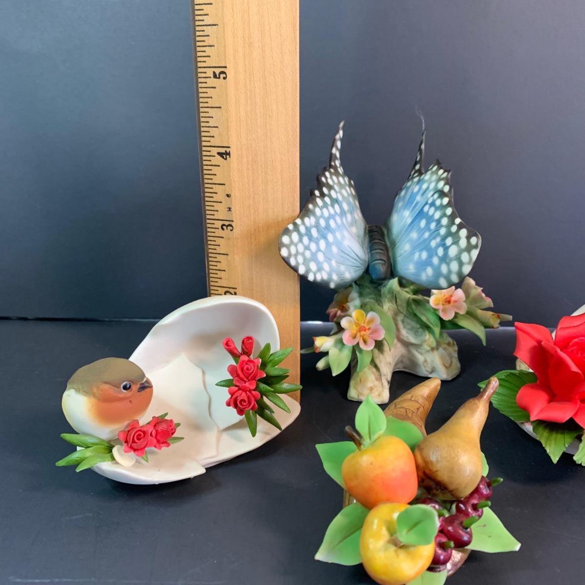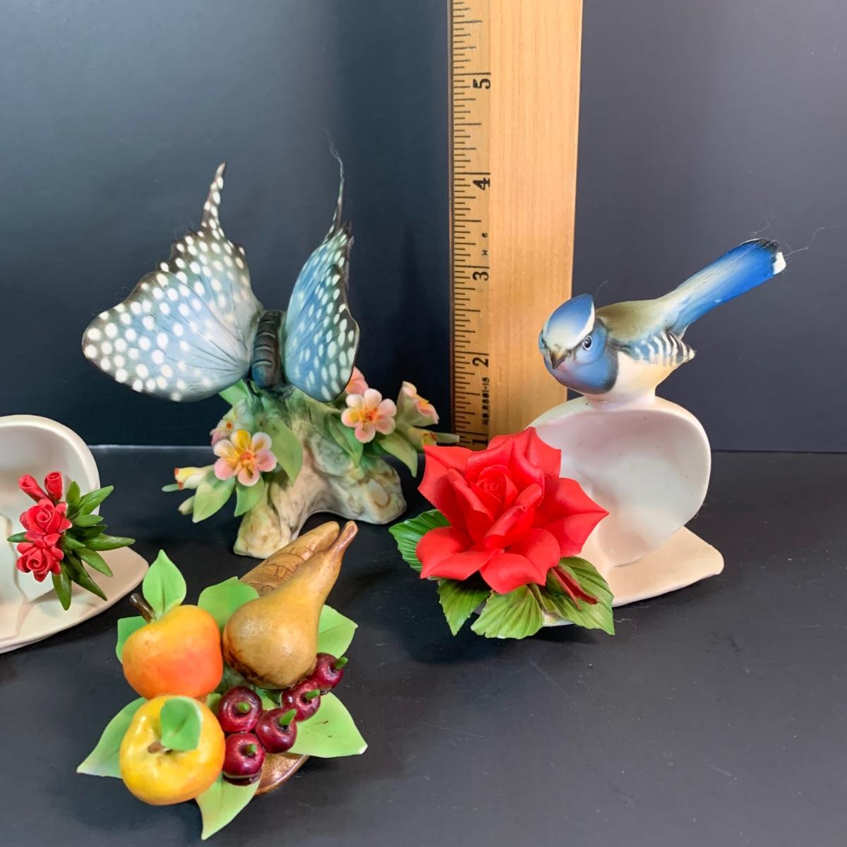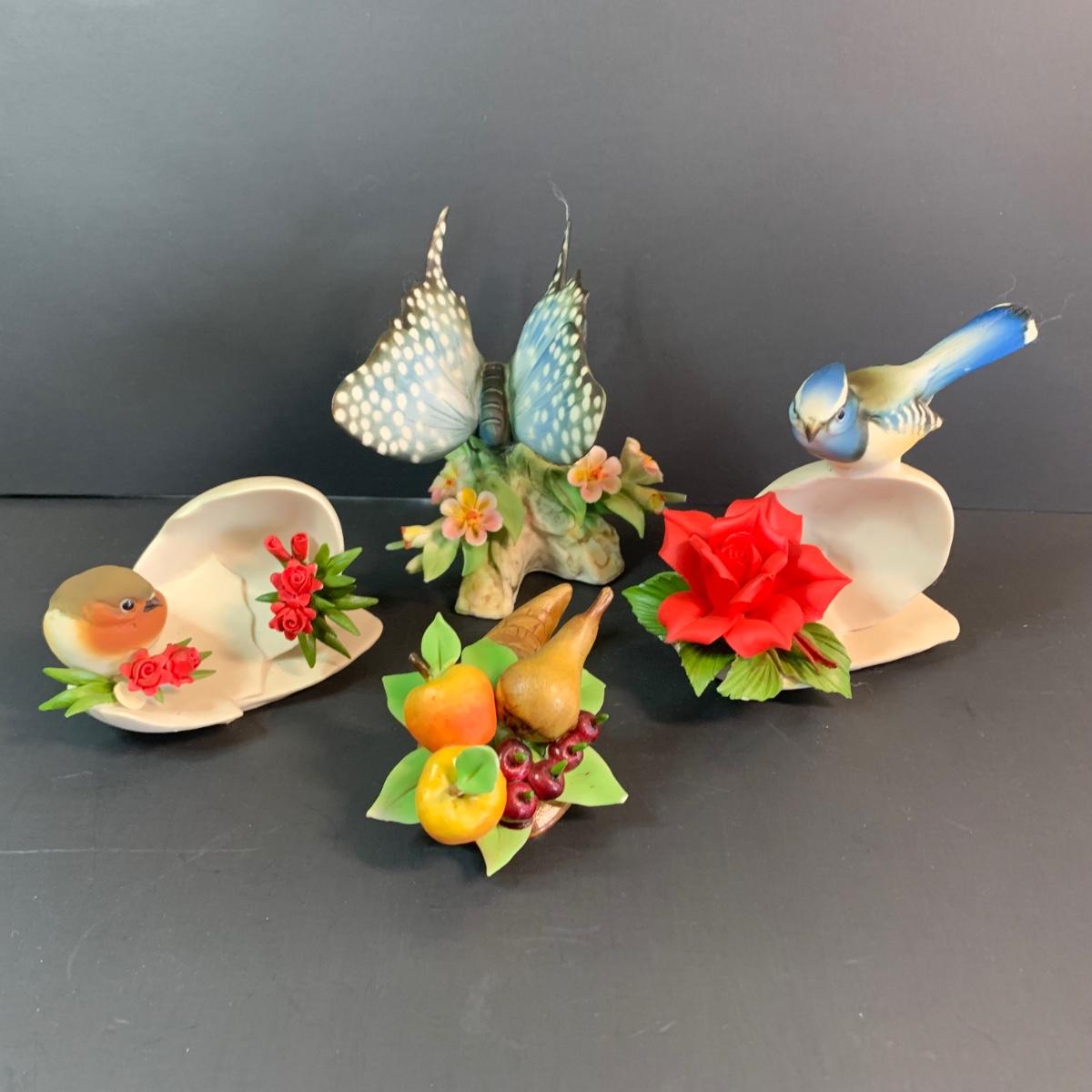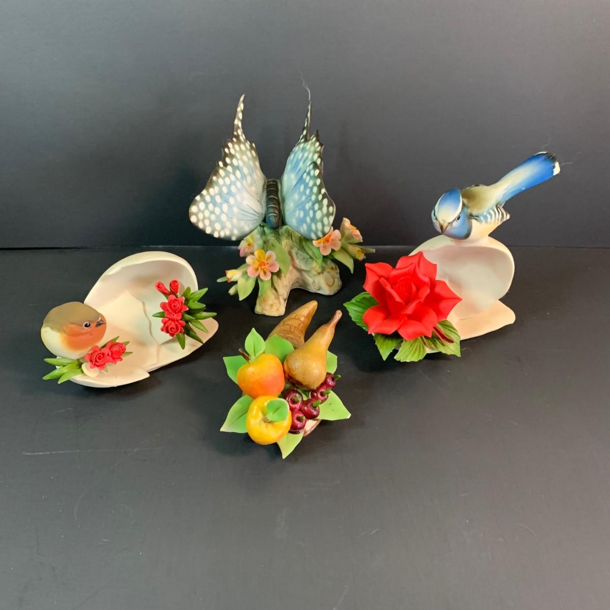 LOT 91R: Capodimonte Butterfly, Blu Jay on Egg Shell, Robin on Egg, Faber Butterfly & Cornucopia